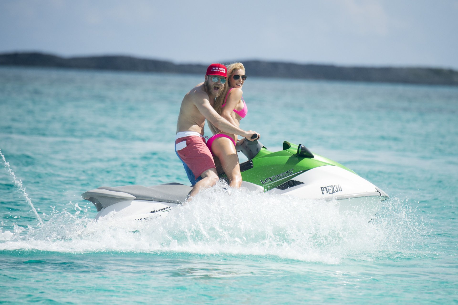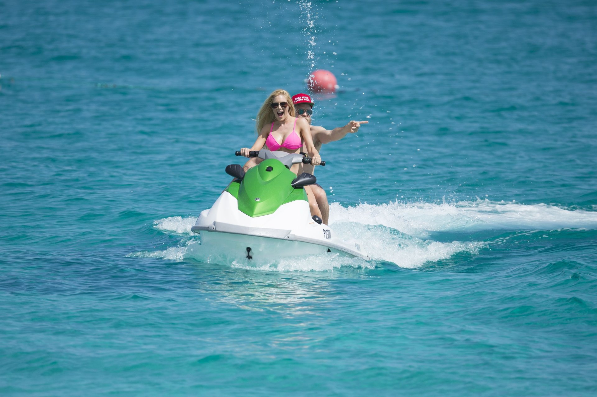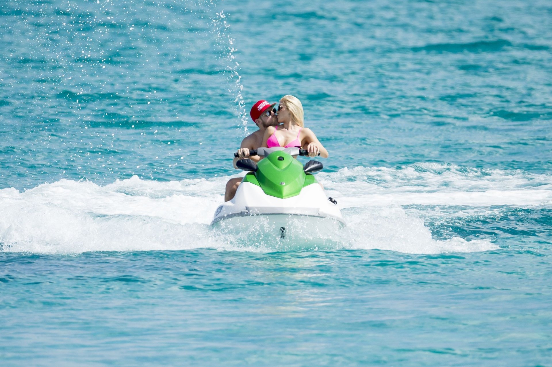 Heidi Montag fait du jet ski avec son homme à Nassau, Bahamas, le 16/09/2016. Heidi Blair Pratt (née Montag) est une personnalité de la télévision américaine, chanteuse, créatrice de mode et auteure. Âge : 30 ans (15 septembre 1986).