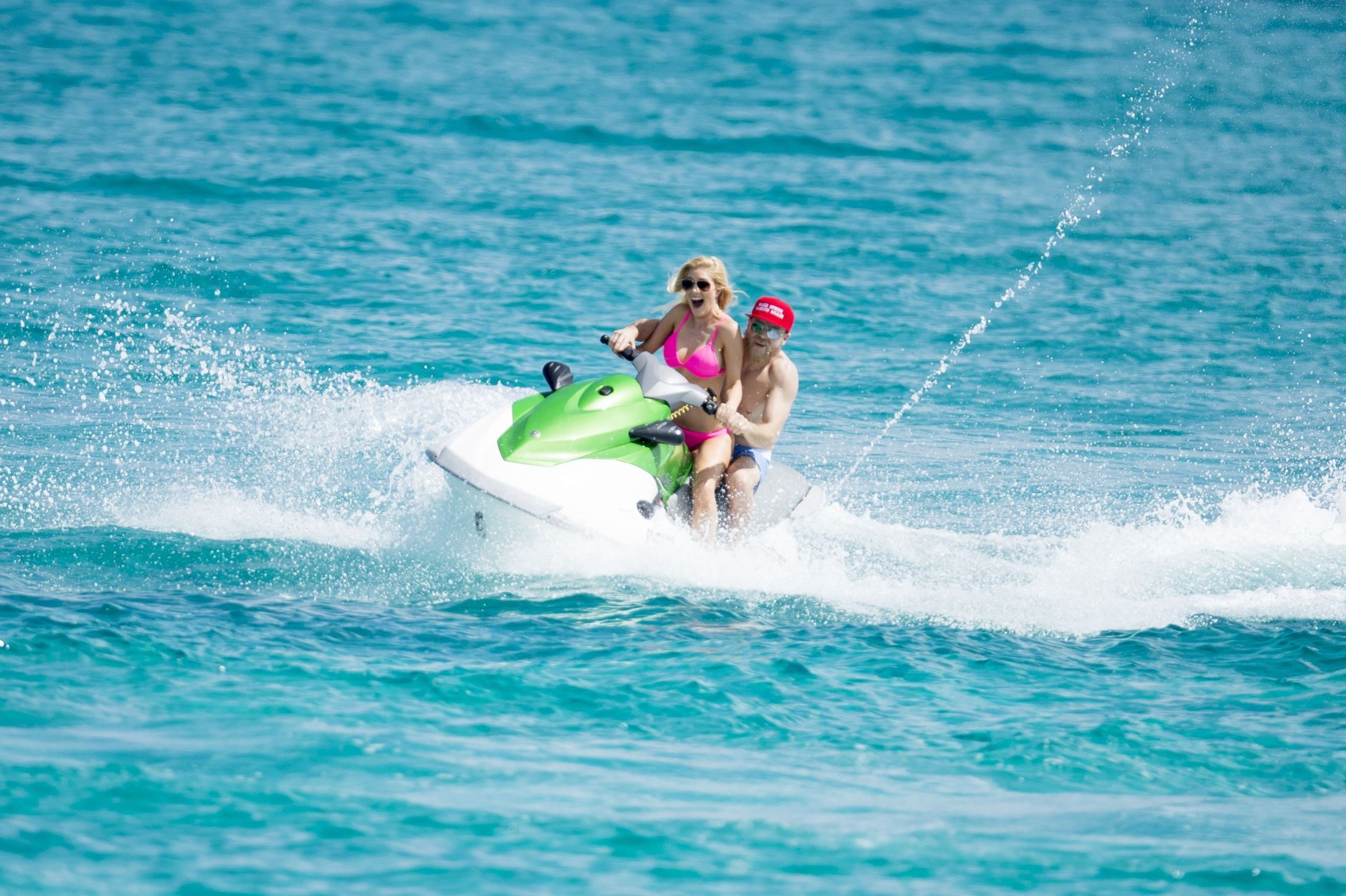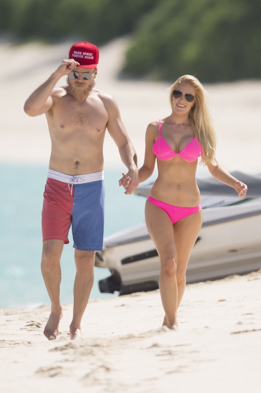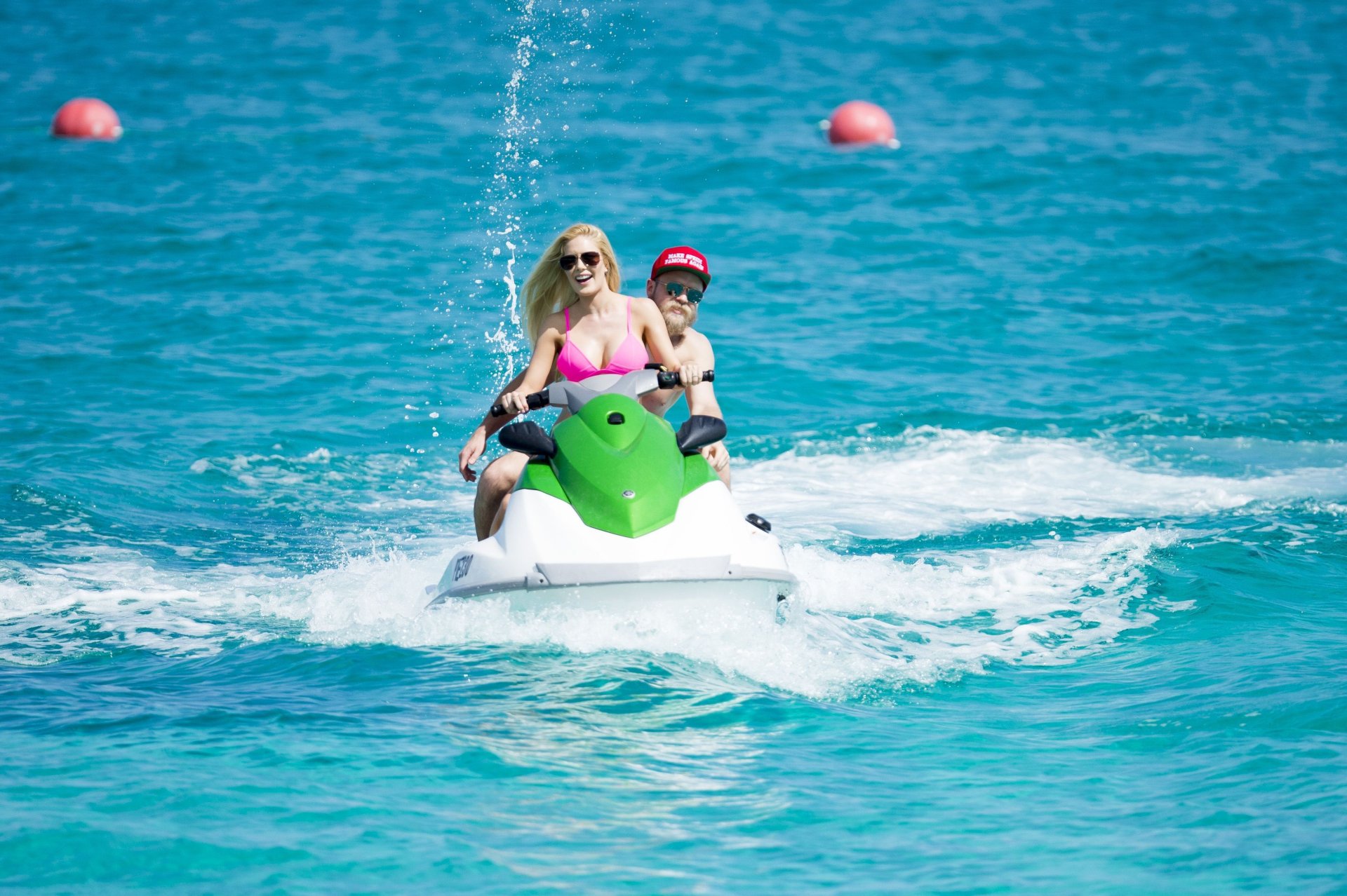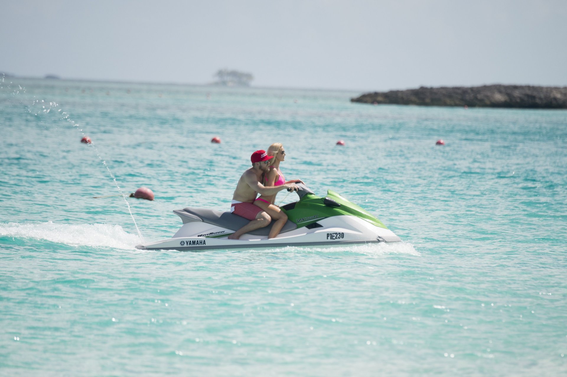 Heidi Montag fait du jet ski avec son homme à Nassau, Bahamas, le 16/09/2016. Heidi Blair Pratt (née Montag) est une personnalité de la télévision américaine, chanteuse, créatrice de mode et auteure. Âge : 30 ans (15 septembre 1986).