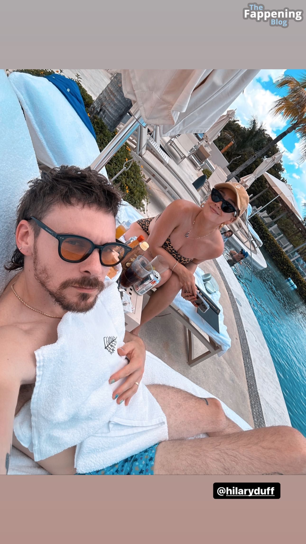 Découvrez cette photo de la magnifique actrice Hilary Duff, affichant un décolleté impressionnant avec ses atouts généreux exposés dans un bikini très sexy tout en adoptant une pose séduisante au bord de la piscine.
