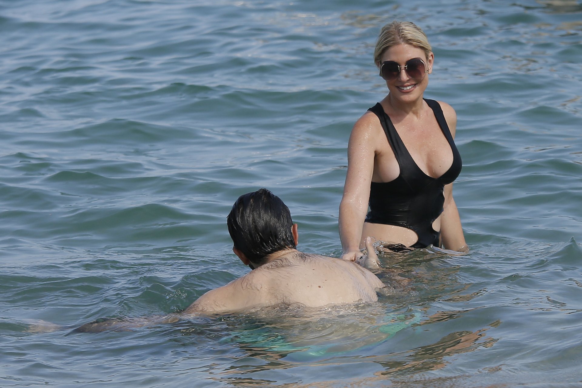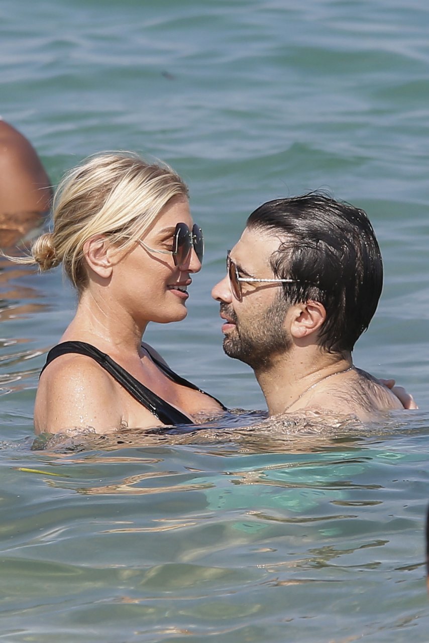 Animatrice TV, mannequin, influenceuse voyage et mode, Hofit Golan a été vue profitant d’une journée ensoleillée avec son homme sur la plage du Club 55 à Saint Tropez, le 26/07/2018. La blonde de 32 ans portait un maillot de bain une pièce noir mettant en valeur sa poitrine généreuse.