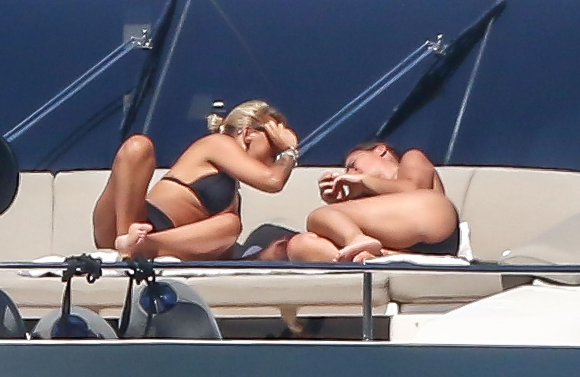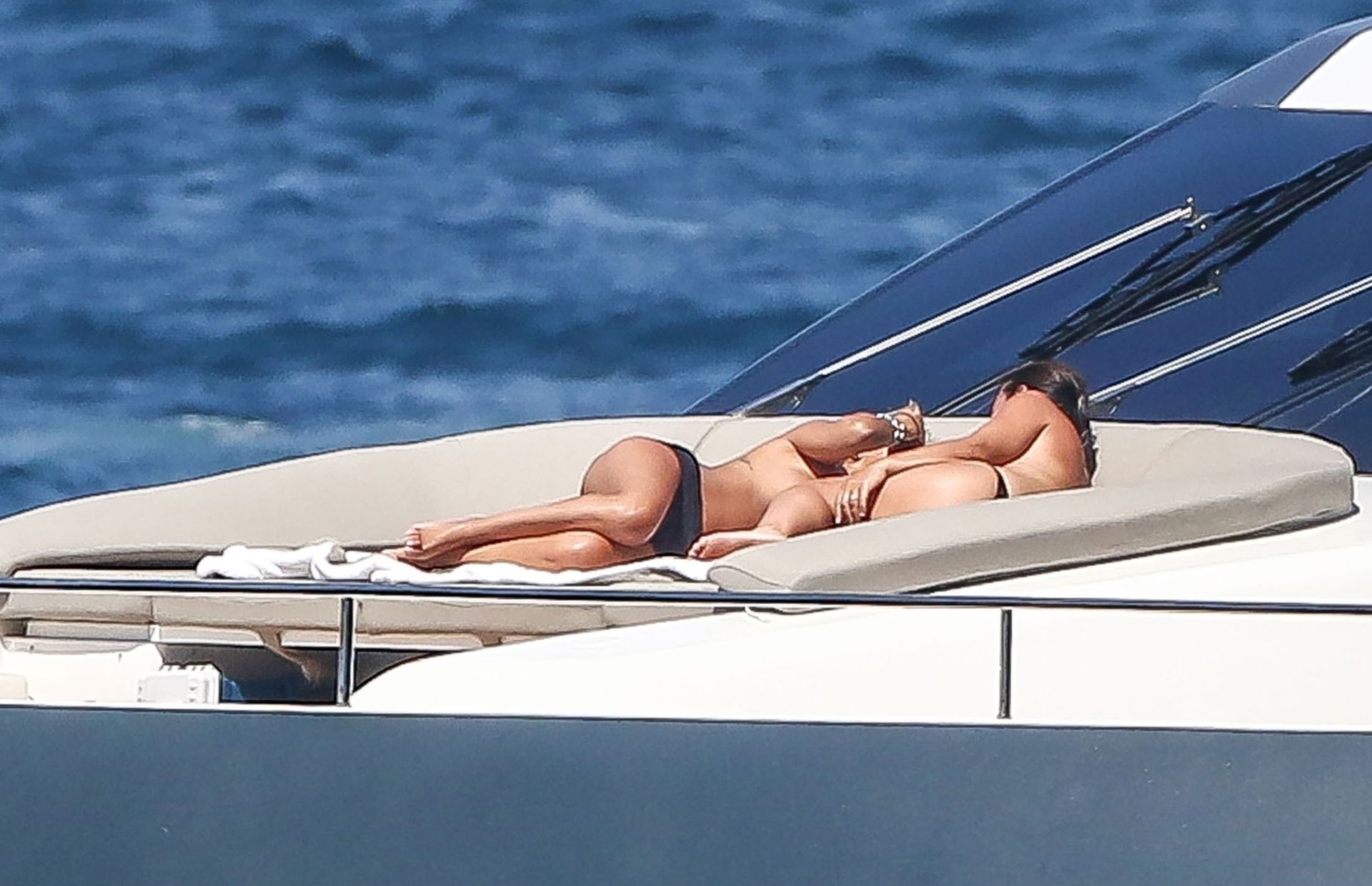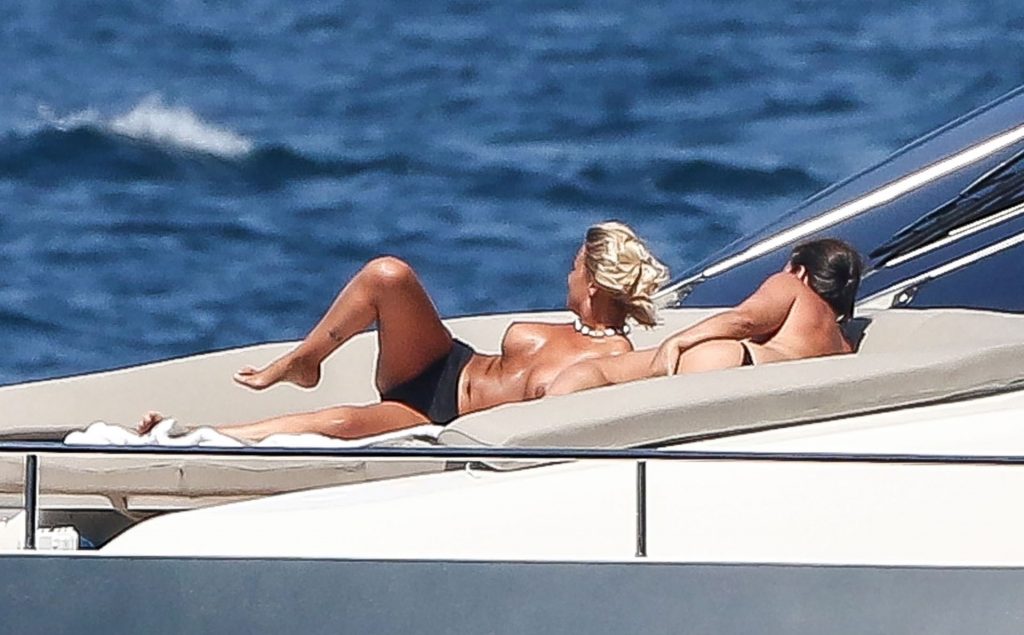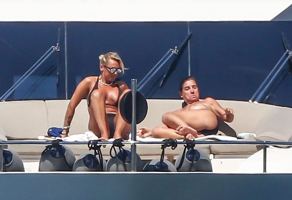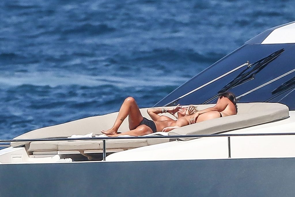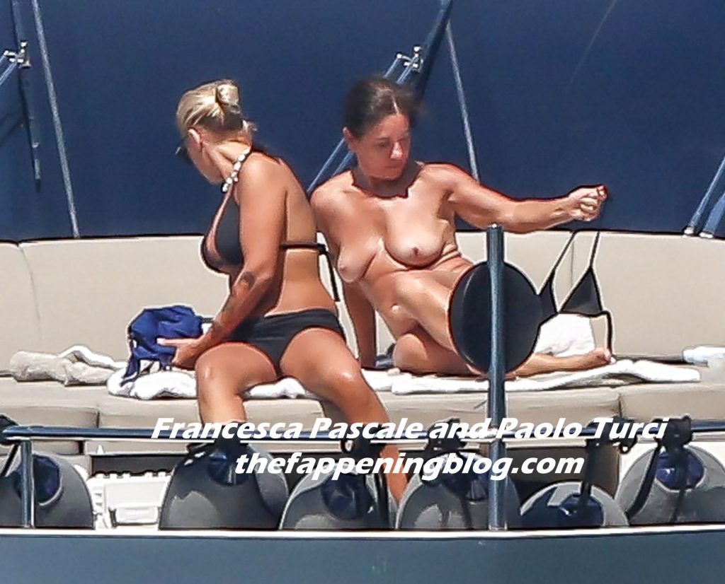 L’ex de Silvio Berlusconi Francesca Pascale et la chanteuse Paola Turci bronzent et se dénudent lors de leurs vacances ensoleillées à bord de leur yacht de luxe sur la Costiera Sorrentina en Italie, 13/08/2020.