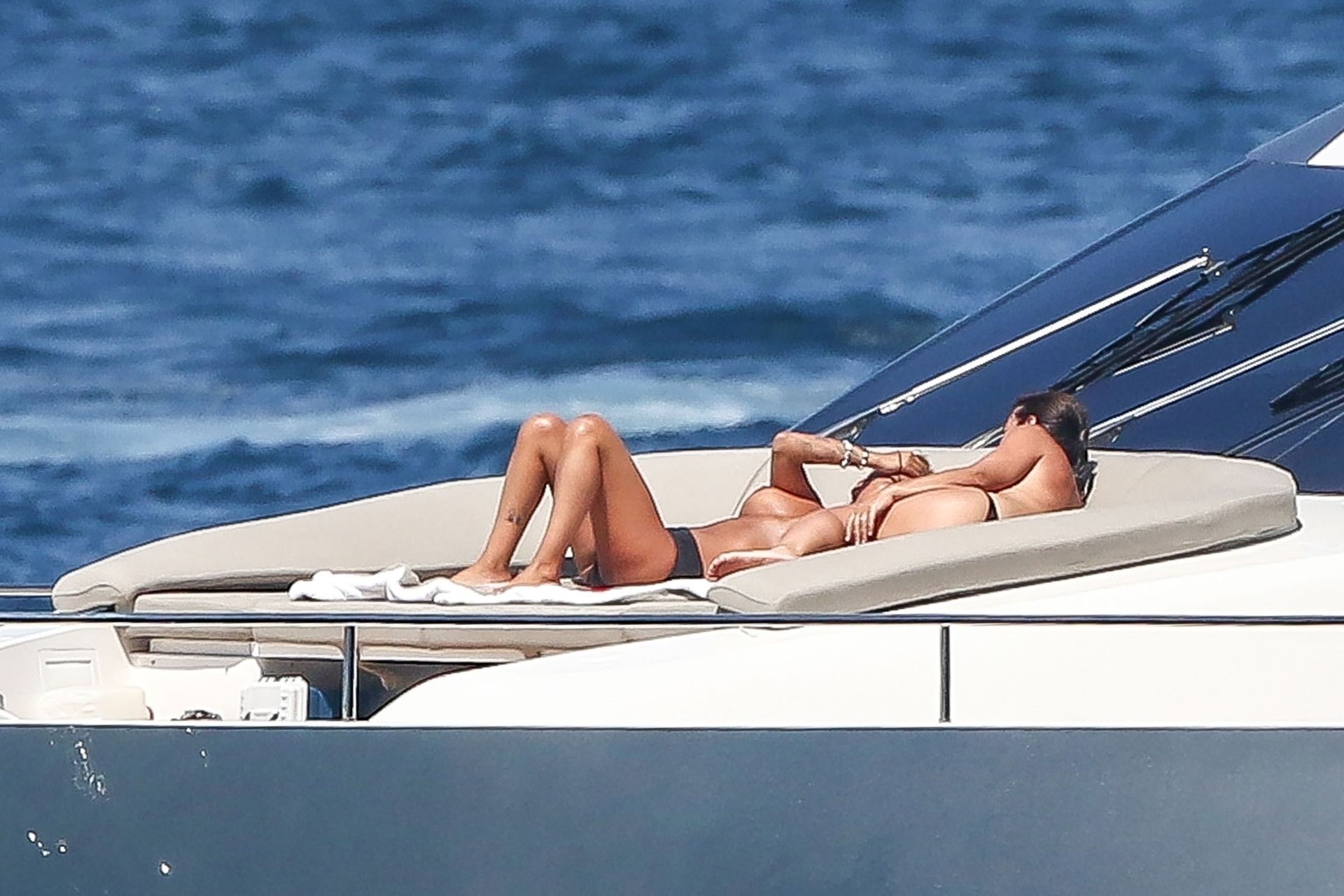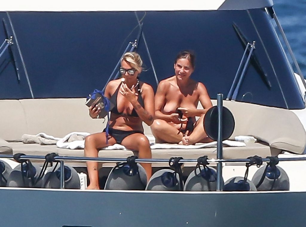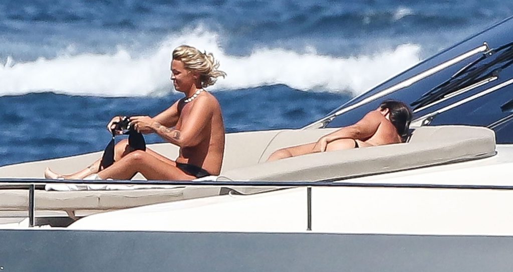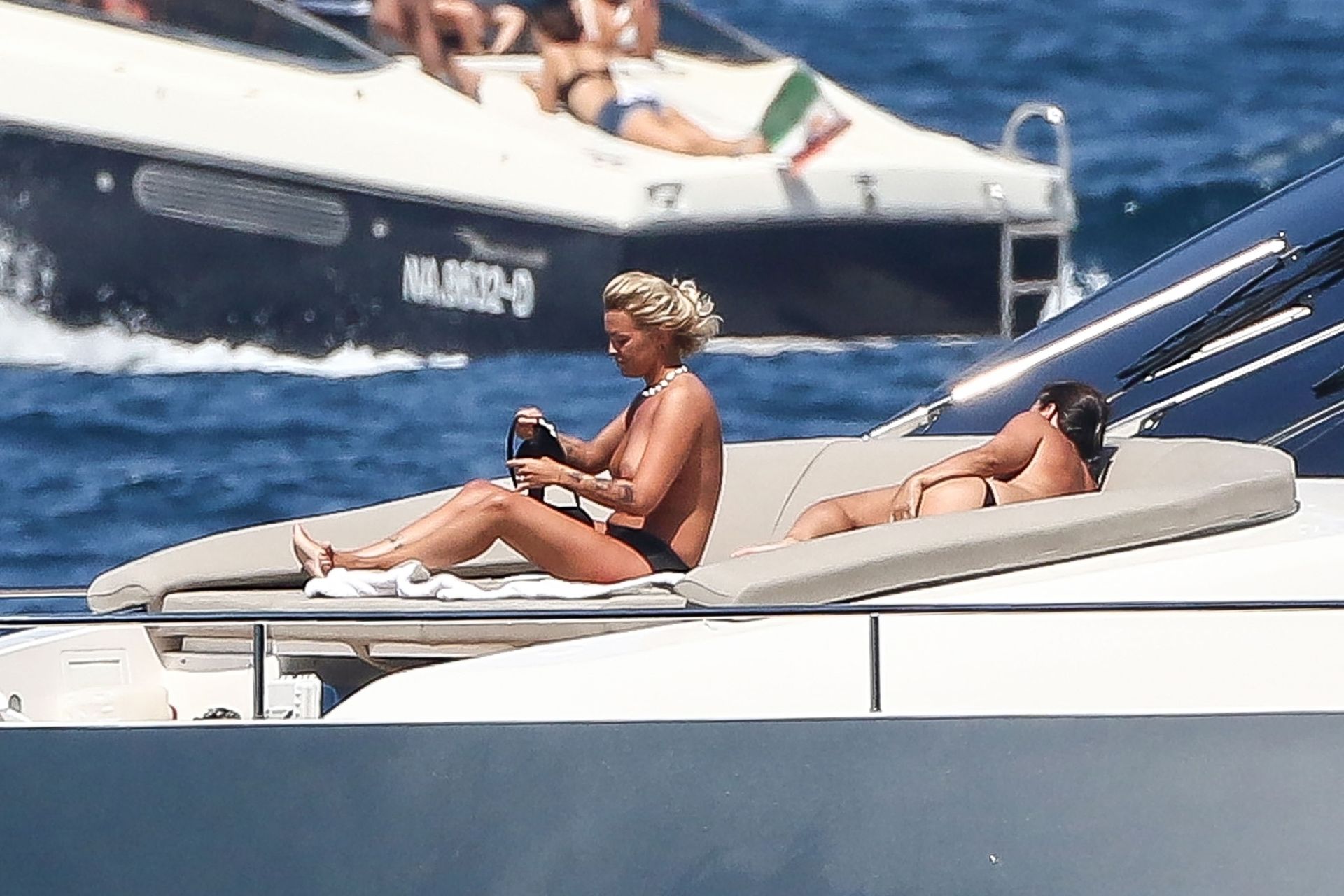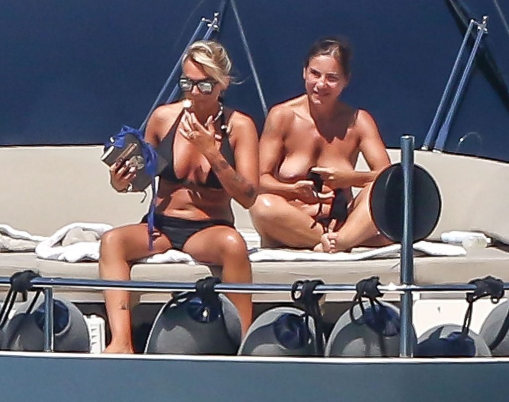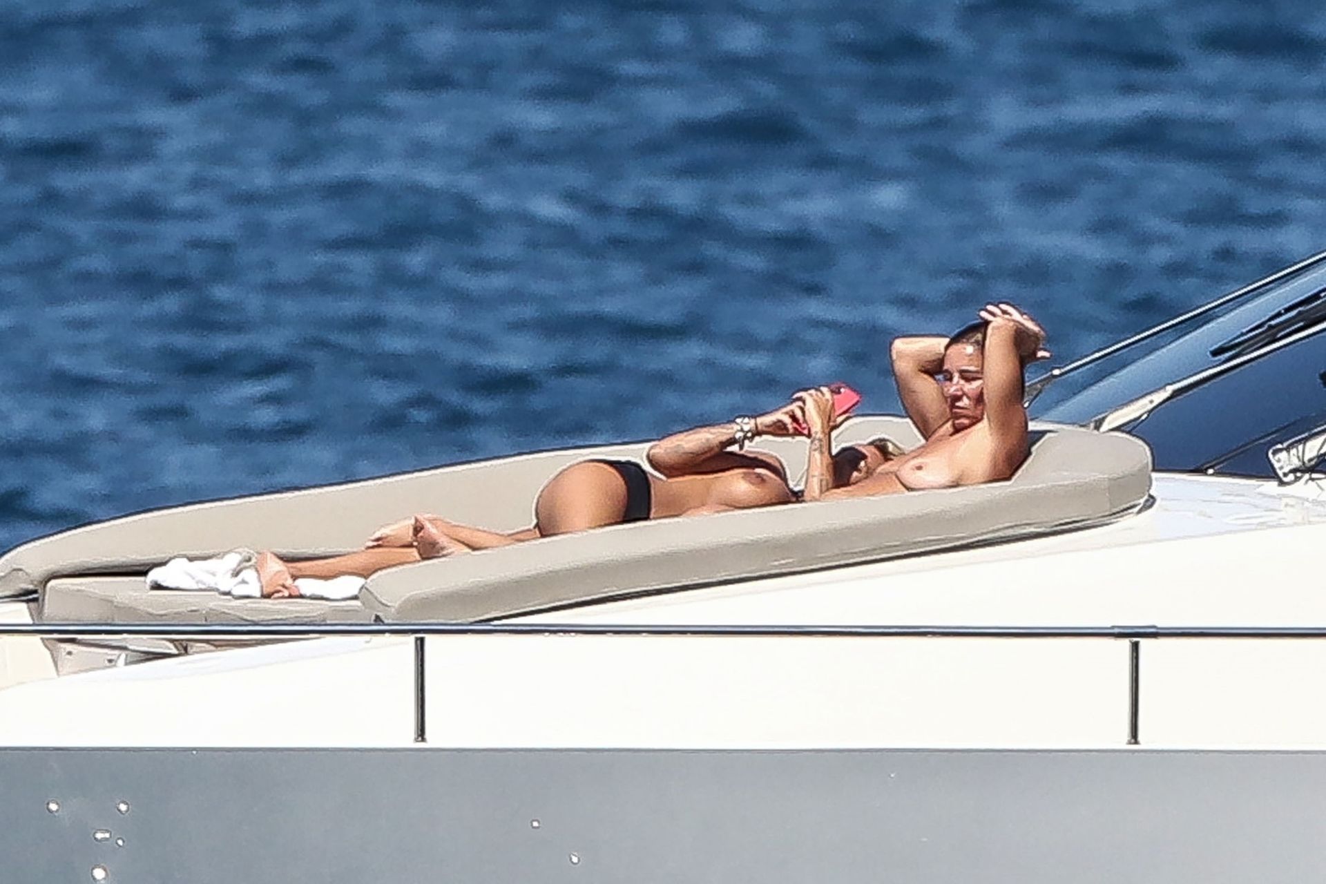 L’ex de Silvio Berlusconi Francesca Pascale et la chanteuse Paola Turci bronzent et se dénudent lors de leurs vacances ensoleillées à bord de leur yacht de luxe sur la Costiera Sorrentina en Italie, 13/08/2020.