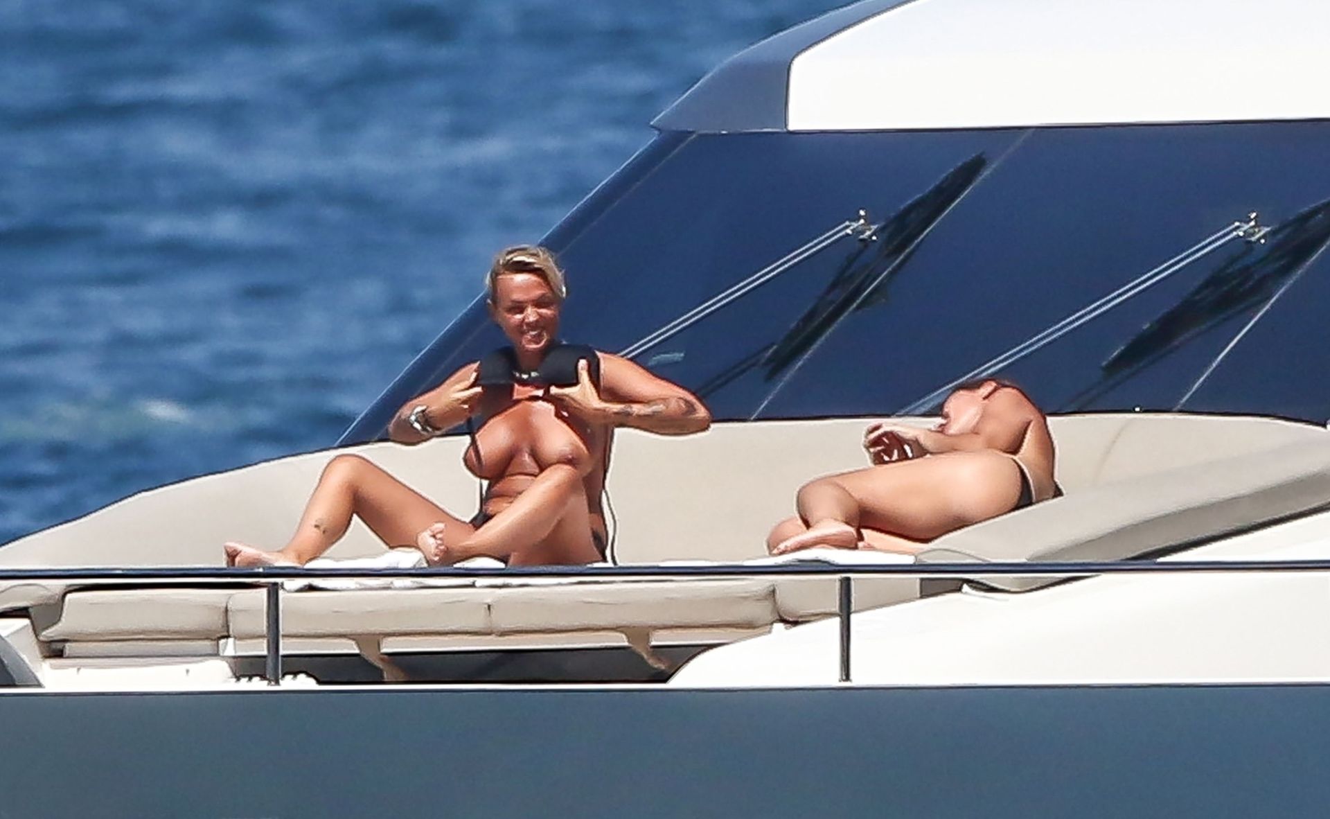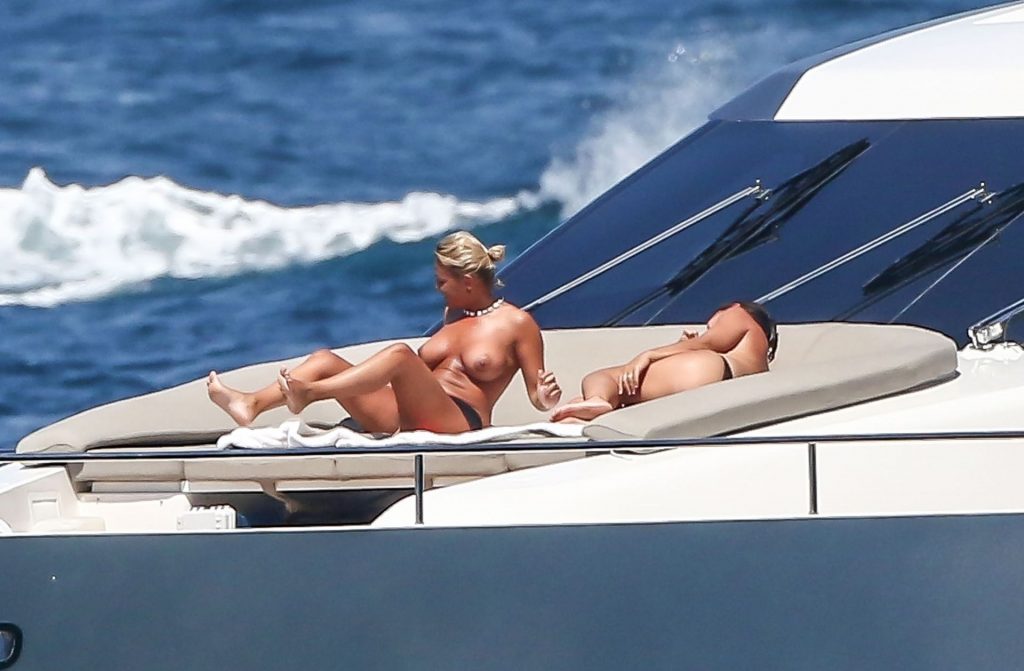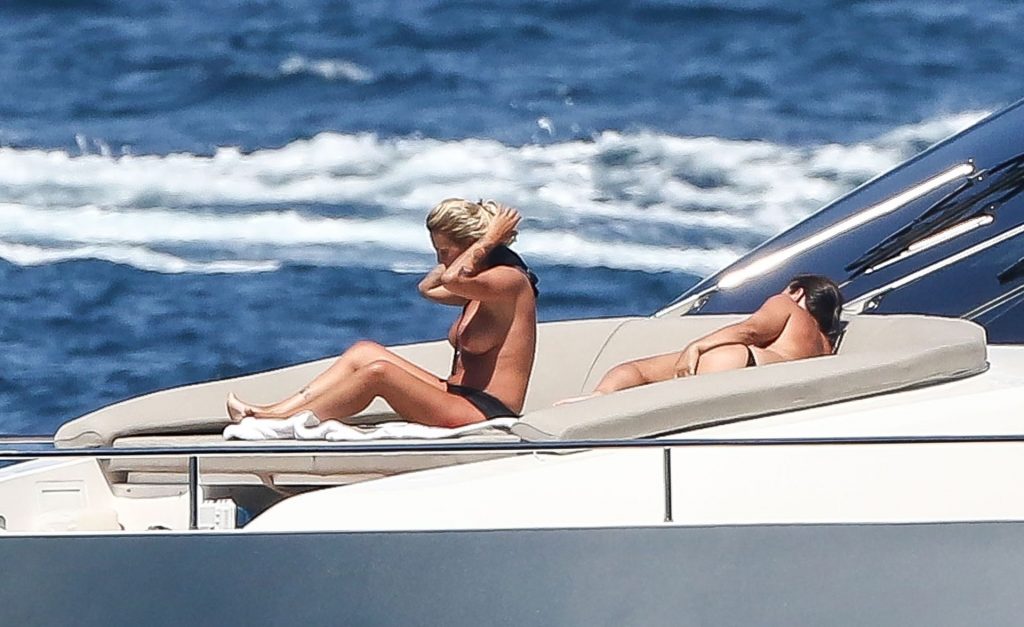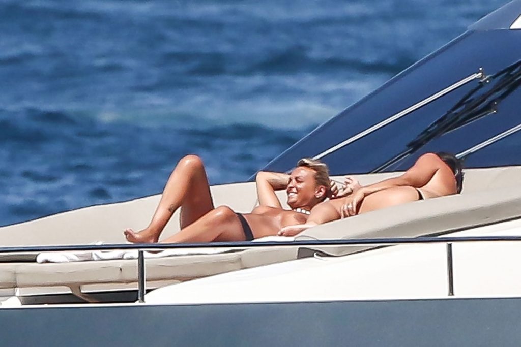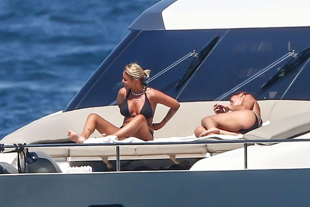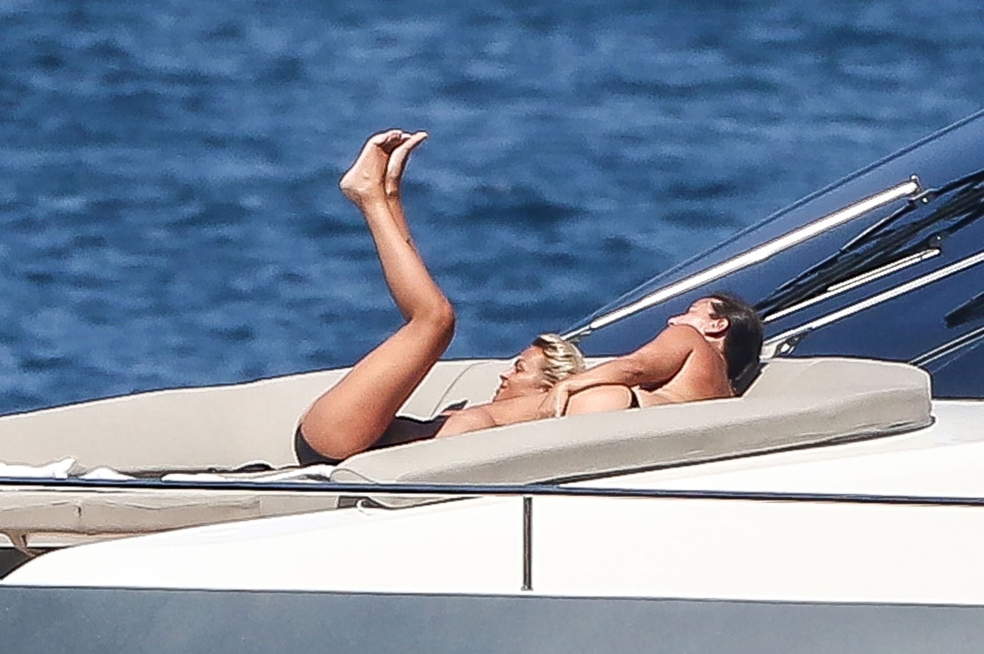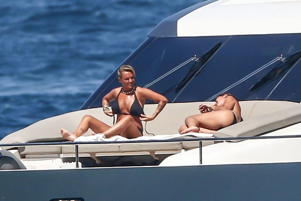 L’ex de Silvio Berlusconi Francesca Pascale et la chanteuse Paola Turci bronzent et se dénudent lors de leurs vacances ensoleillées à bord de leur yacht de luxe sur la Costiera Sorrentina en Italie, 13/08/2020.