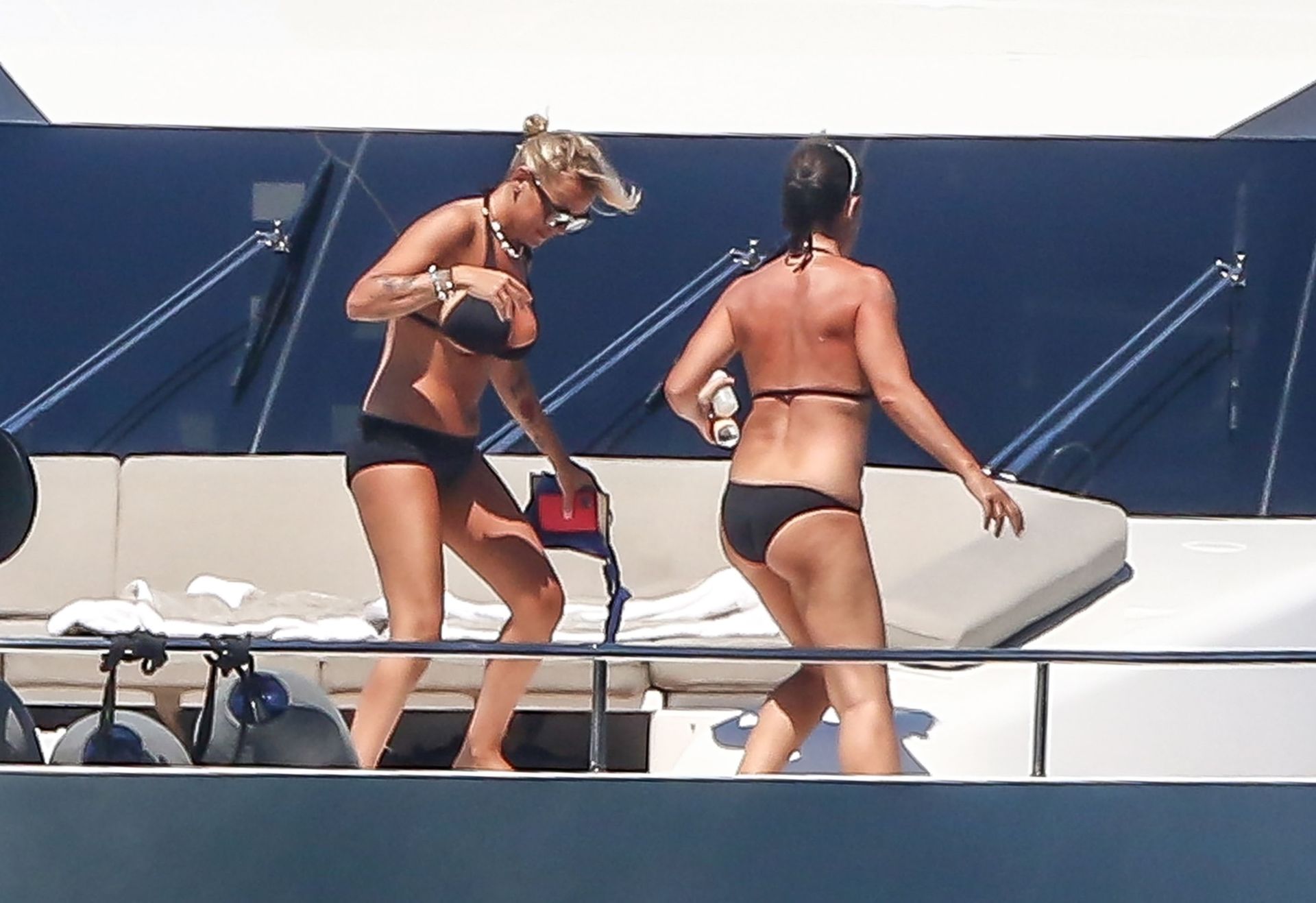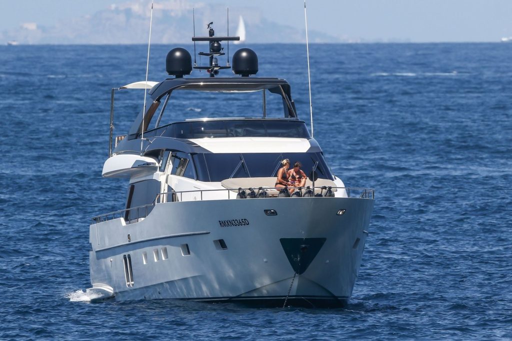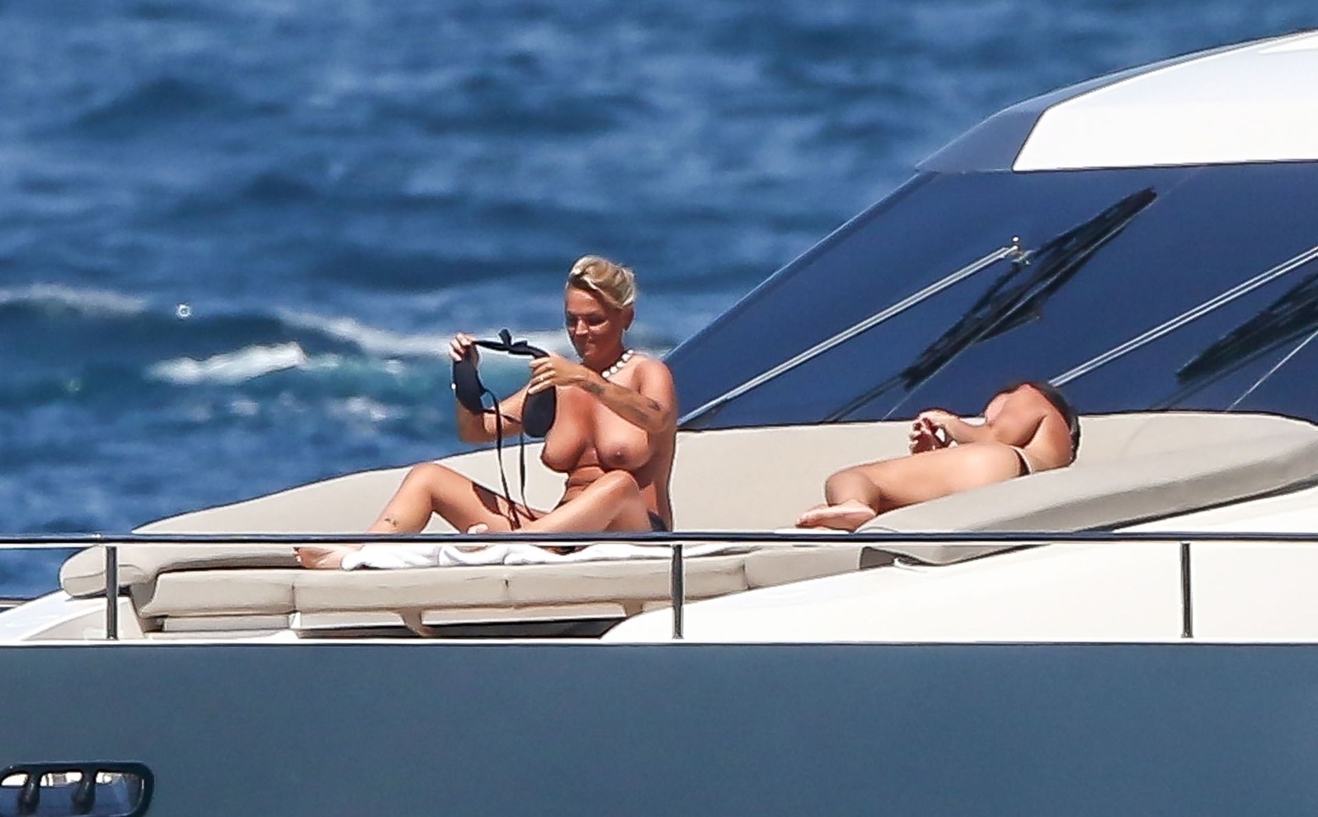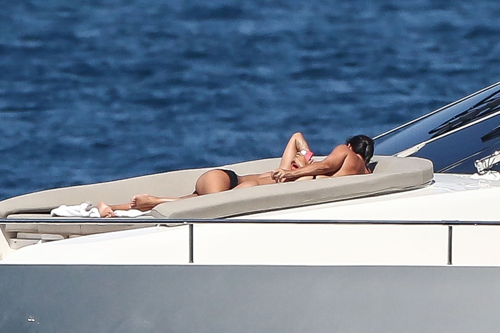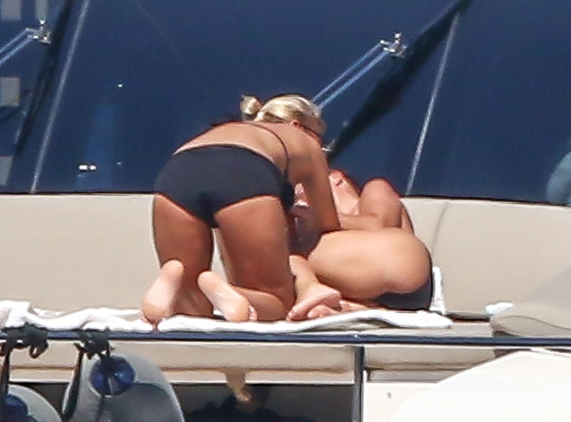 L’ex de Silvio Berlusconi Francesca Pascale et la chanteuse Paola Turci bronzent et se dénudent lors de leurs vacances ensoleillées à bord de leur yacht de luxe sur la Costiera Sorrentina en Italie, 13/08/2020.