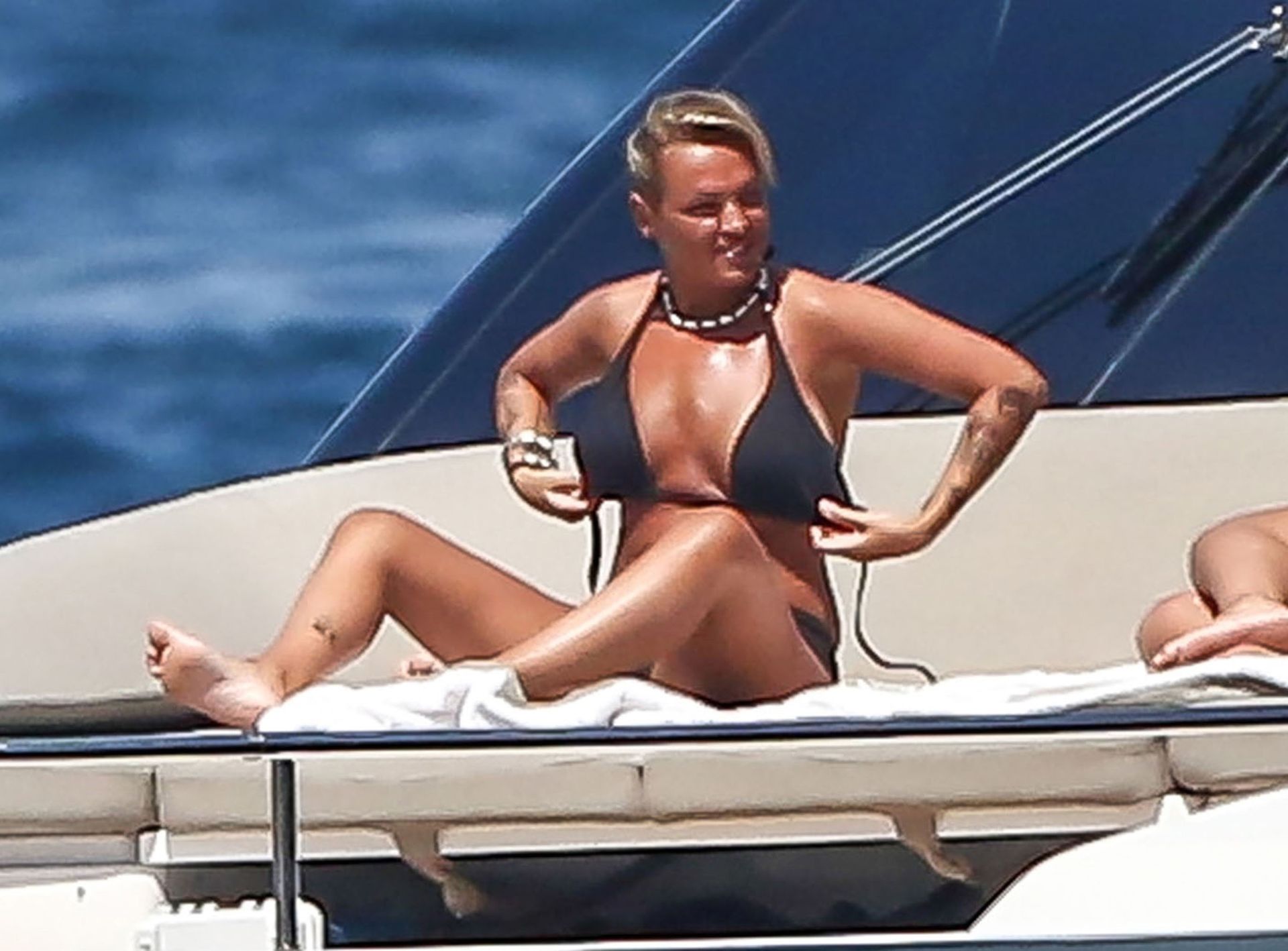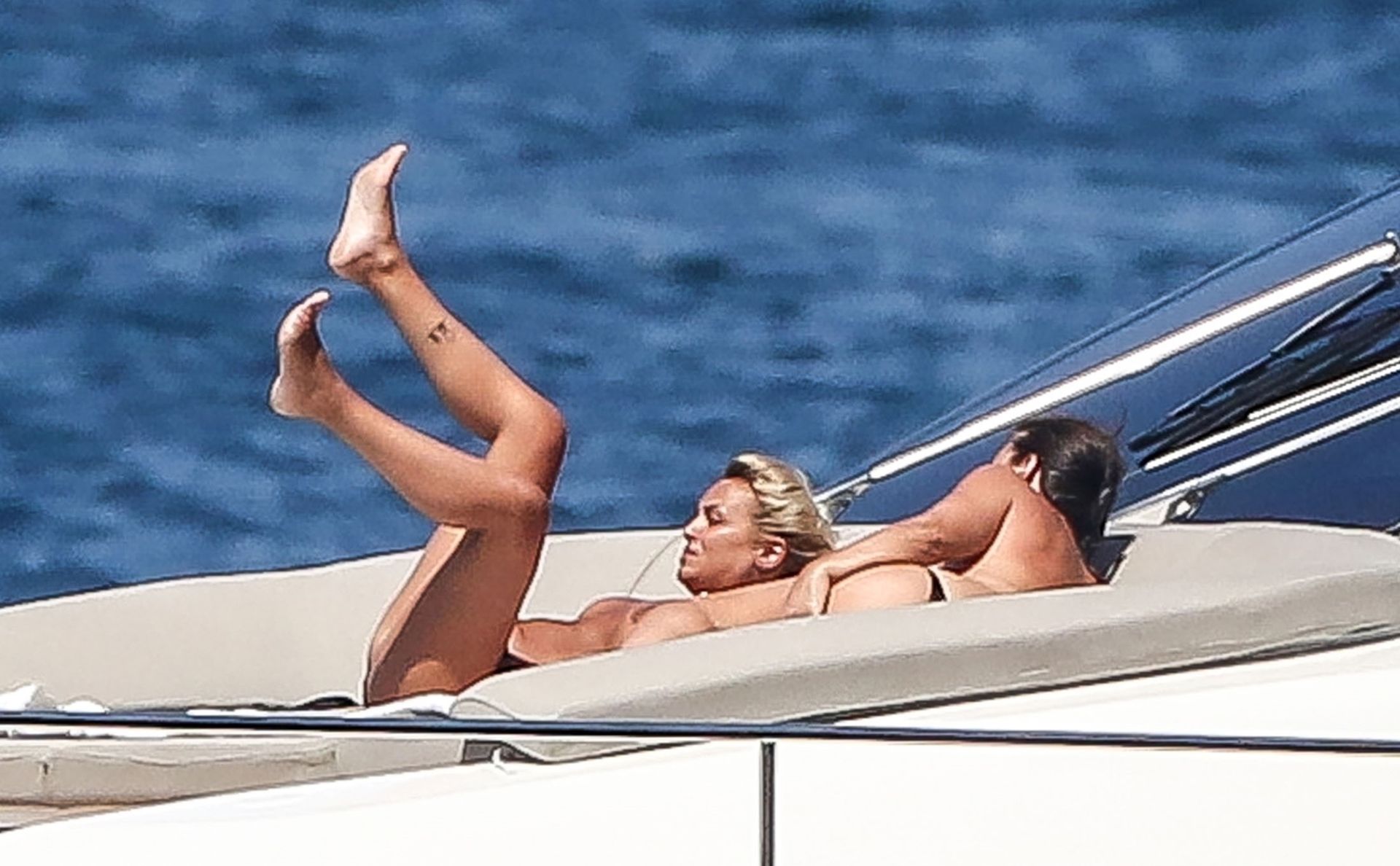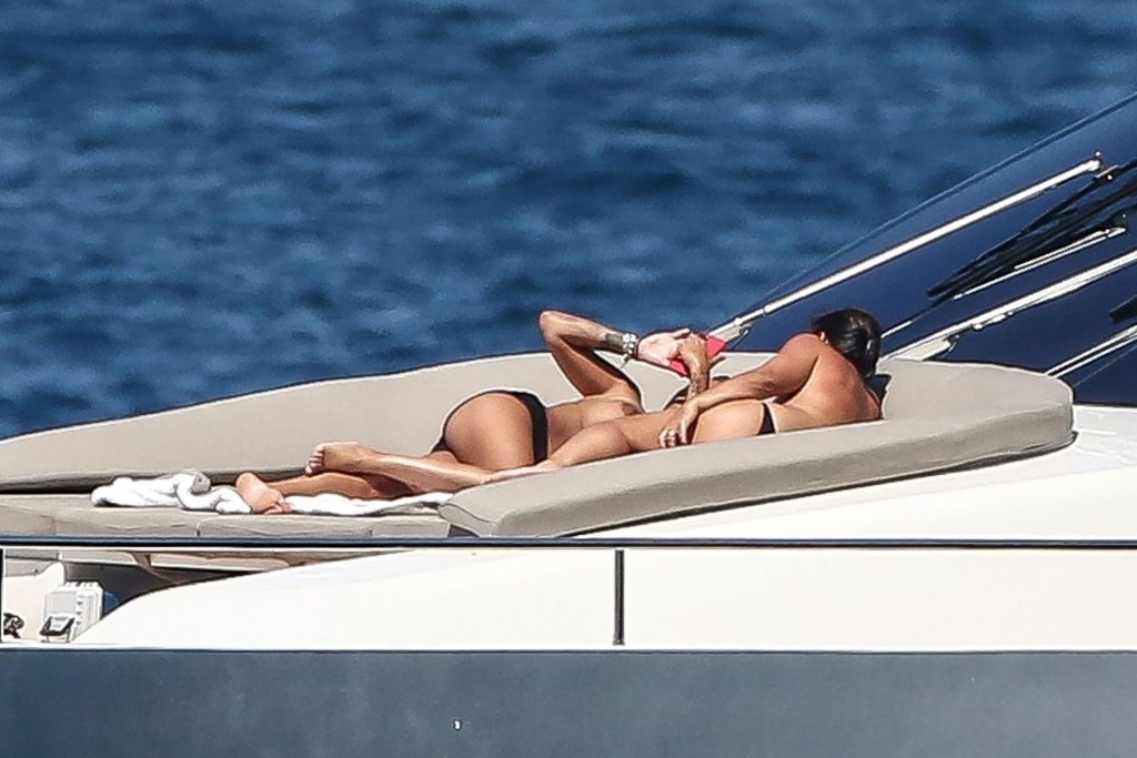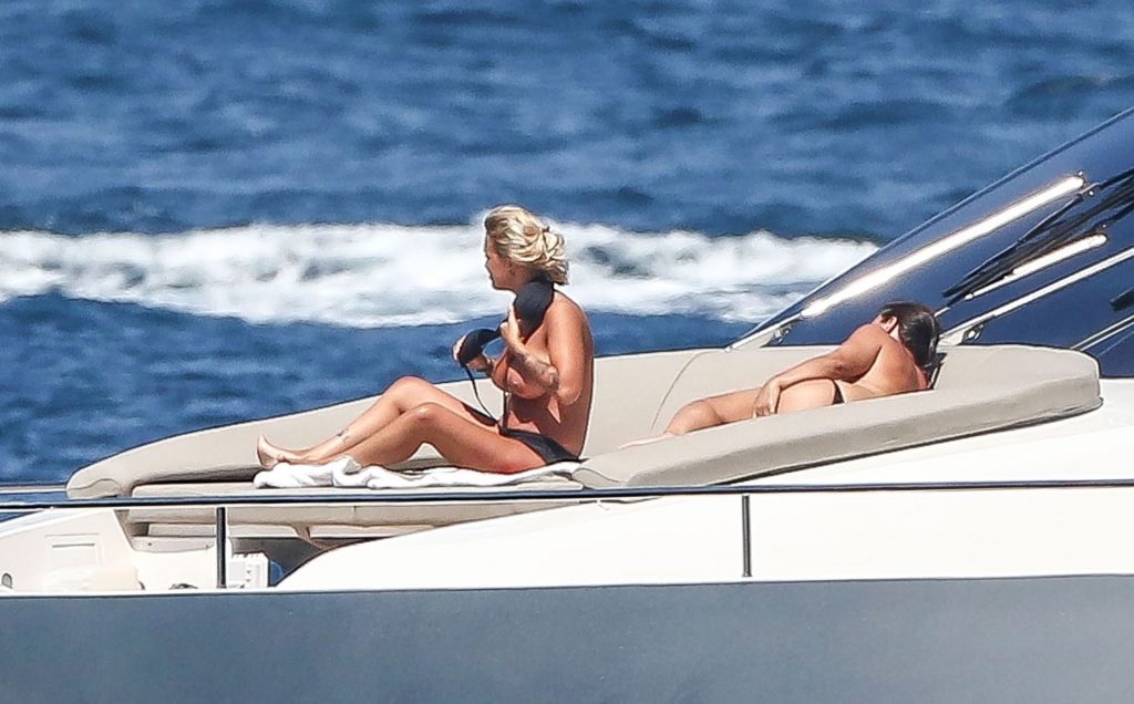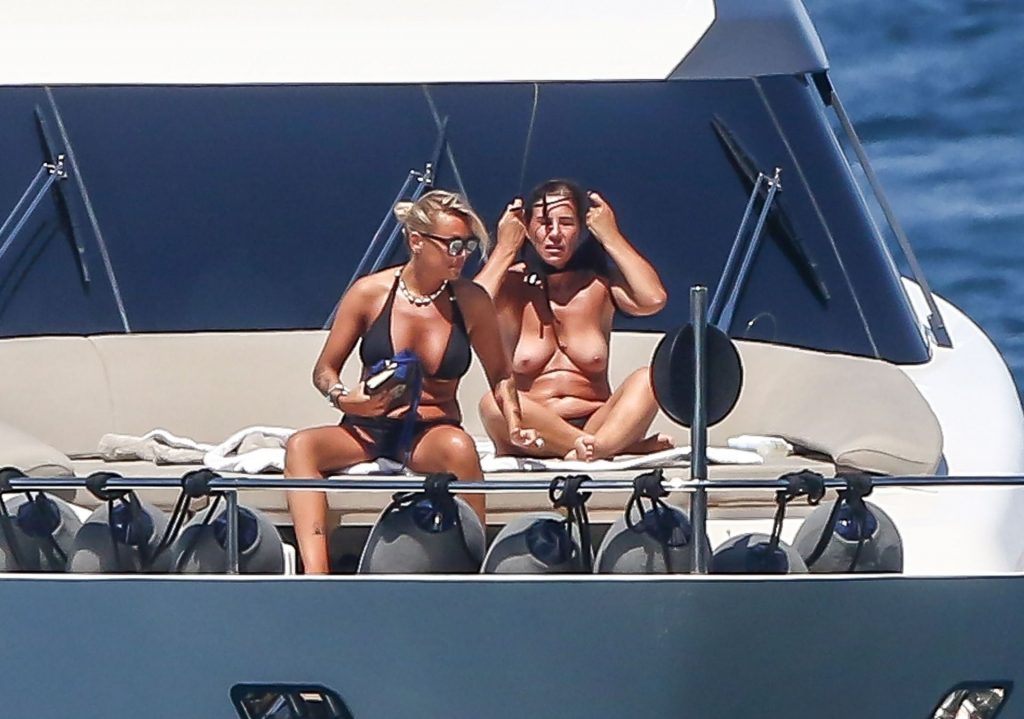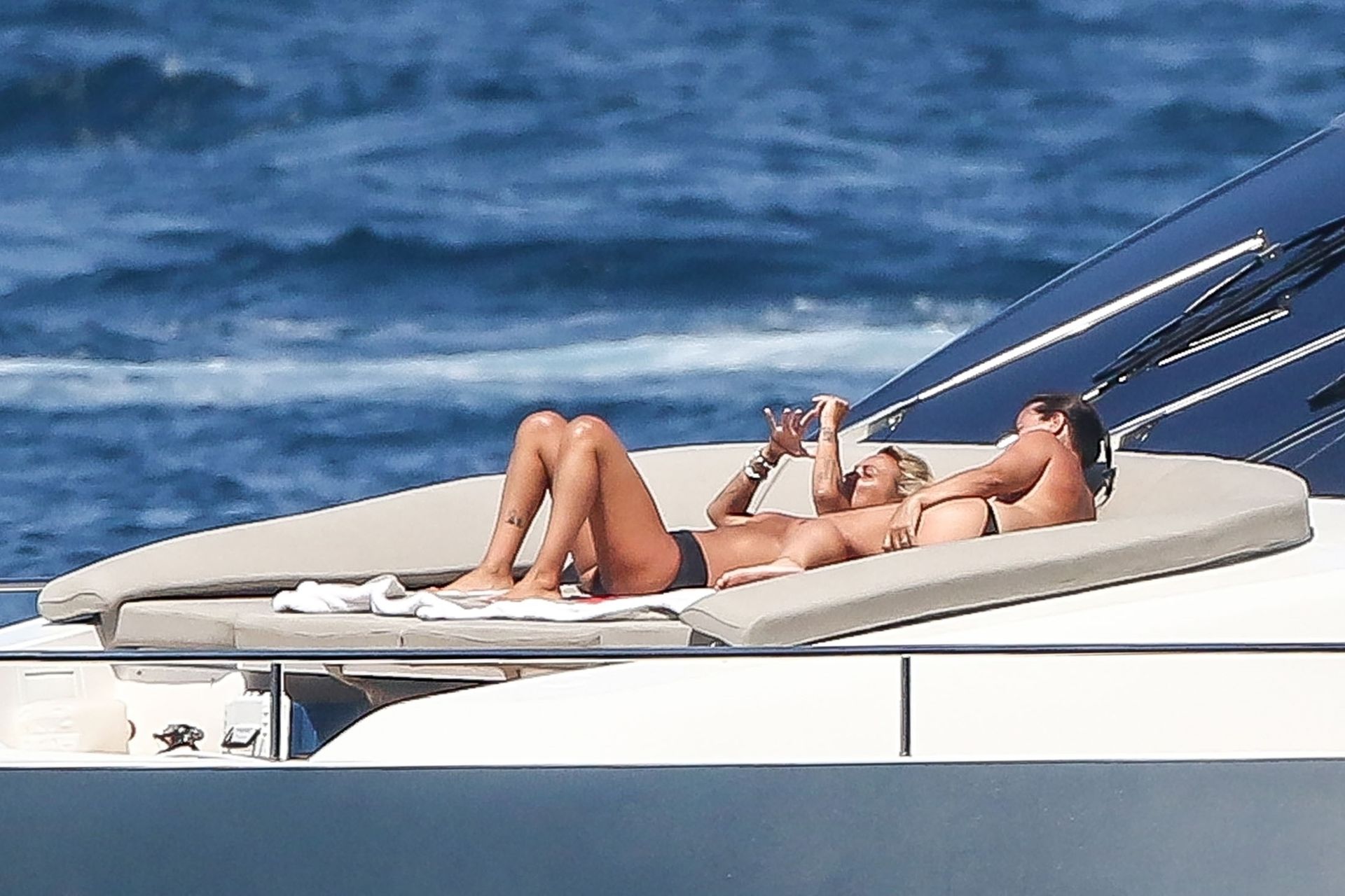 L’ex de Silvio Berlusconi Francesca Pascale et la chanteuse Paola Turci bronzent et se dénudent lors de leurs vacances ensoleillées à bord de leur yacht de luxe sur la Costiera Sorrentina en Italie, 13/08/2020.