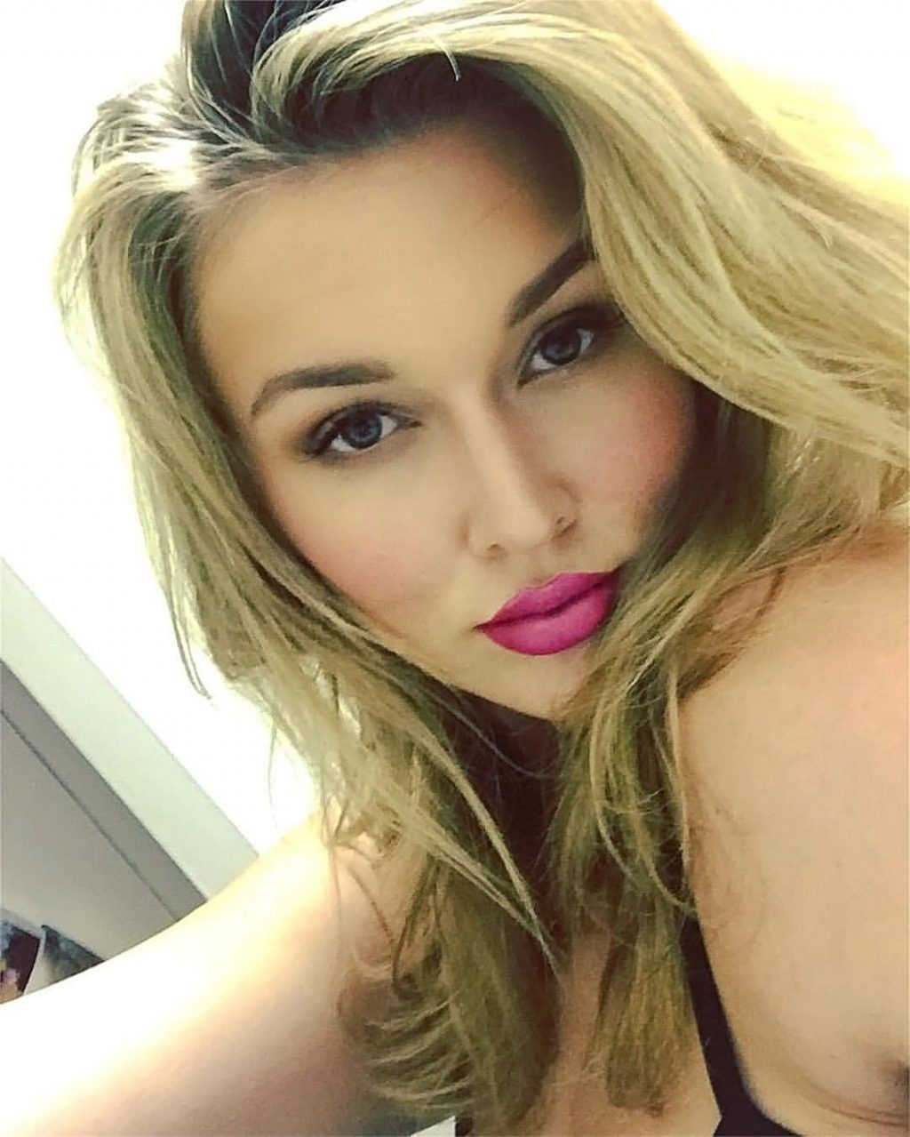 Besides the nudes and many topless pics where cute Hunter McGrady showed us her curves, we have her bikini, feet, and selfie pics. This blondie looks excellent, despite all the fat she carries everywhere around. We like her huge tits, and that’s all!