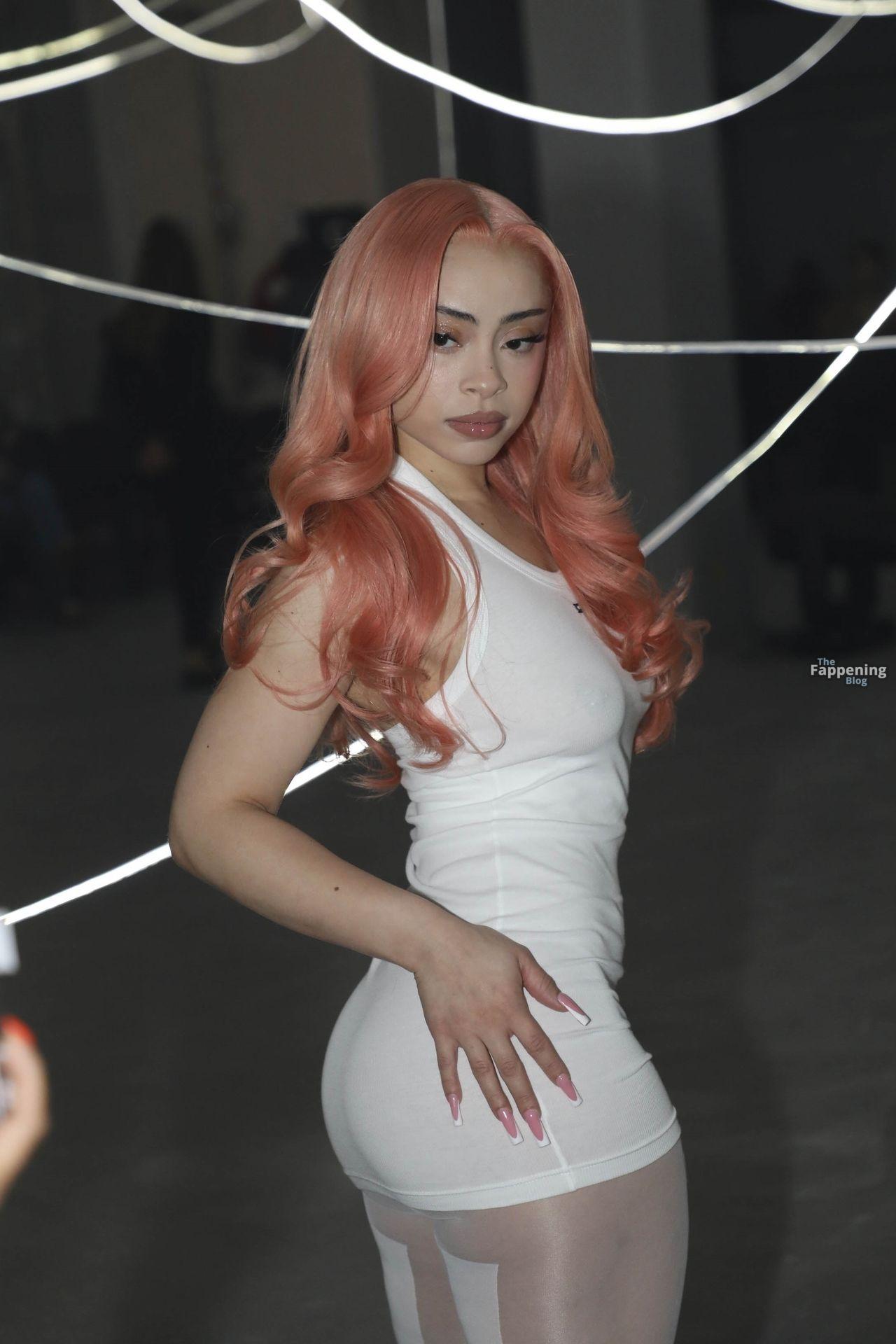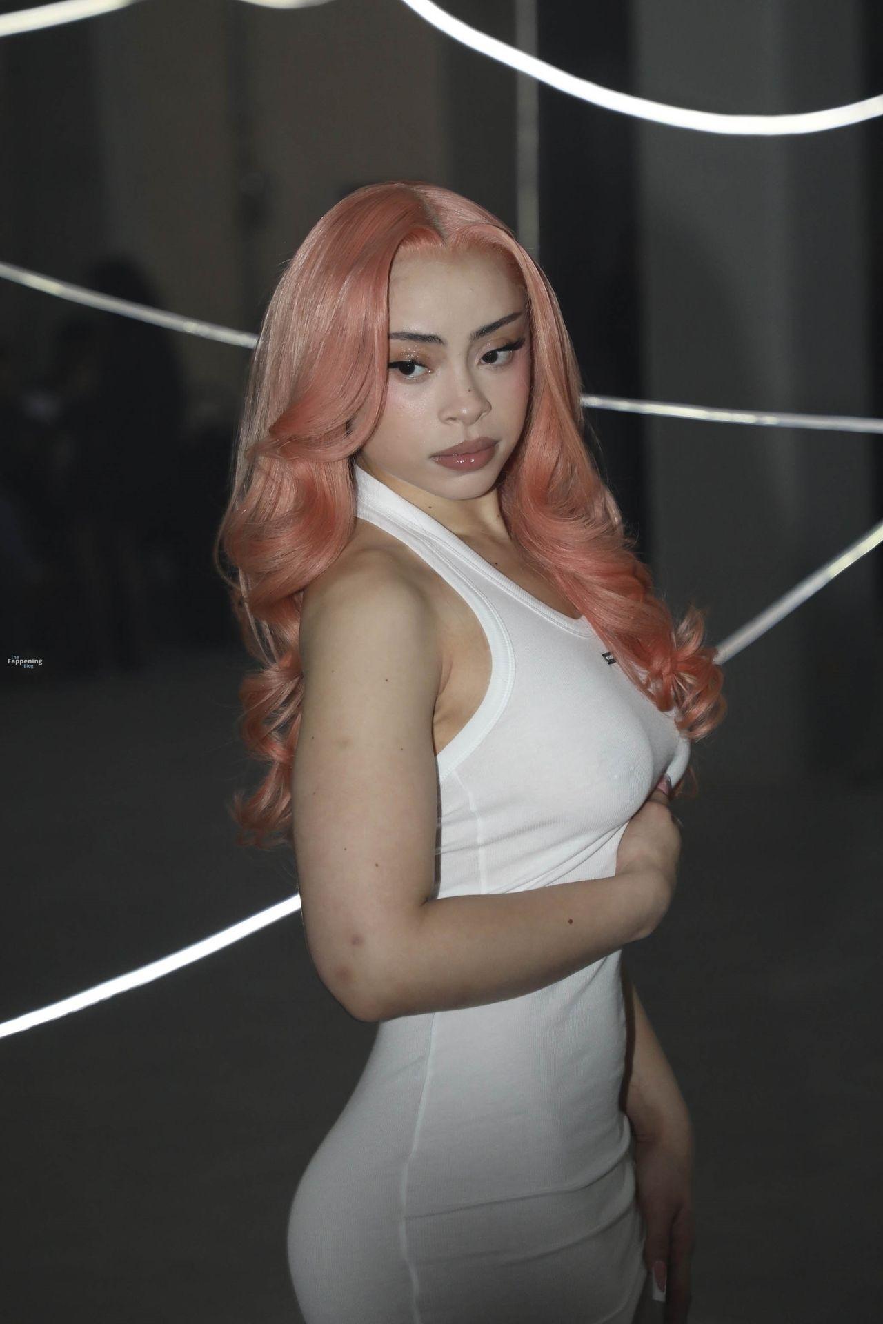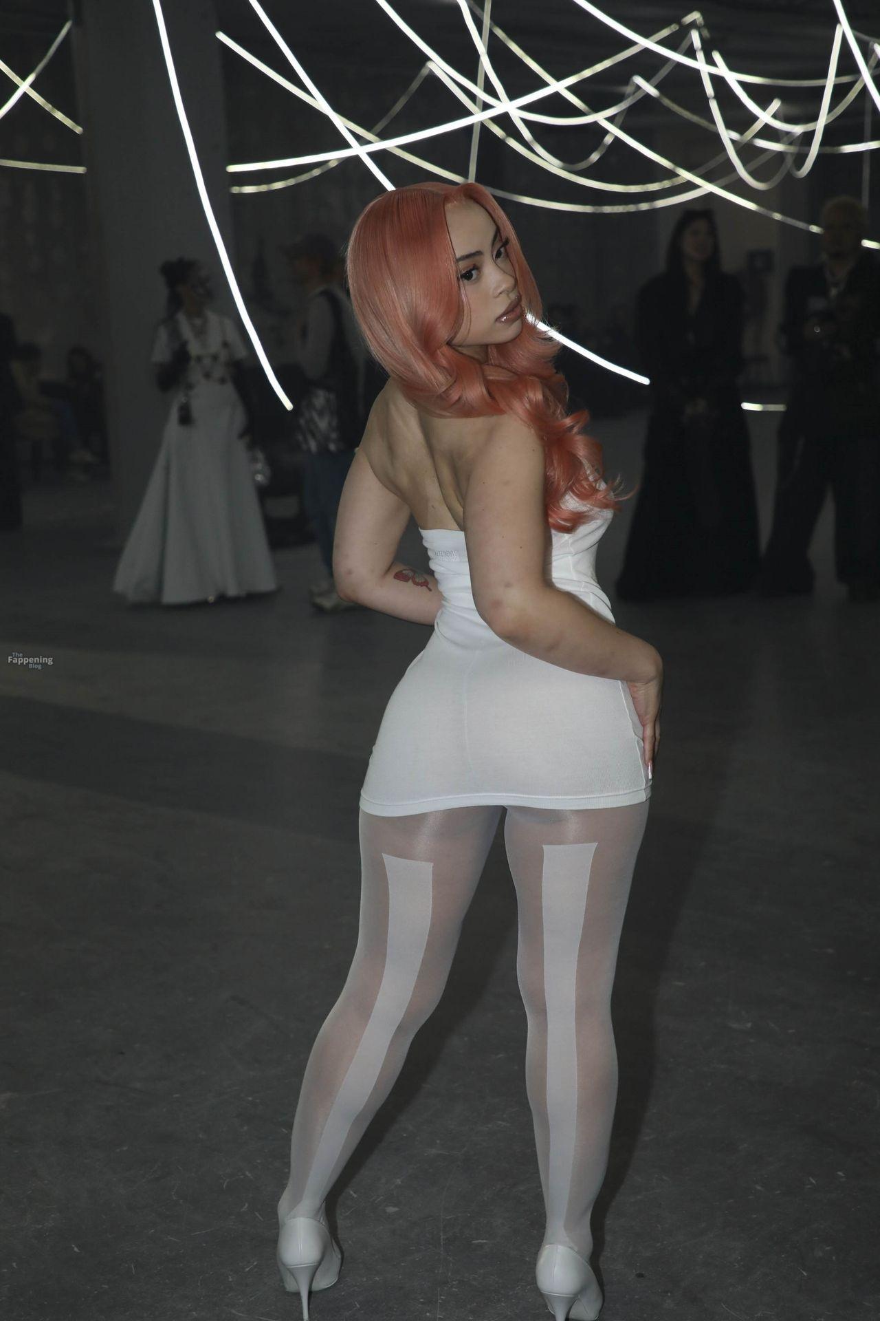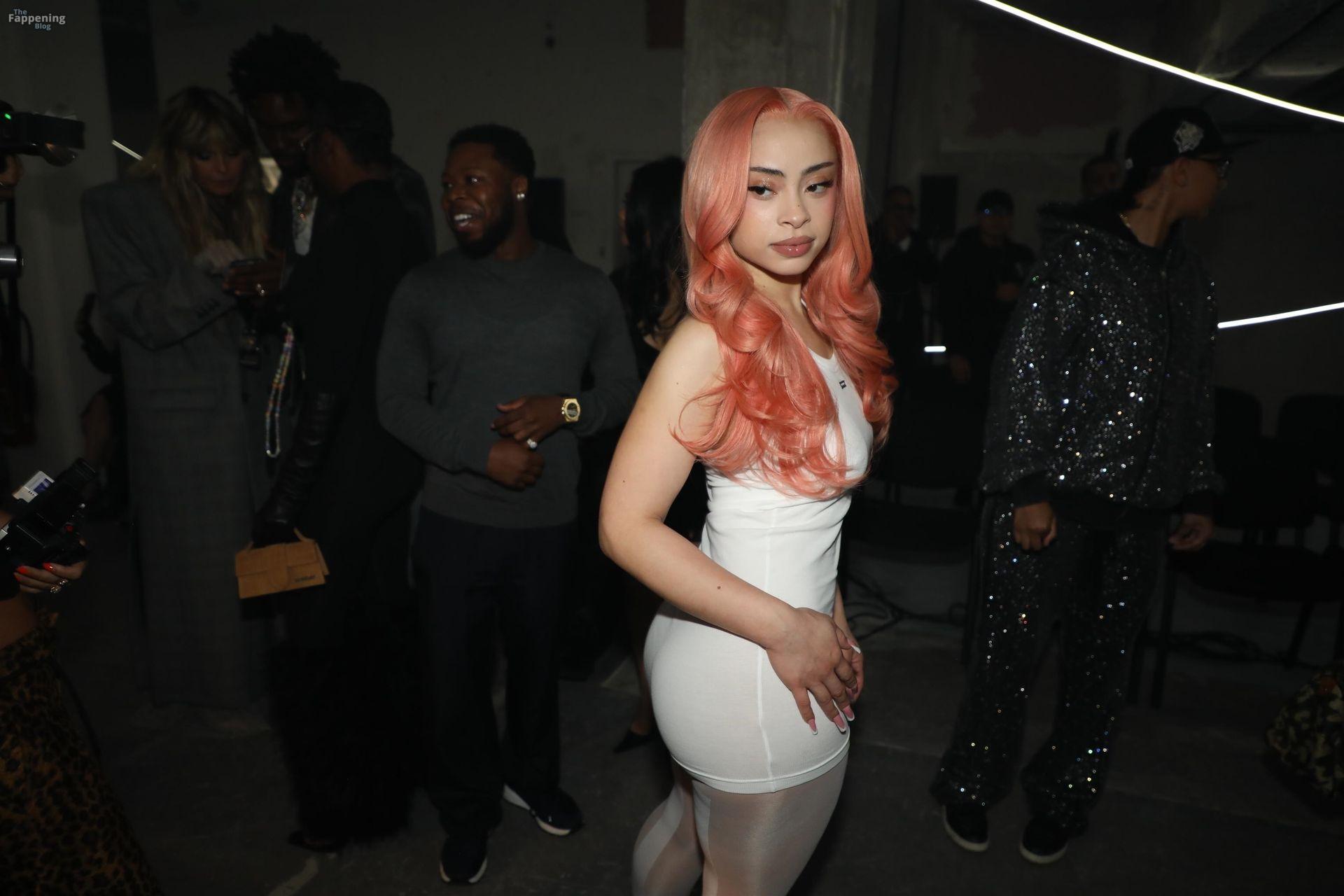Ice Spice met en valeur ses atouts dans une mini-jupe moulante et des collants transparents lors de la Fashion Week VETEMENTS à Paris.