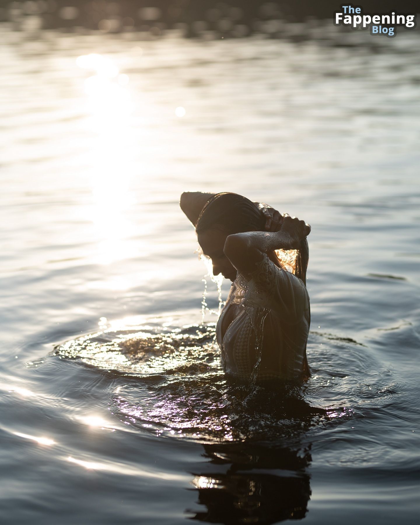 Le mannequin Ilvy Kokomo nous aguiche avec quelques photos en plein air semi-nues, posant dans une robe mouillée.