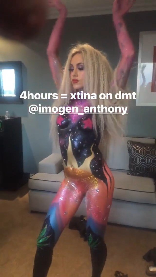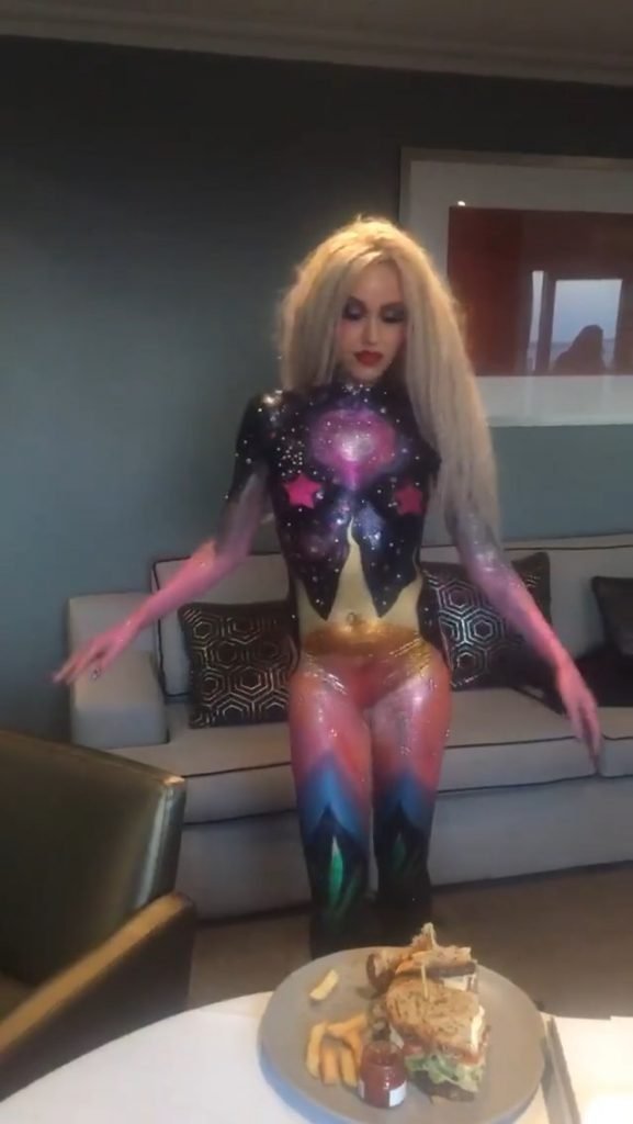 Le mannequin Imogen Anthony exhibe son nouveau bodypaint « Femme de l’Univers » – Instagram, 03/03/2018.