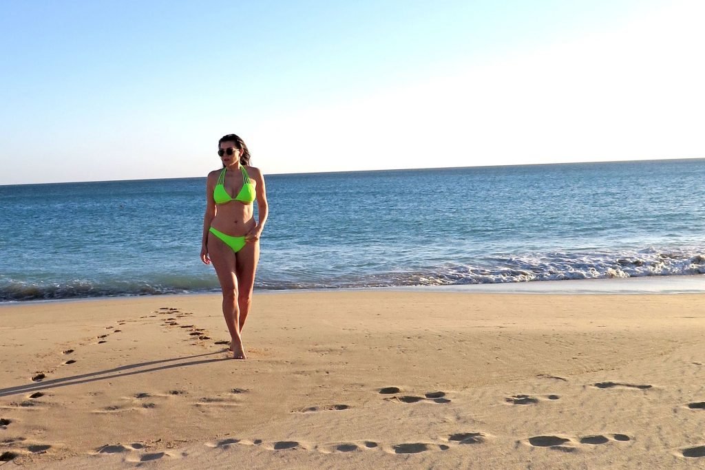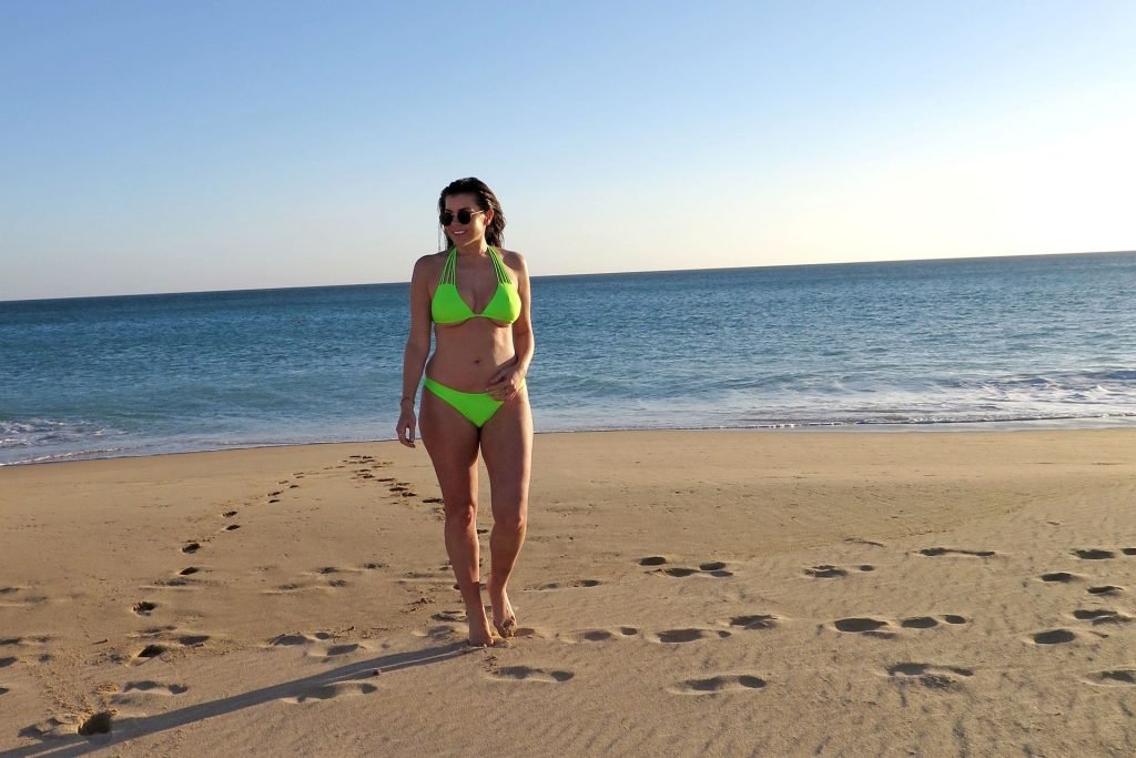 Imogen Thomas est magnifique en posant avec énergie lors d’une séance photo sur la plage au Portugal pour sa collection de maillots de bain Chasing Summer (2019).