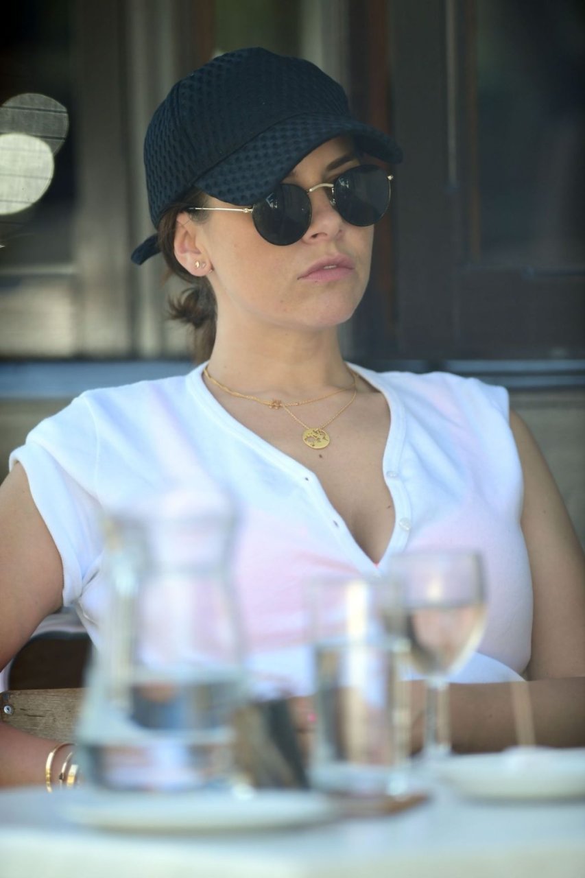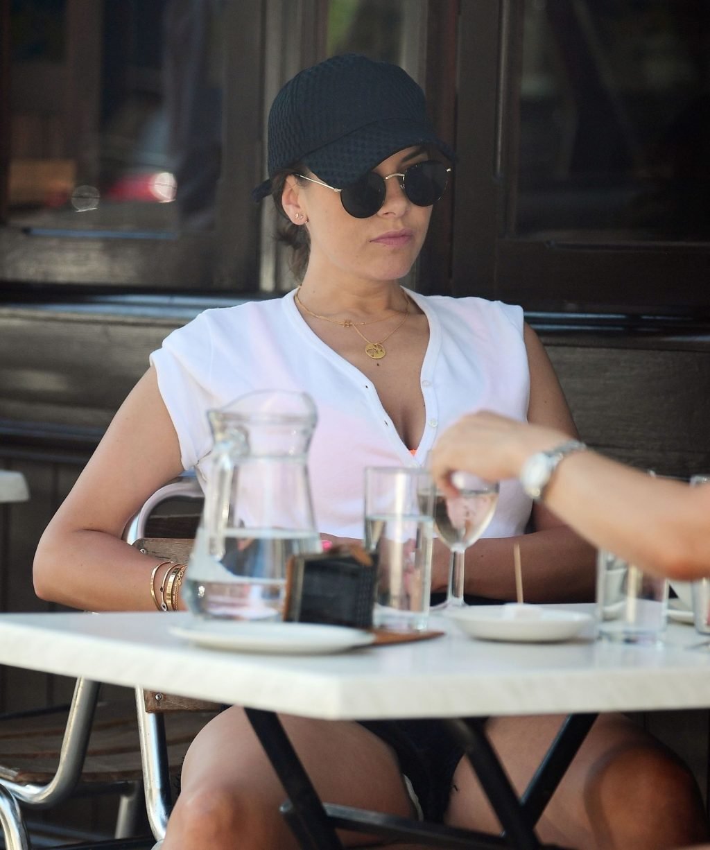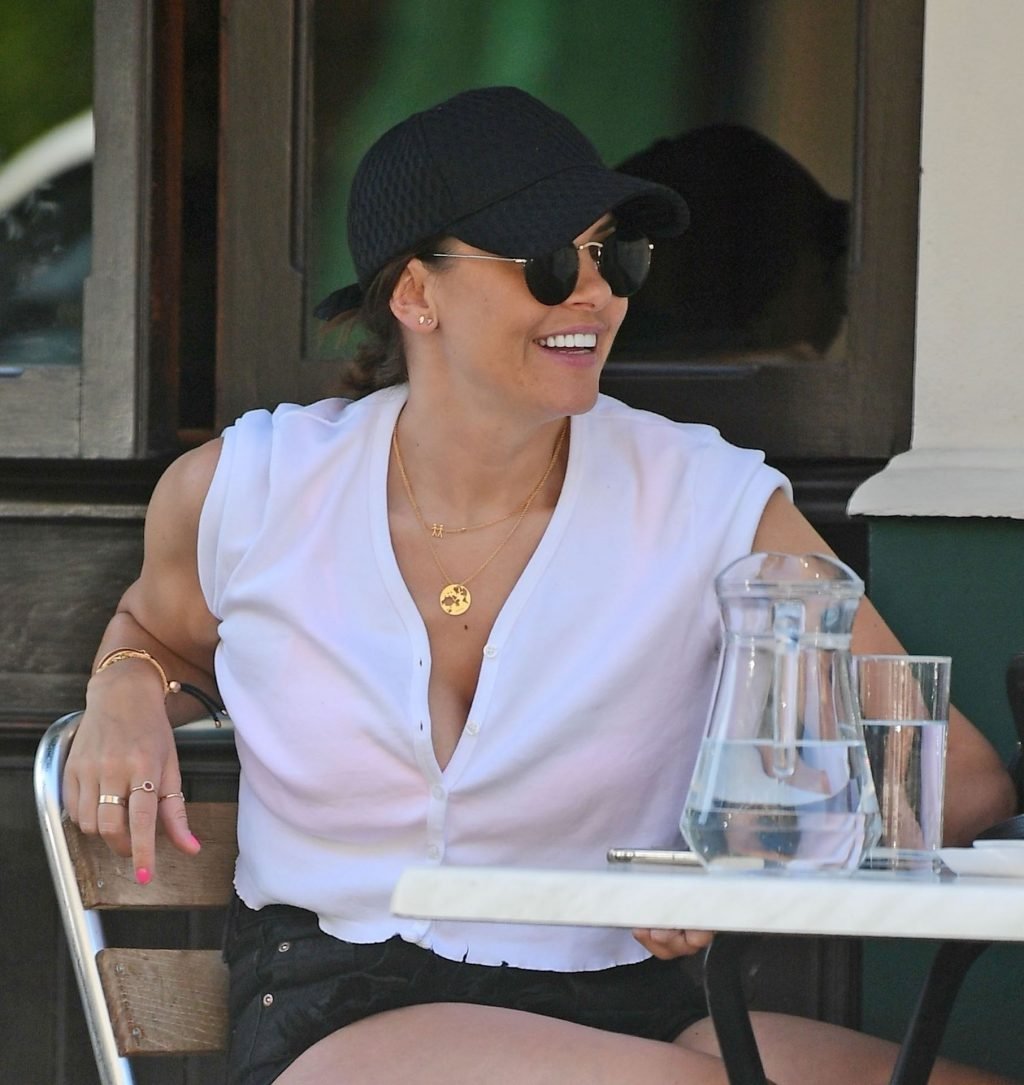 Ancienne star de “Big Brother”, la séduisante et sexy Imogen Thomas affiche des poses sexy et sensuelles en dévoilant un peu de décolleté à Primrose Hill tout en mangeant une glace et en buvant du vin, 07/04/2019.