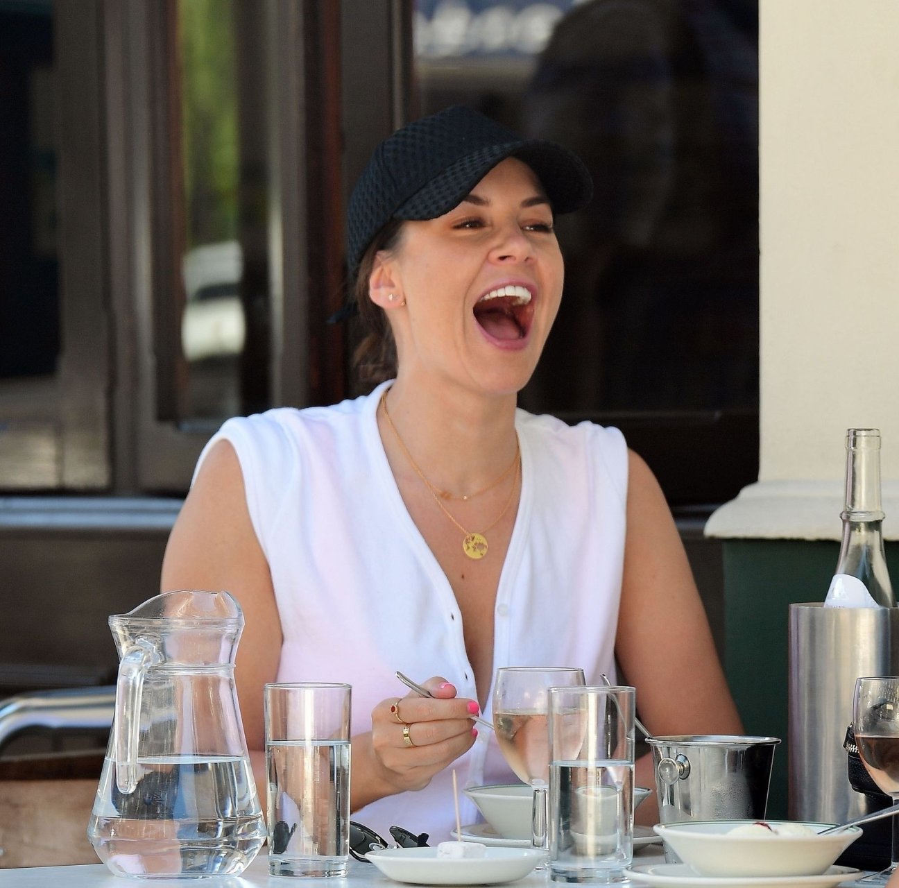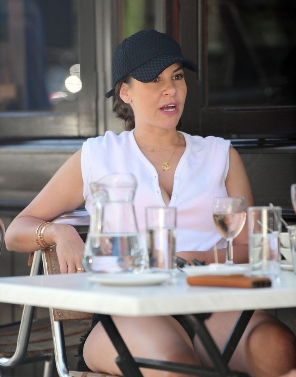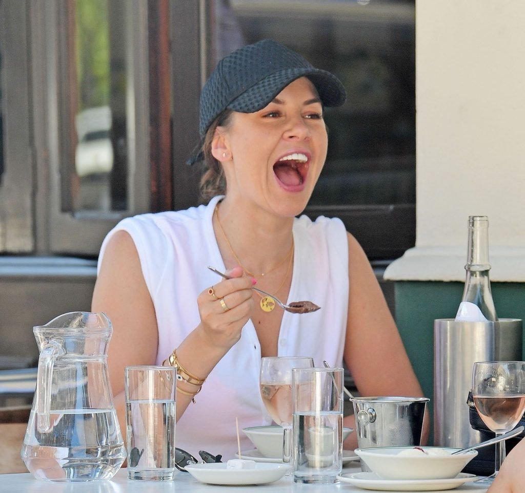Ancienne star de “Big Brother”, la séduisante et sexy Imogen Thomas affiche des poses sexy et sensuelles en dévoilant un peu de décolleté à Primrose Hill tout en mangeant une glace et en buvant du vin, 07/04/2019.