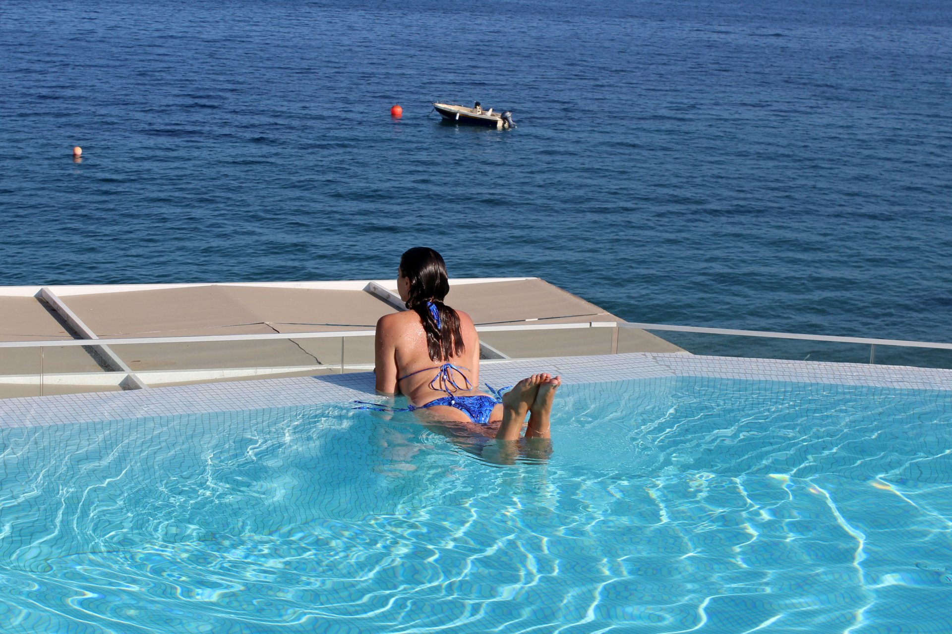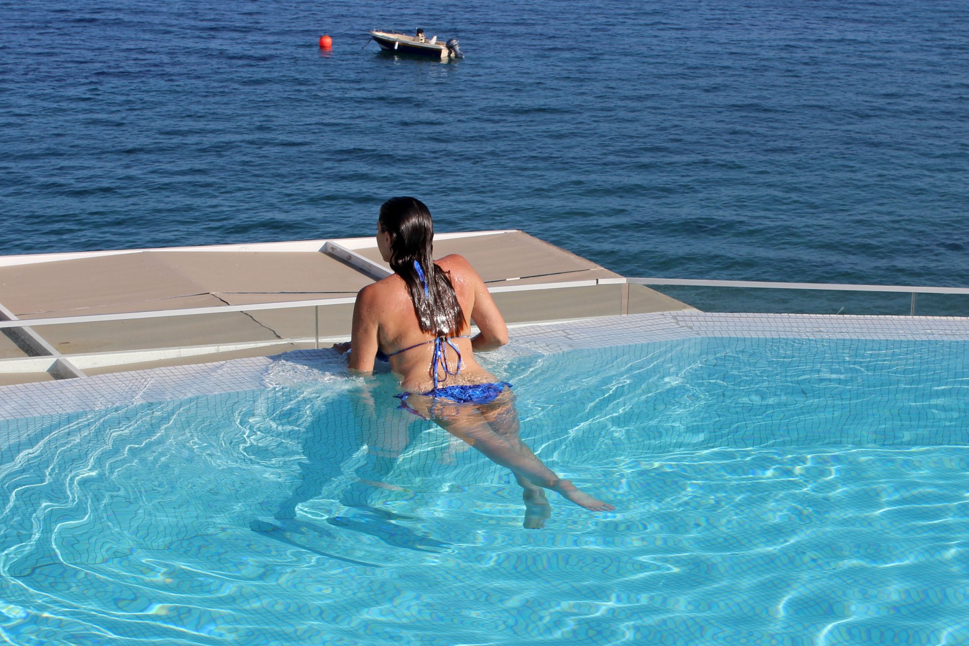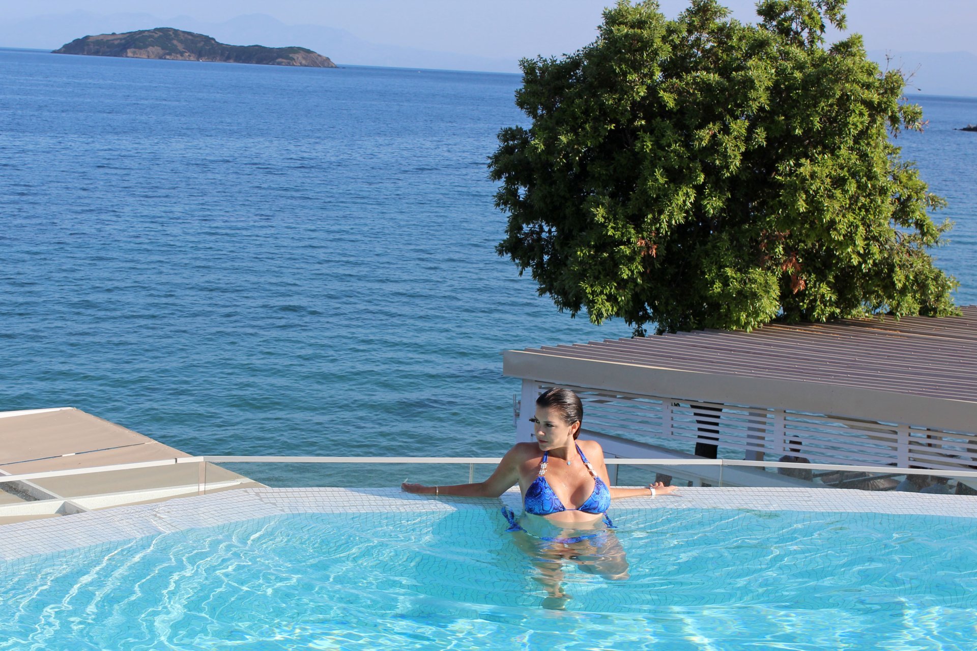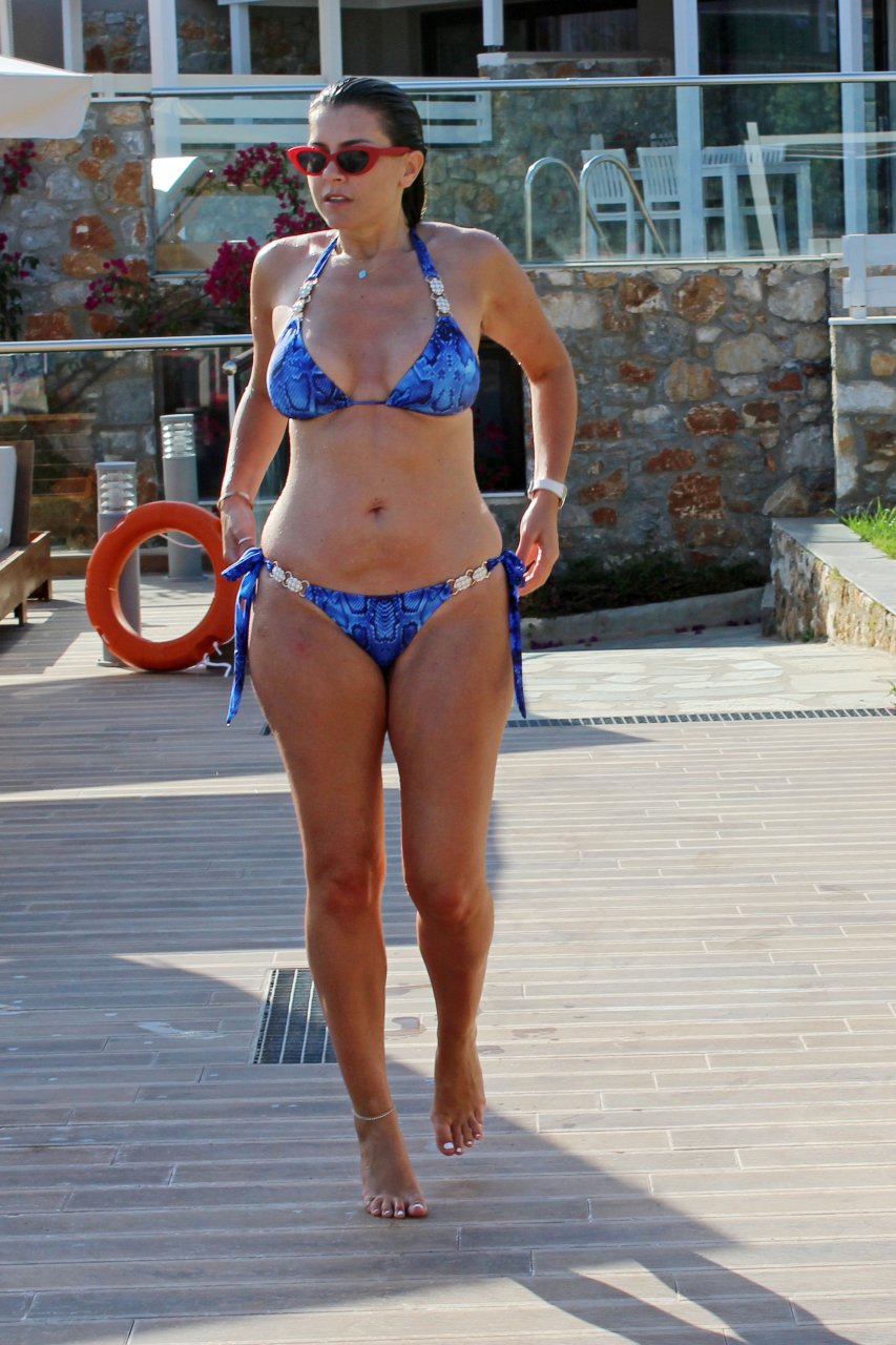 Imogen Thomas a l’air sensationnelle alors qu’elle rafraîchit son corps tonique dans un bikini d’été bleu en plongeant dans la piscine à Magnisia, le 29/05/2018. La mère célibataire de 35 ans était en Grèce pour assister au mariage de sa meilleure amie.