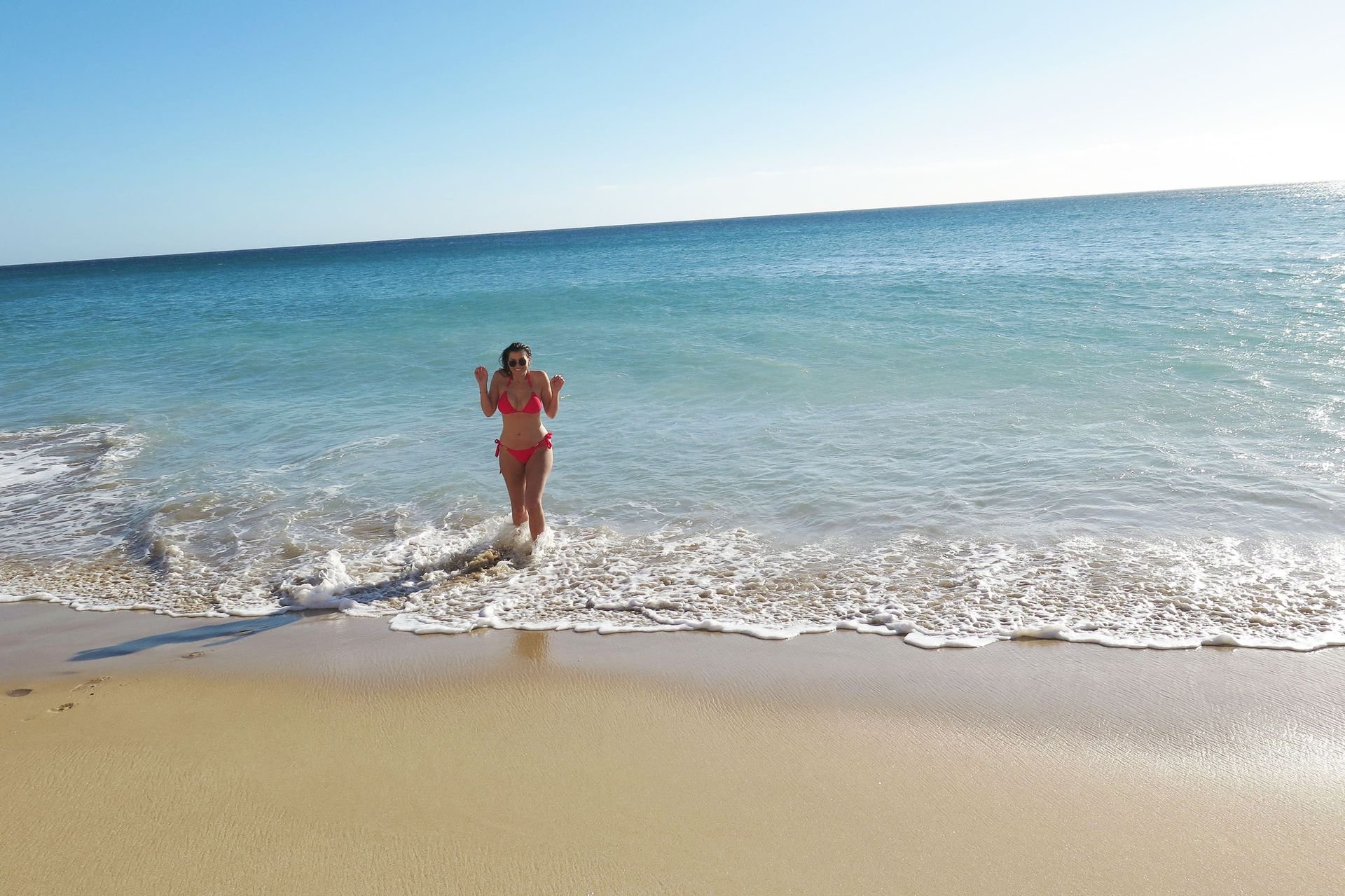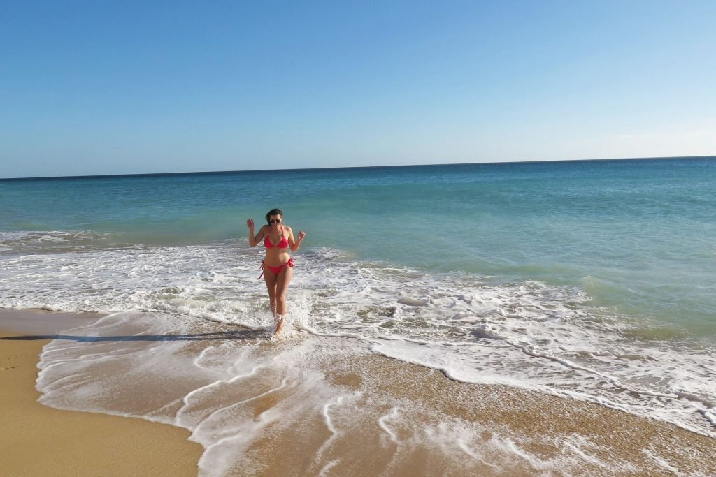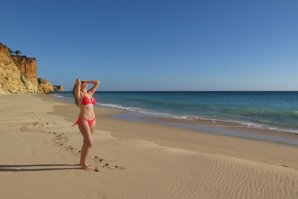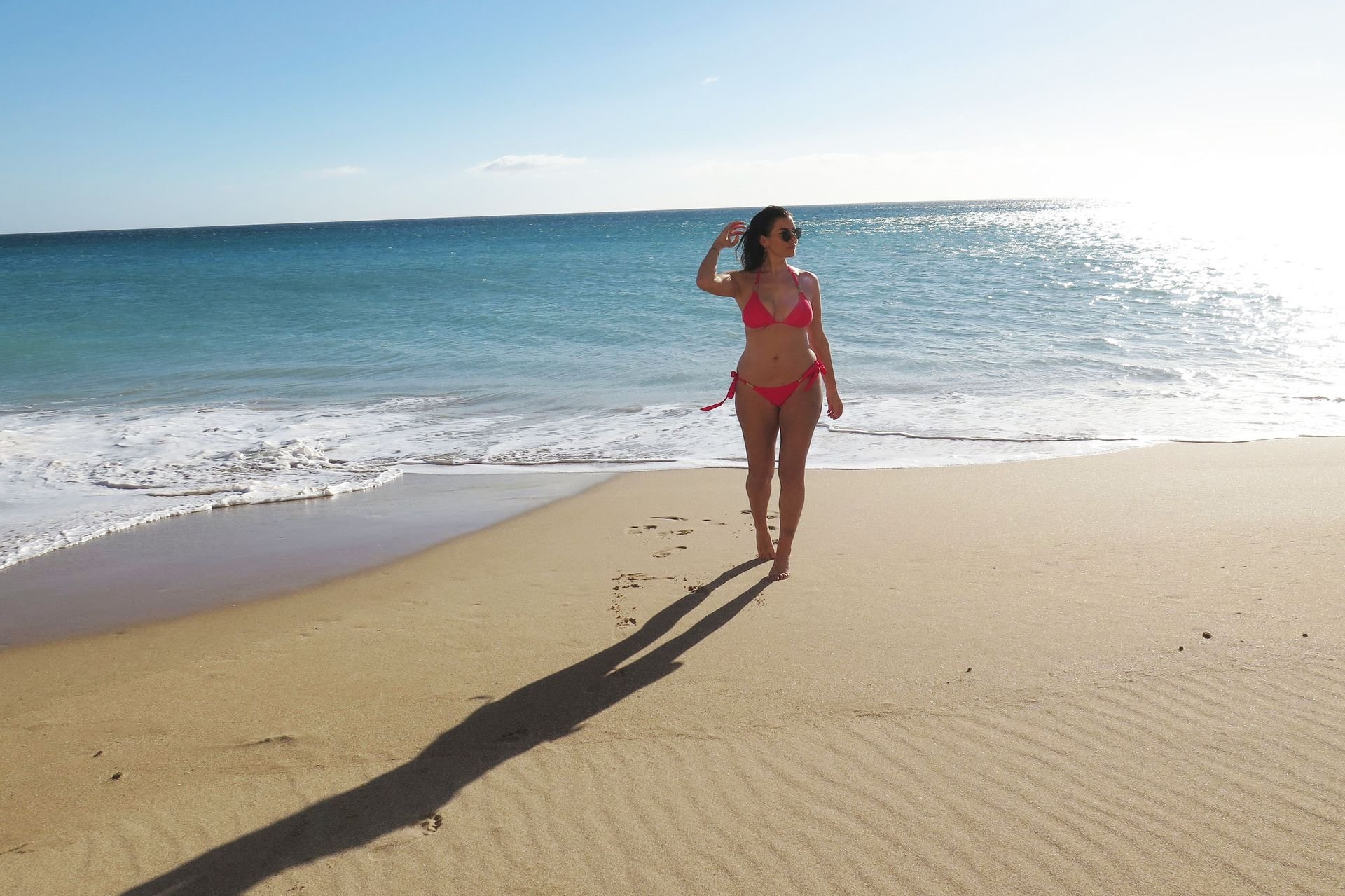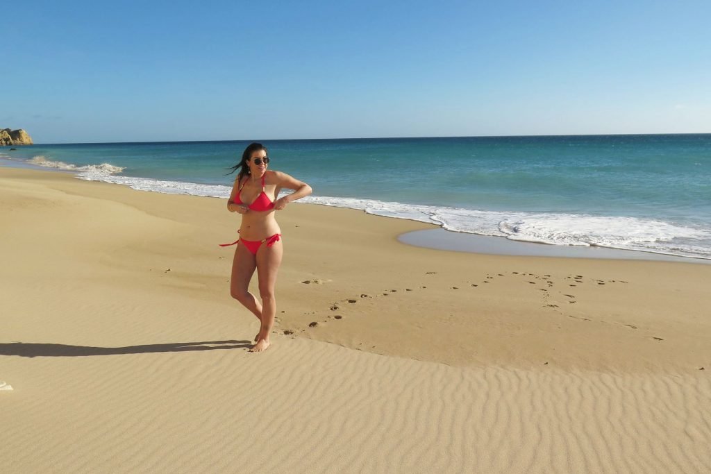 Imogen Thomas récolte les fruits de son travail en exhibant son incroyable corps en bikini dans un bikini rouge Chasing Summer après avoir participé à une semaine éprouvante de fitness et de régime au Prestige Bootcamp au Portugal, le 25/01/2019.