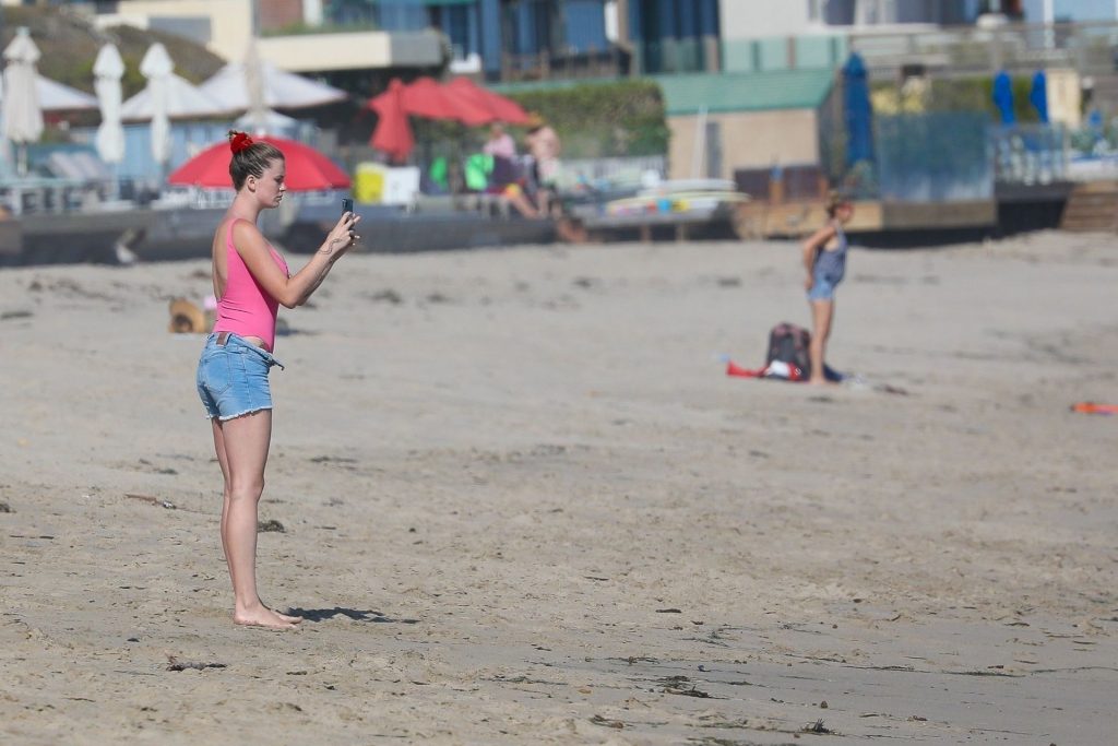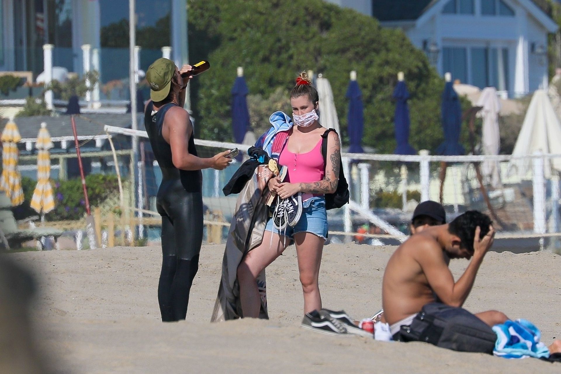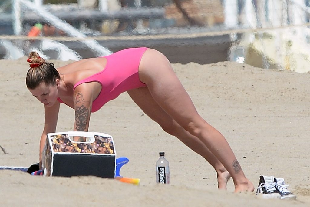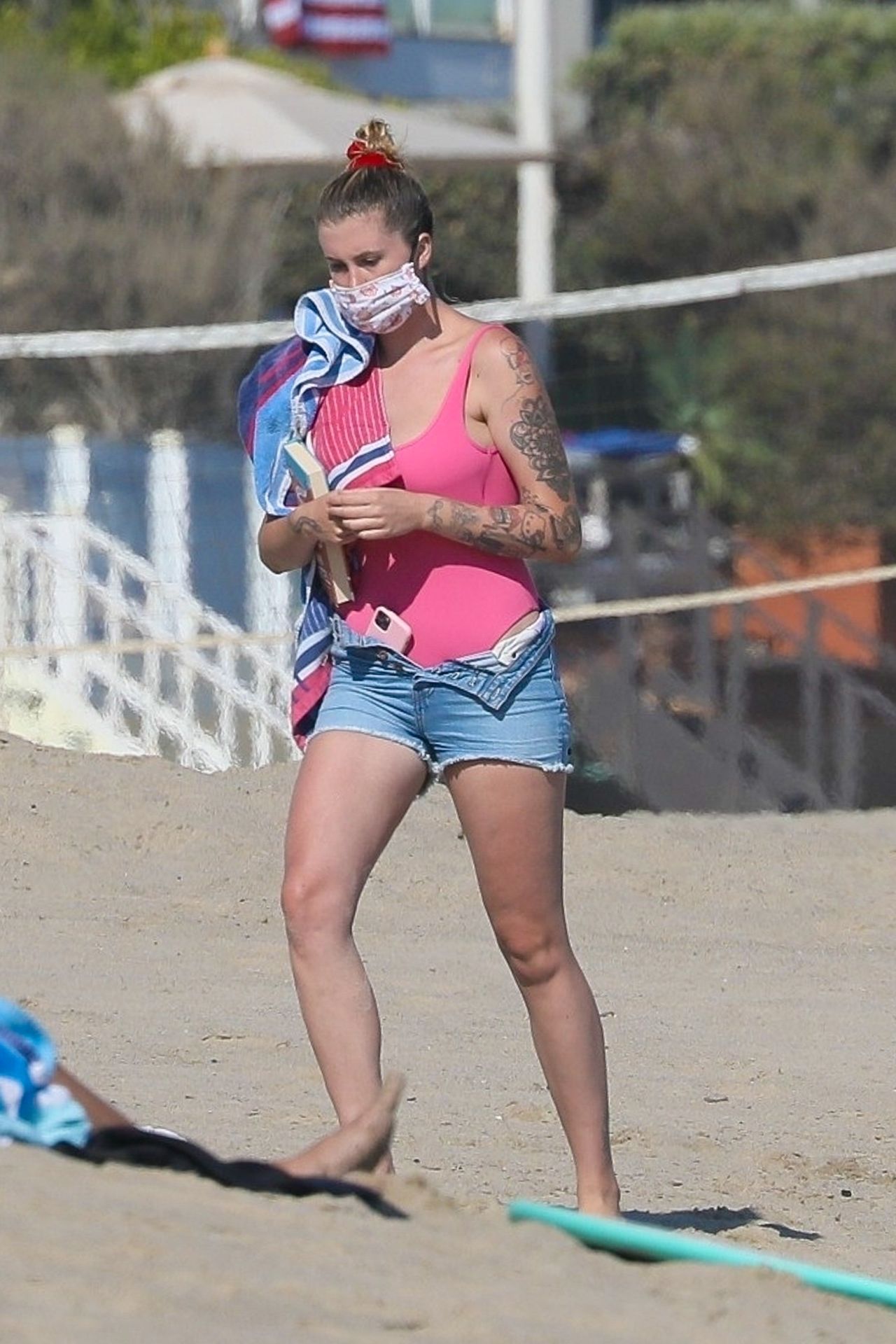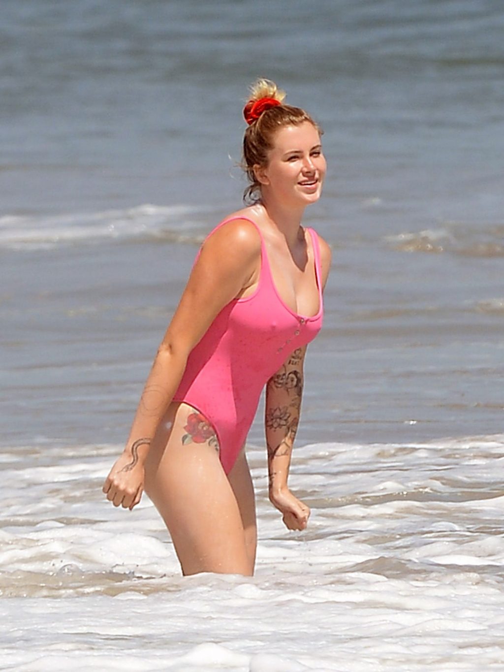 Ireland Baldwin est photographiée en train de profiter d’une journée à la plage, le 20/07/2020. Le mannequin de 24 ans s’est jetée à l’eau pour une baignade dans un maillot une pièce rose bubblegum. On la voit regarder son petit ami Corey Harper surfer à Malibu.