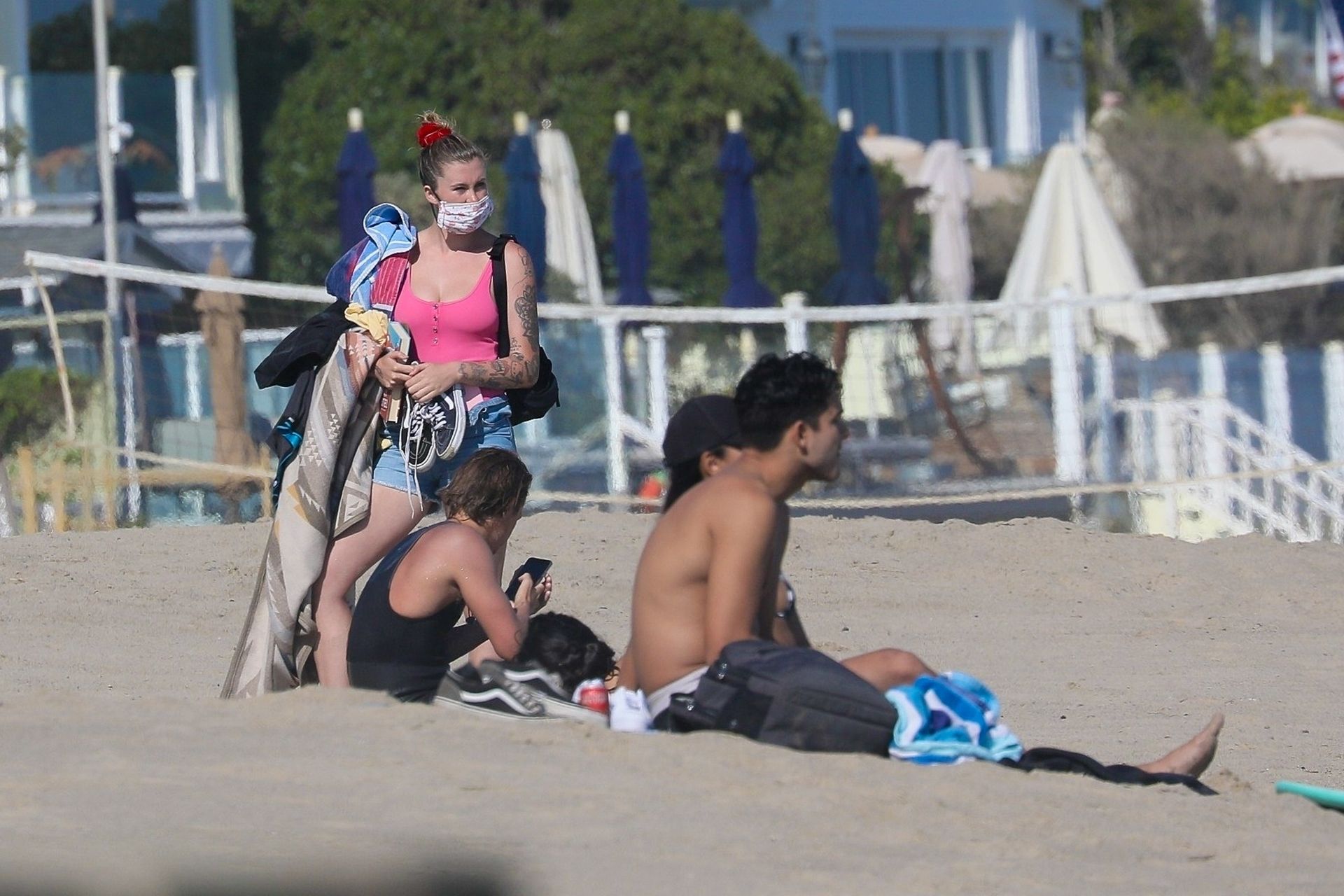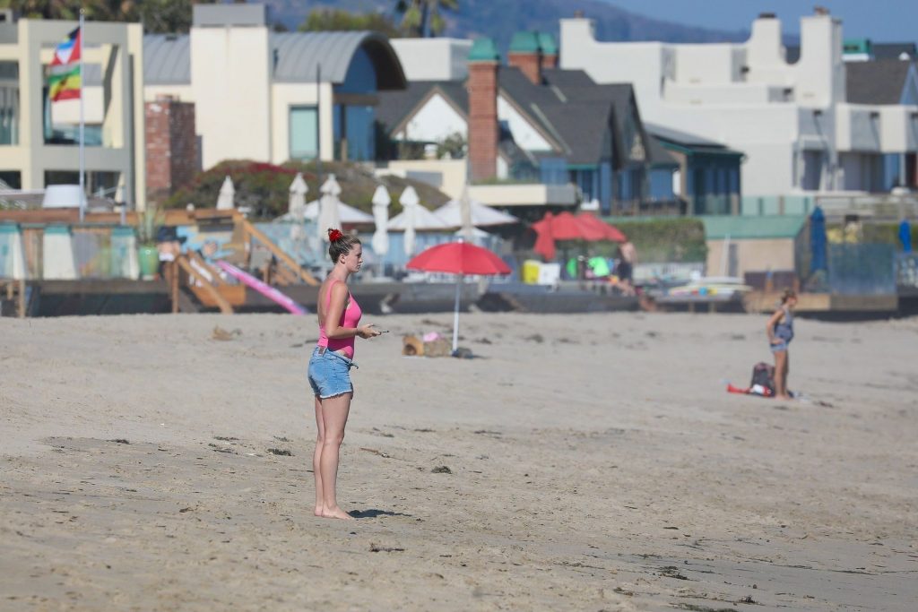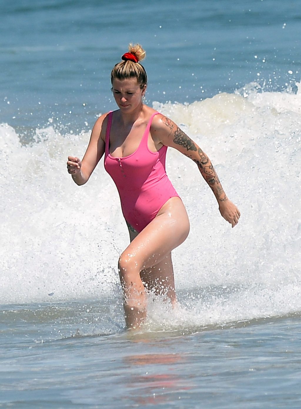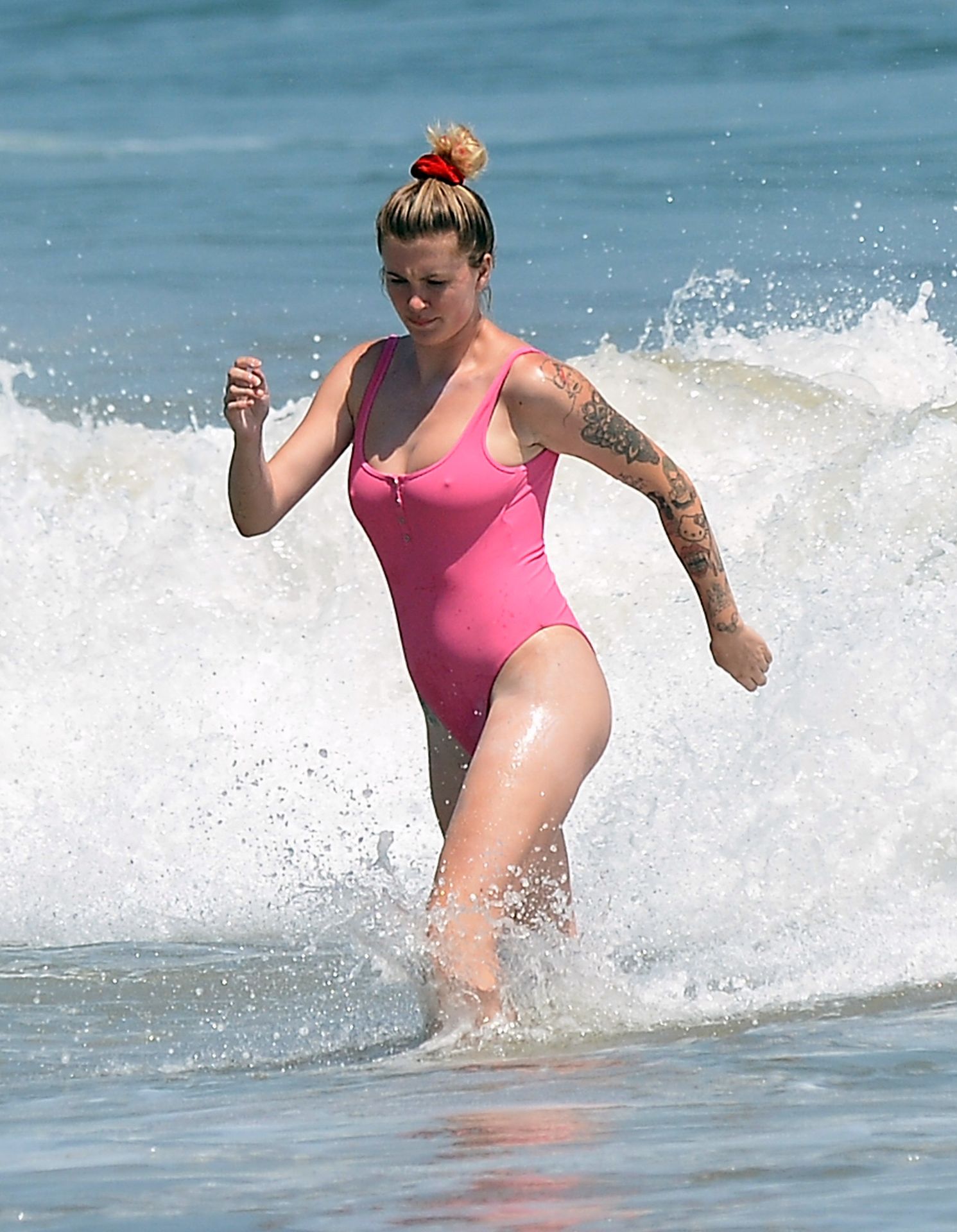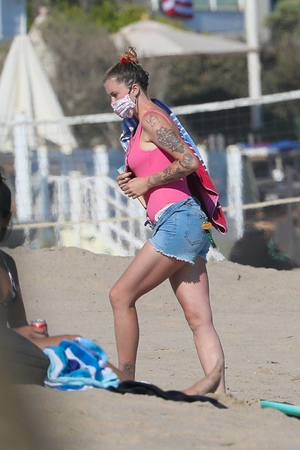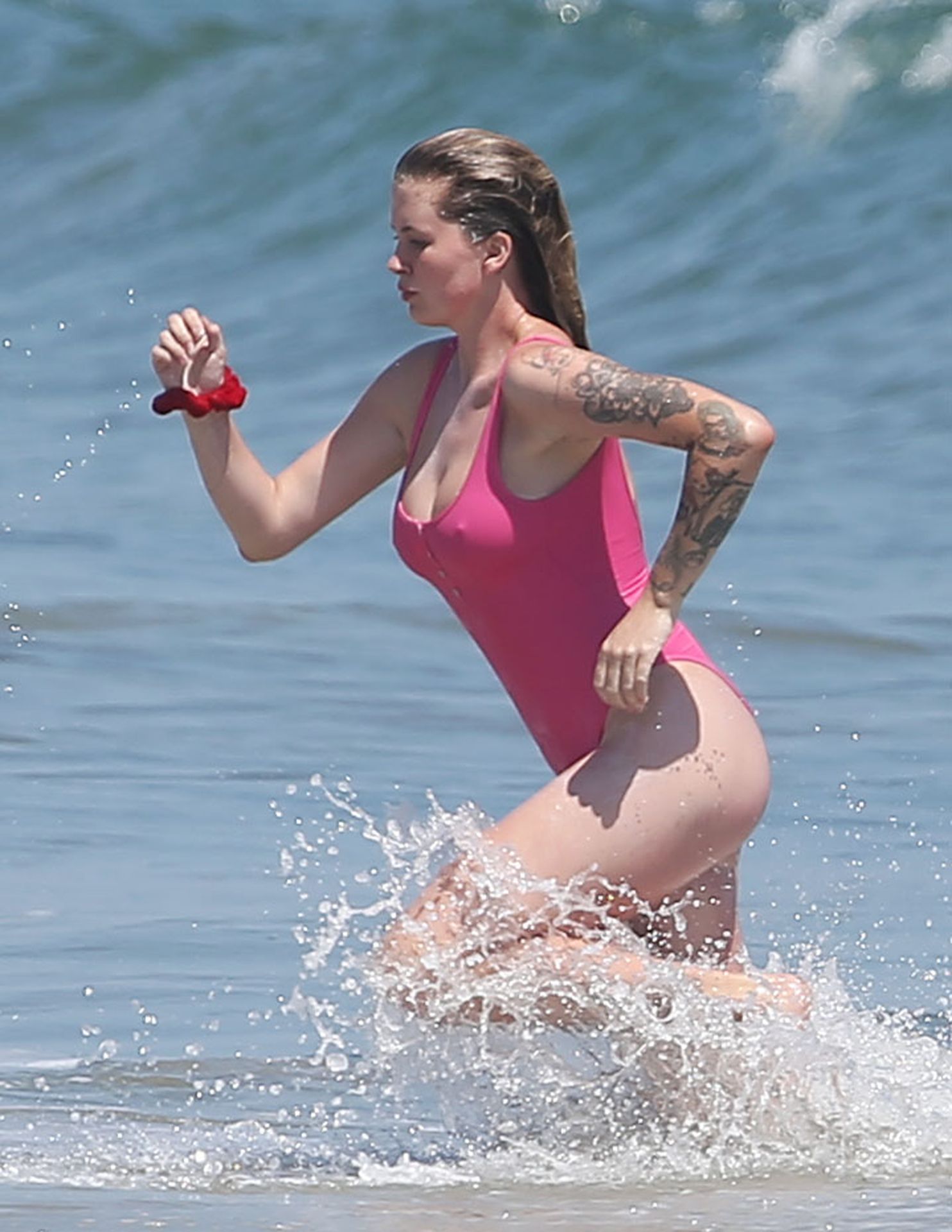 Ireland Baldwin est photographiée en train de profiter d’une journée à la plage, le 20/07/2020. Le mannequin de 24 ans s’est jetée à l’eau pour une baignade dans un maillot une pièce rose bubblegum. On la voit regarder son petit ami Corey Harper surfer à Malibu.