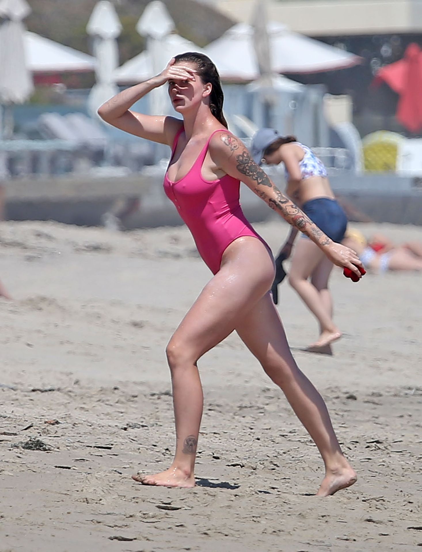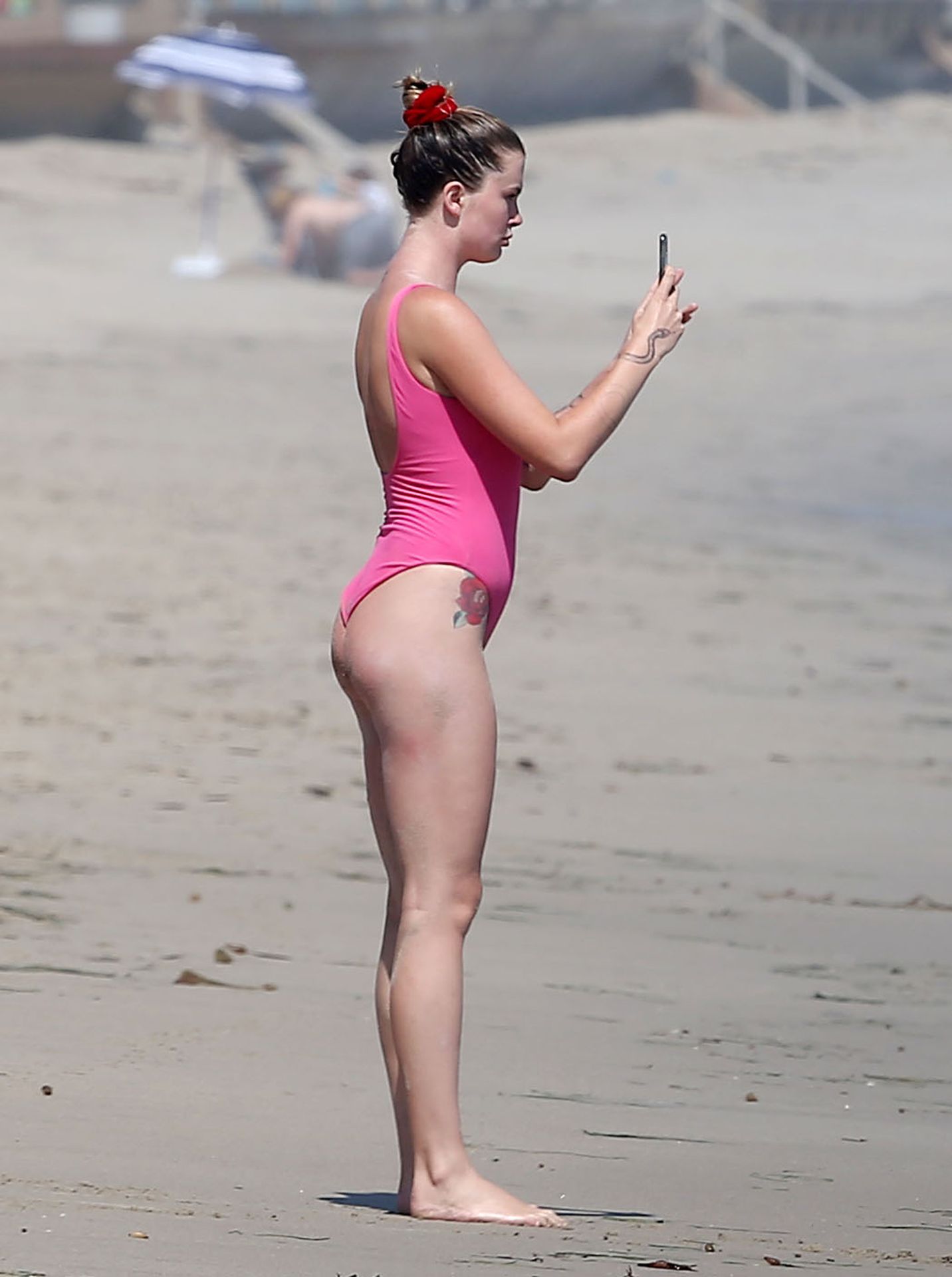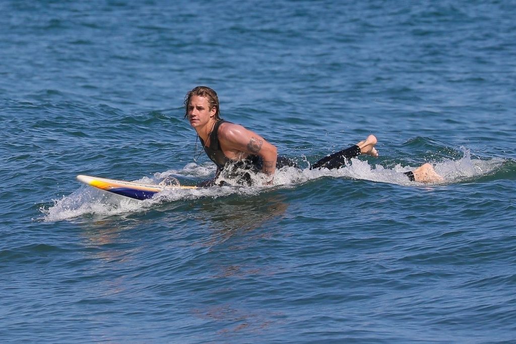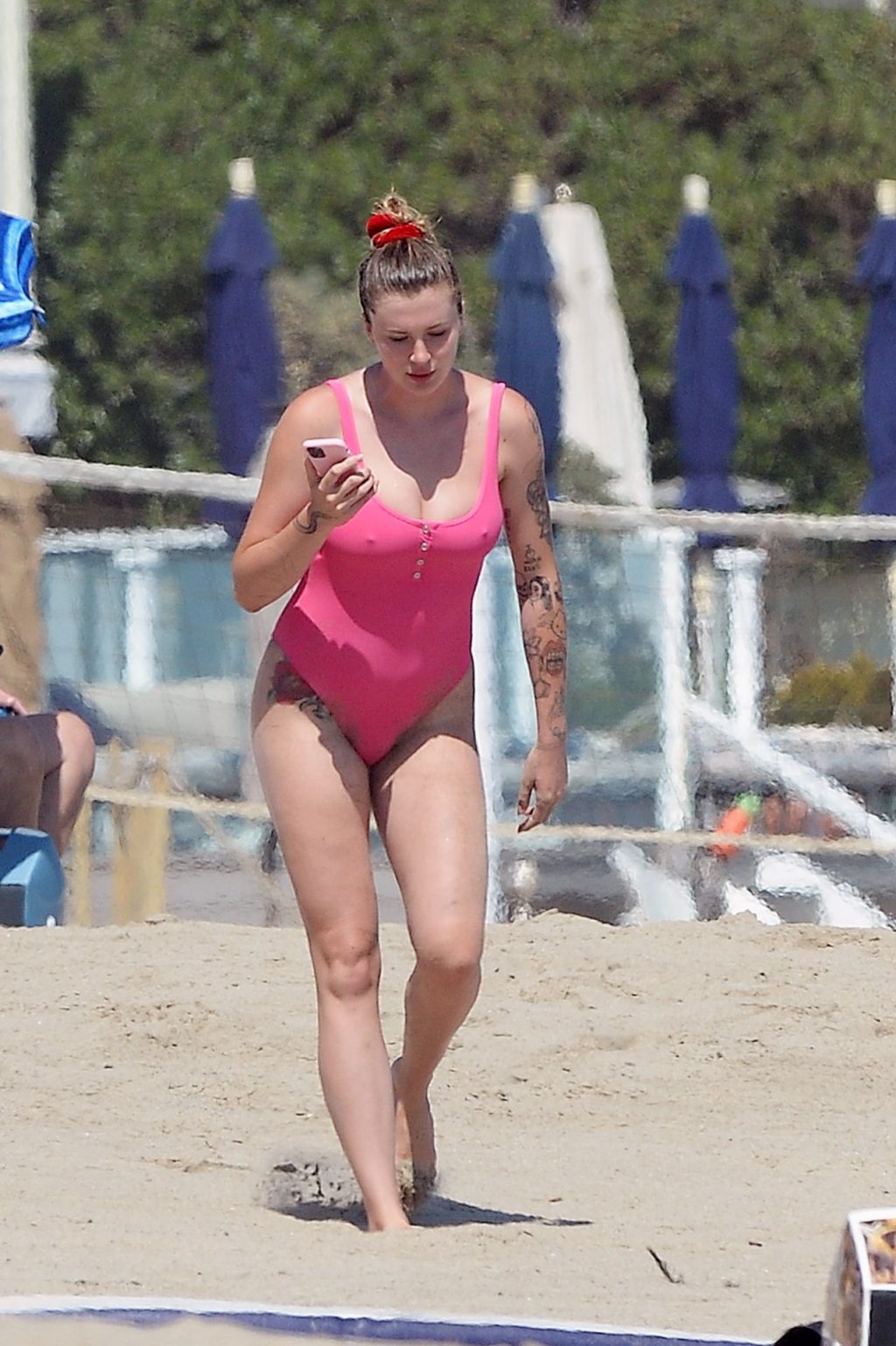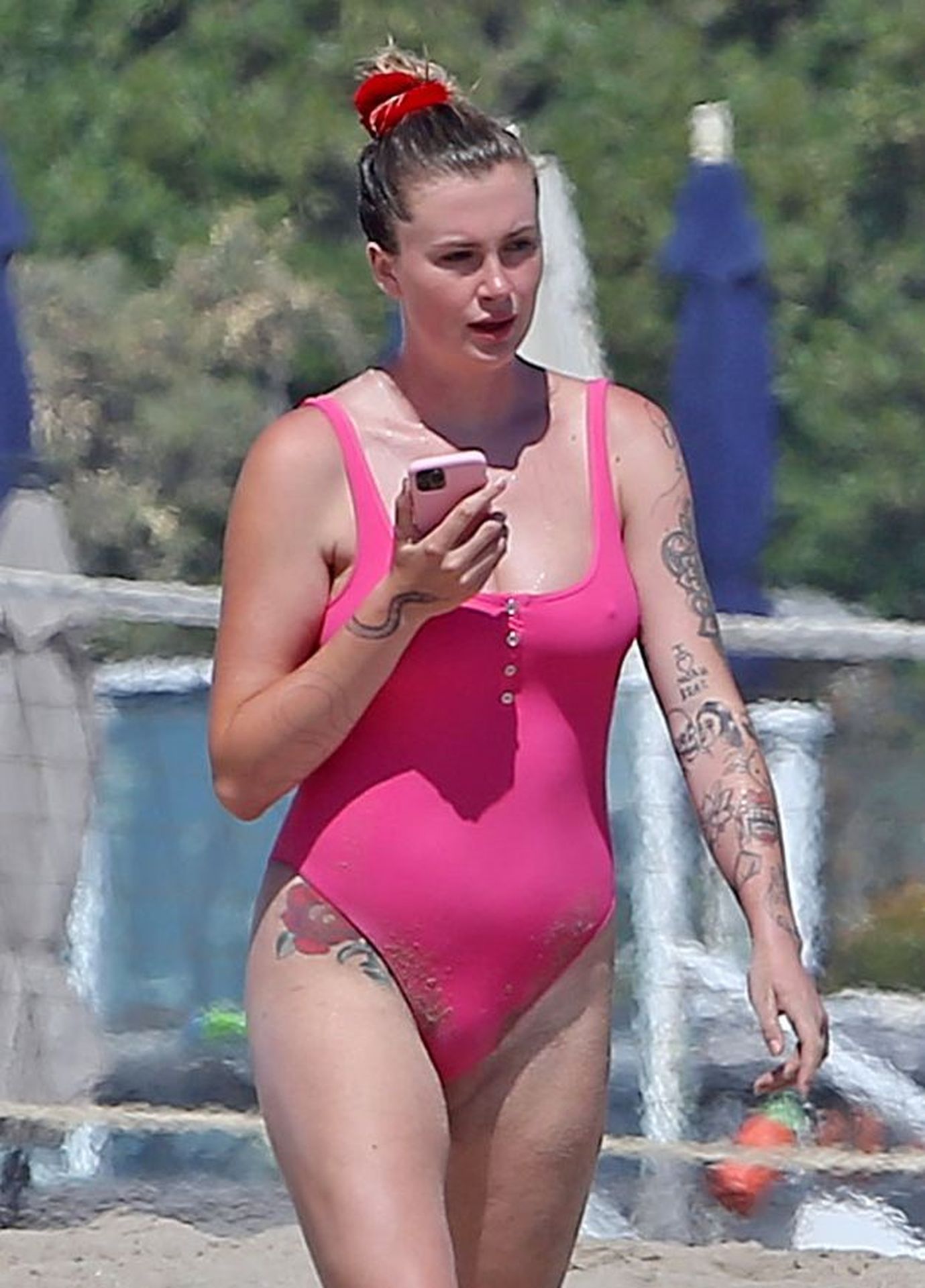 Ireland Baldwin est photographiée en train de profiter d’une journée à la plage, le 20/07/2020. Le mannequin de 24 ans s’est jetée à l’eau pour une baignade dans un maillot une pièce rose bubblegum. On la voit regarder son petit ami Corey Harper surfer à Malibu.