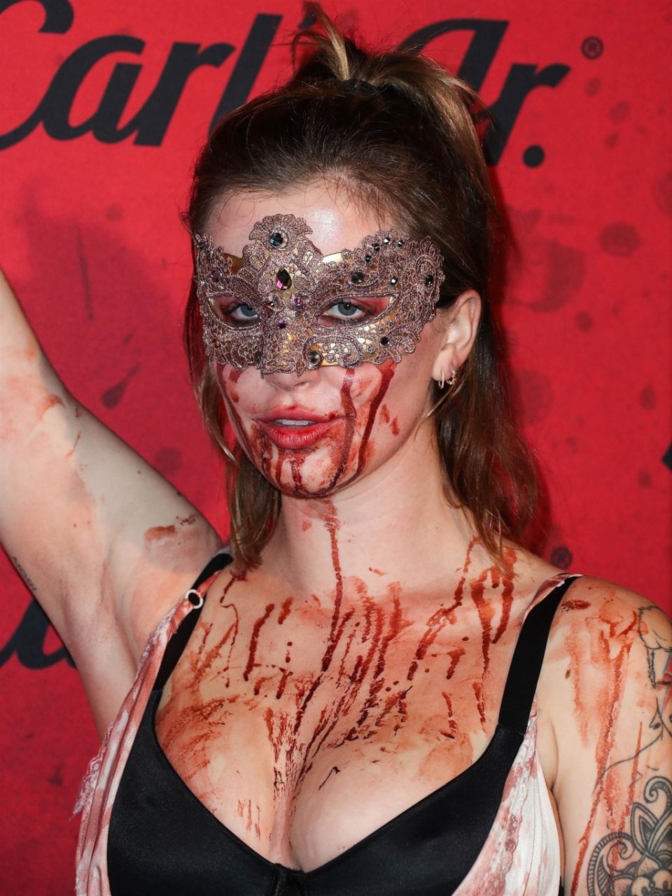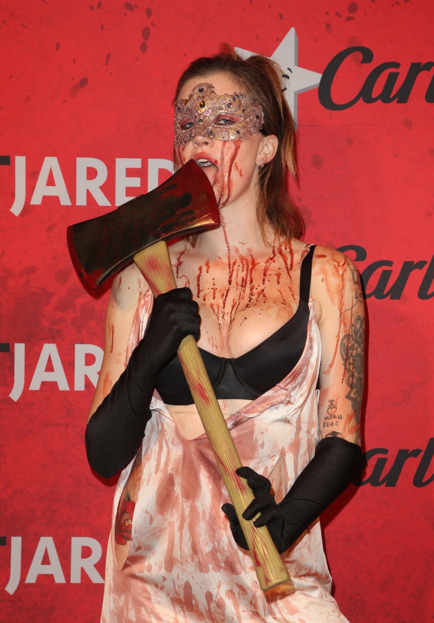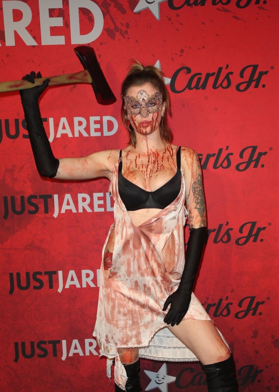 Model Ireland Baldwin a eu un problème de garde-robe (glissement de chatte) lors de la 7e fête annuelle d’Halloween de Just Jared aux Goya Studios à Los Angeles, le 27/10/2018. C’est le bon trou !