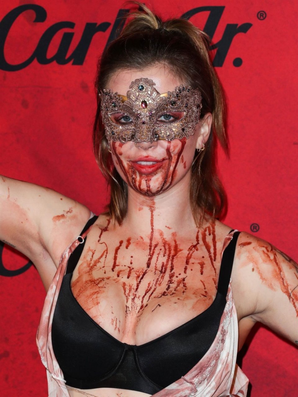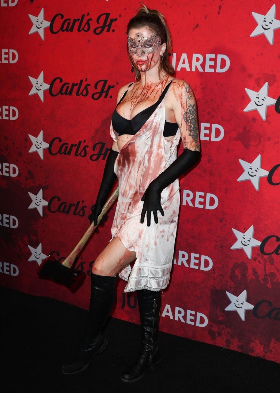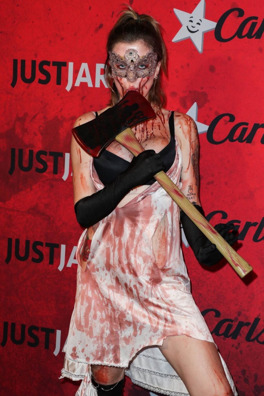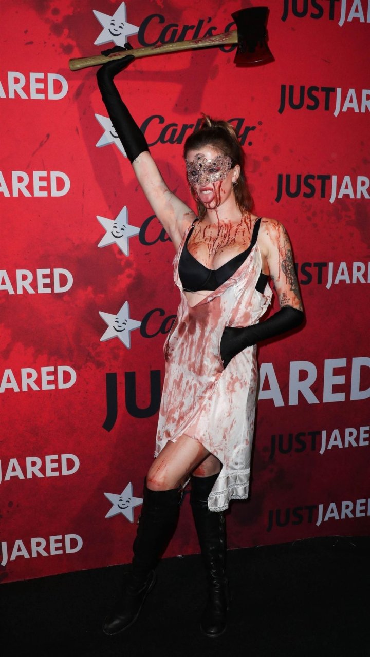 Model Ireland Baldwin a eu un problème de garde-robe (glissement de chatte) lors de la 7e fête annuelle d’Halloween de Just Jared aux Goya Studios à Los Angeles, le 27/10/2018. C’est le bon trou !