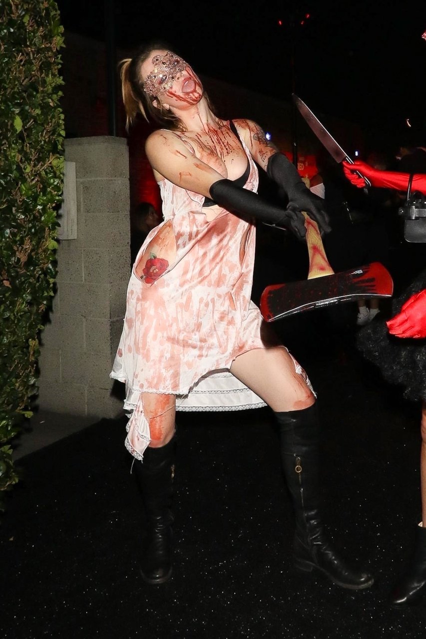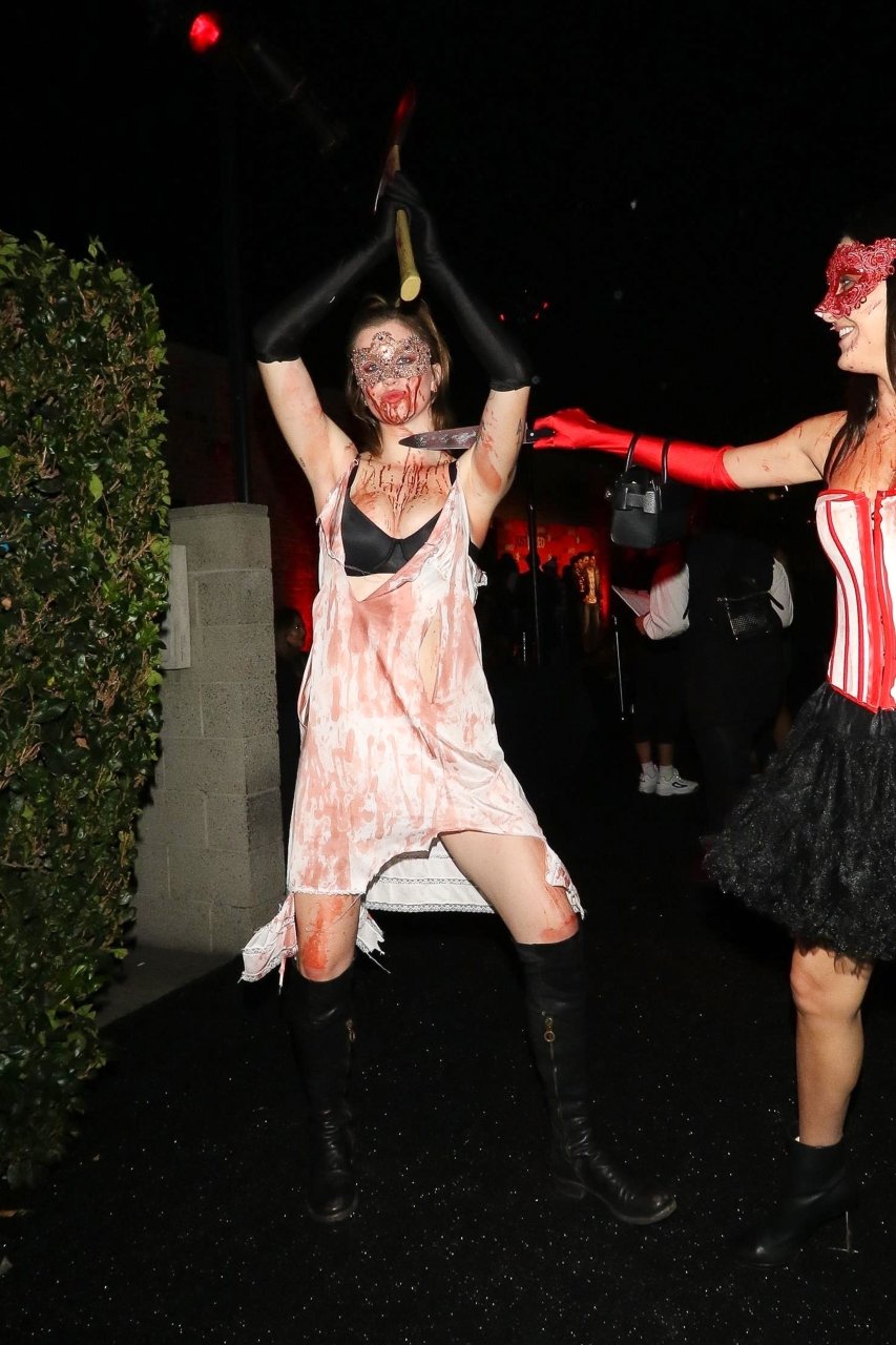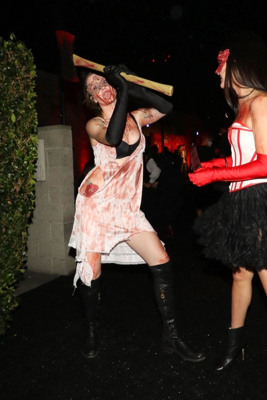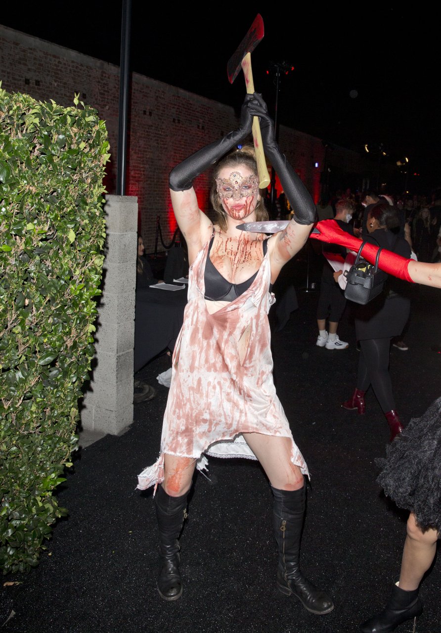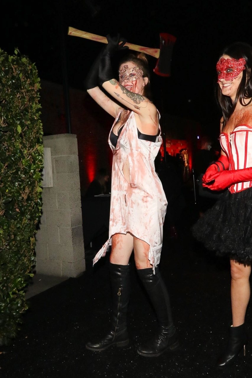 Le mannequin Ireland Baldwin a été vu arrivant à la fête d’Halloween Just Jared à West Hollywood, le 28/10/2018. Ireland était une meurtrière sanguinaire à la hache pour Halloween.