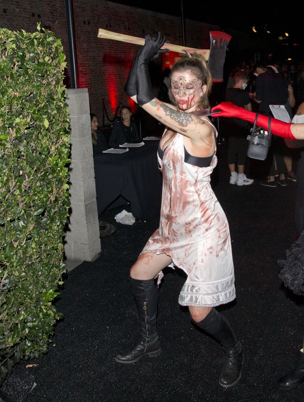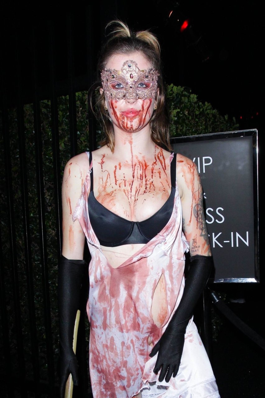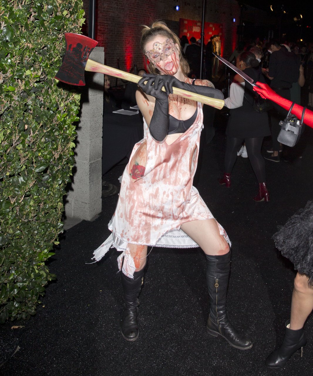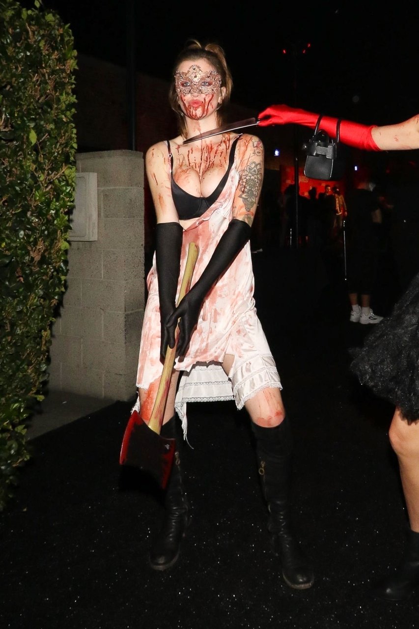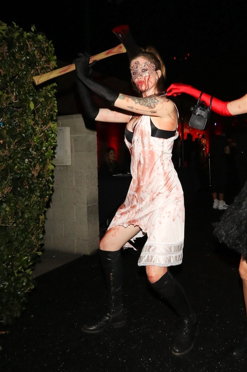 Le mannequin Ireland Baldwin a été vu arrivant à la fête d’Halloween Just Jared à West Hollywood, le 28/10/2018. Ireland était une meurtrière sanguinaire à la hache pour Halloween.
