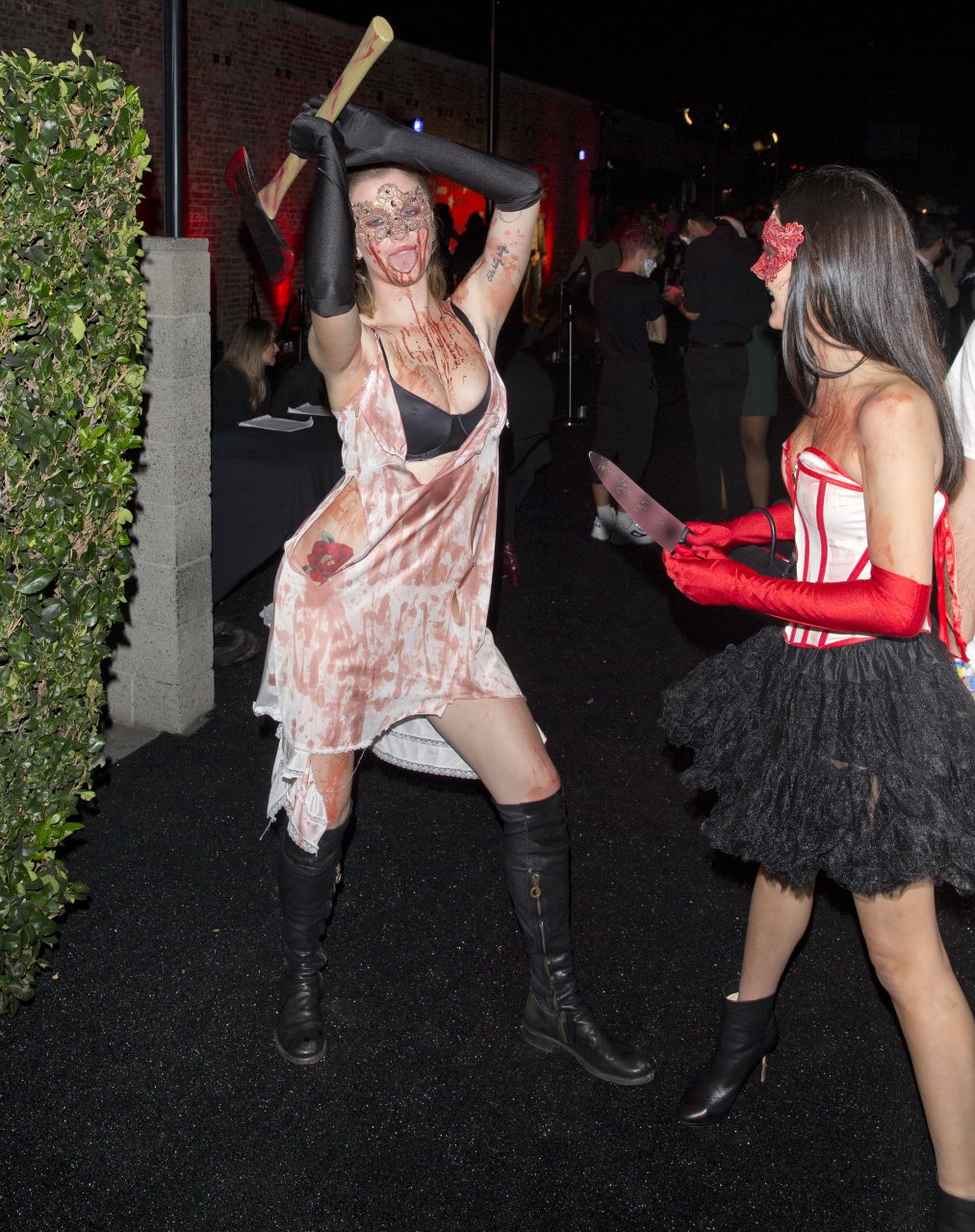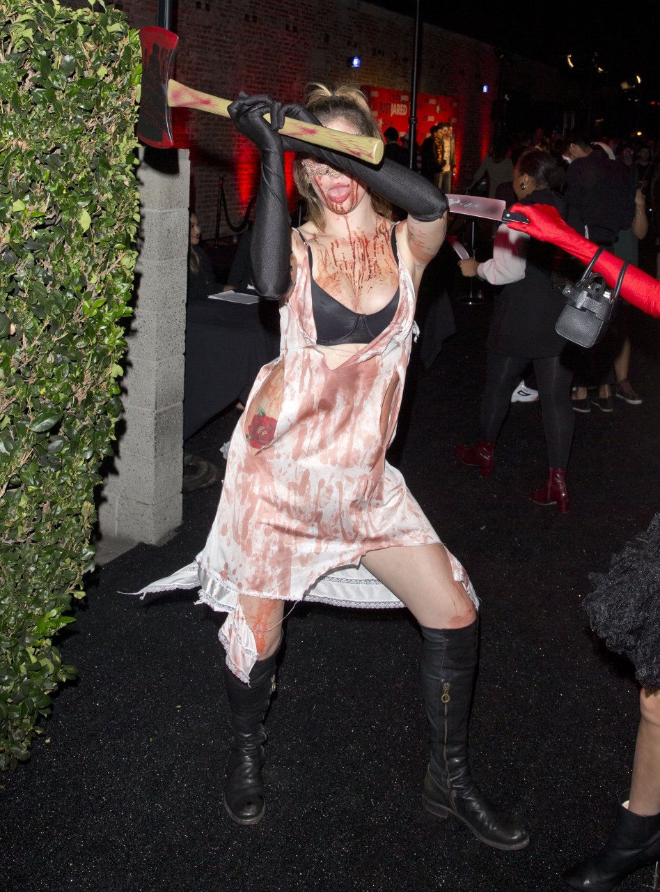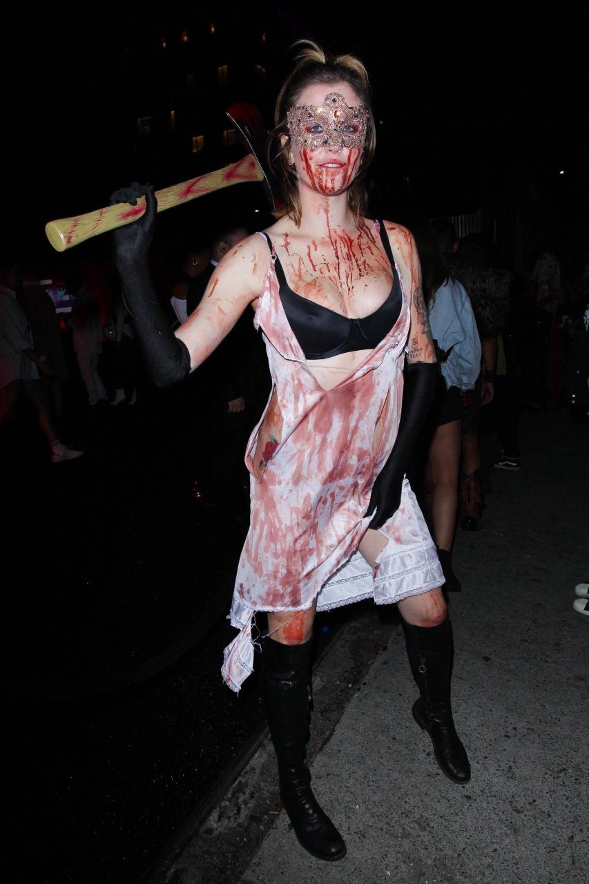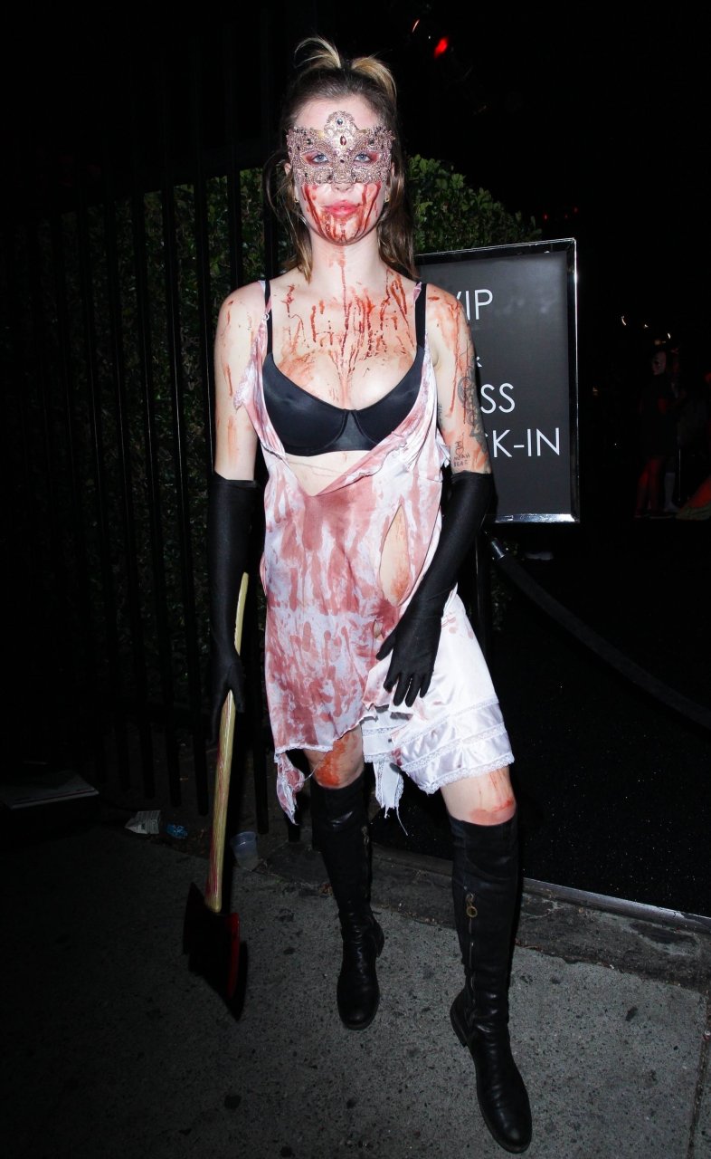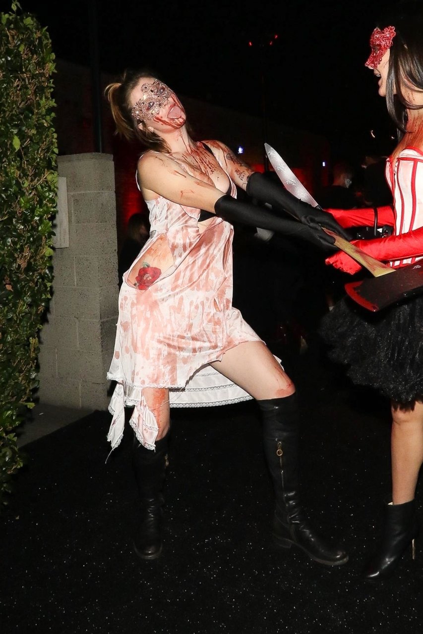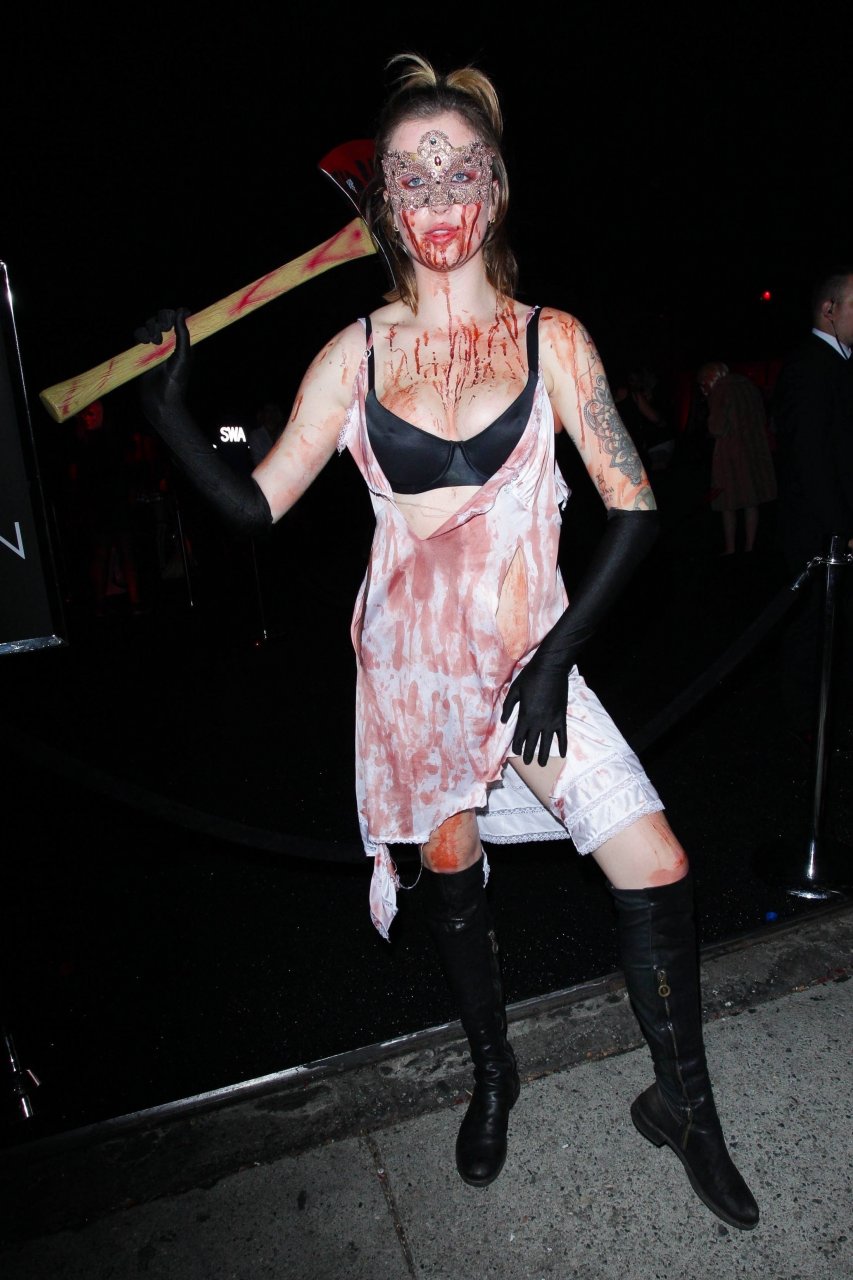 Le mannequin Ireland Baldwin a été vu arrivant à la fête d’Halloween Just Jared à West Hollywood, le 28/10/2018. Ireland était une meurtrière sanguinaire à la hache pour Halloween.