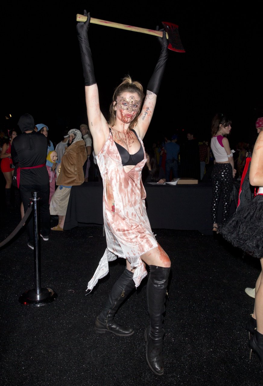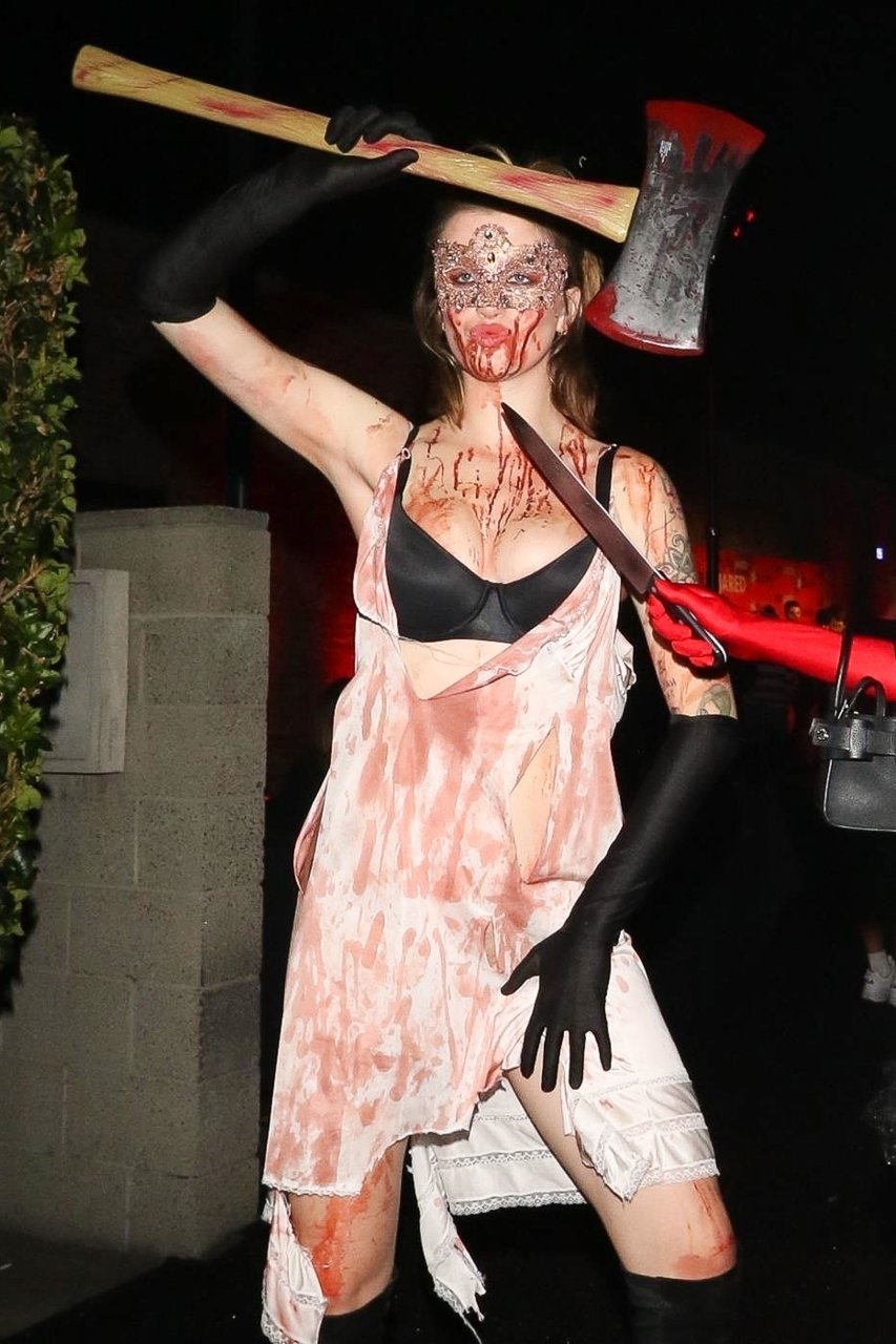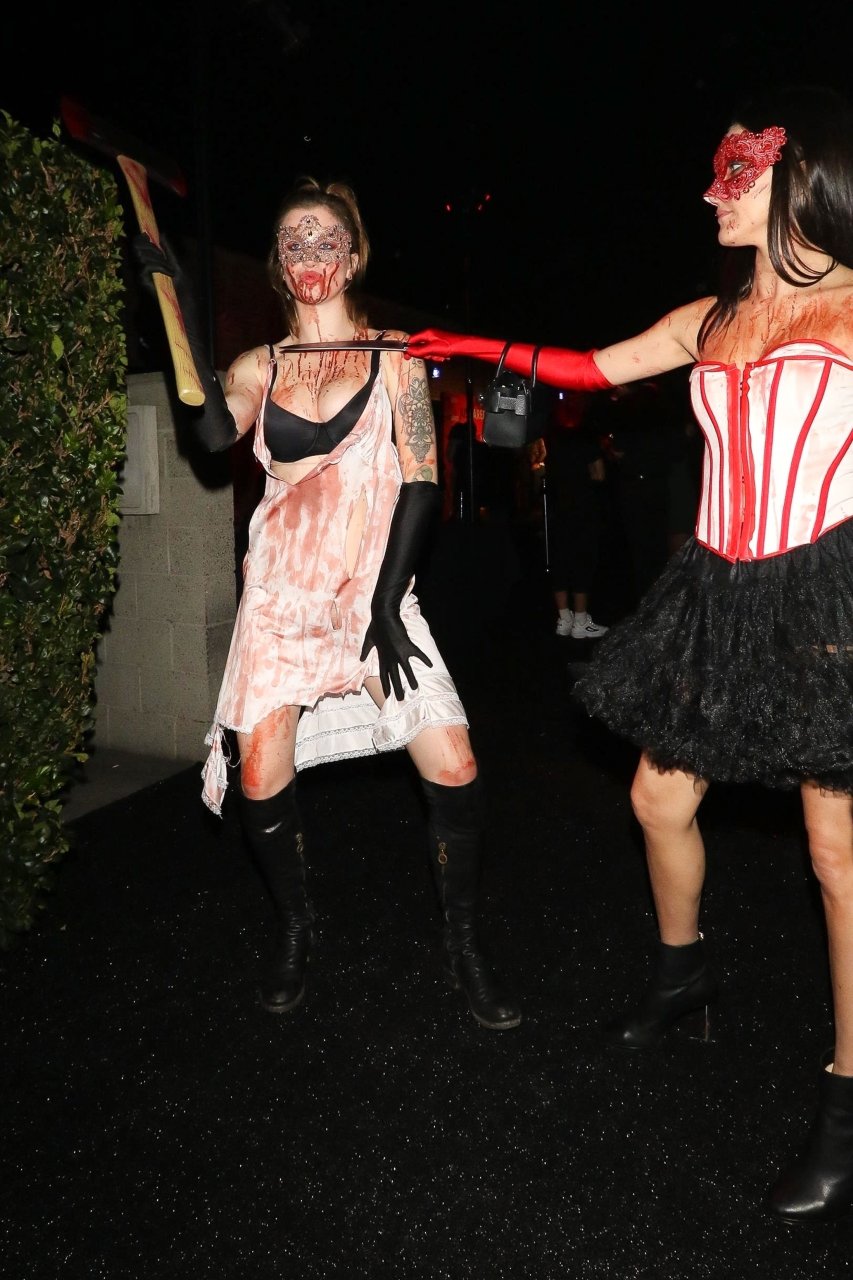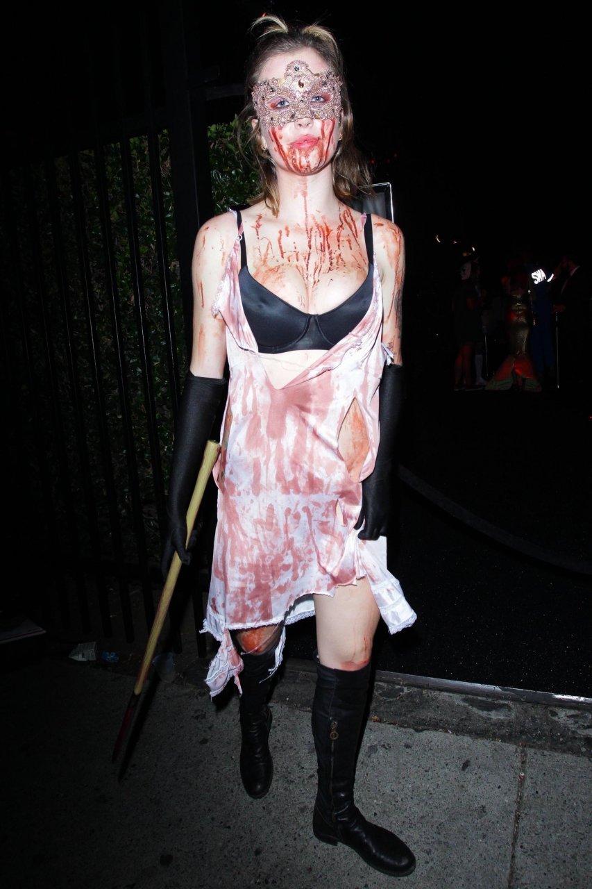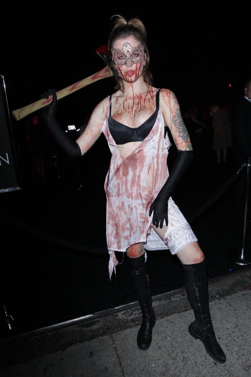 Le mannequin Ireland Baldwin a été vu arrivant à la fête d’Halloween Just Jared à West Hollywood, le 28/10/2018. Ireland était une meurtrière sanguinaire à la hache pour Halloween.