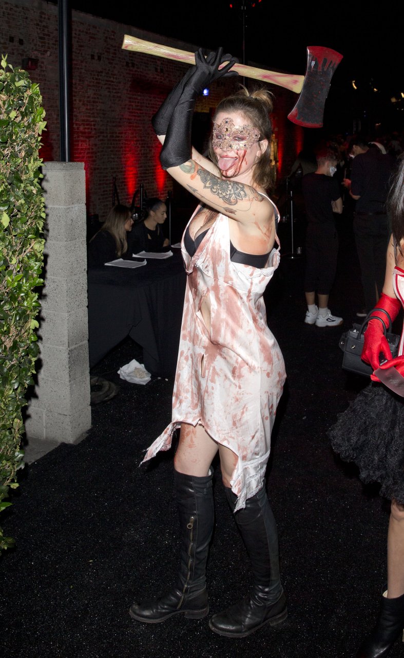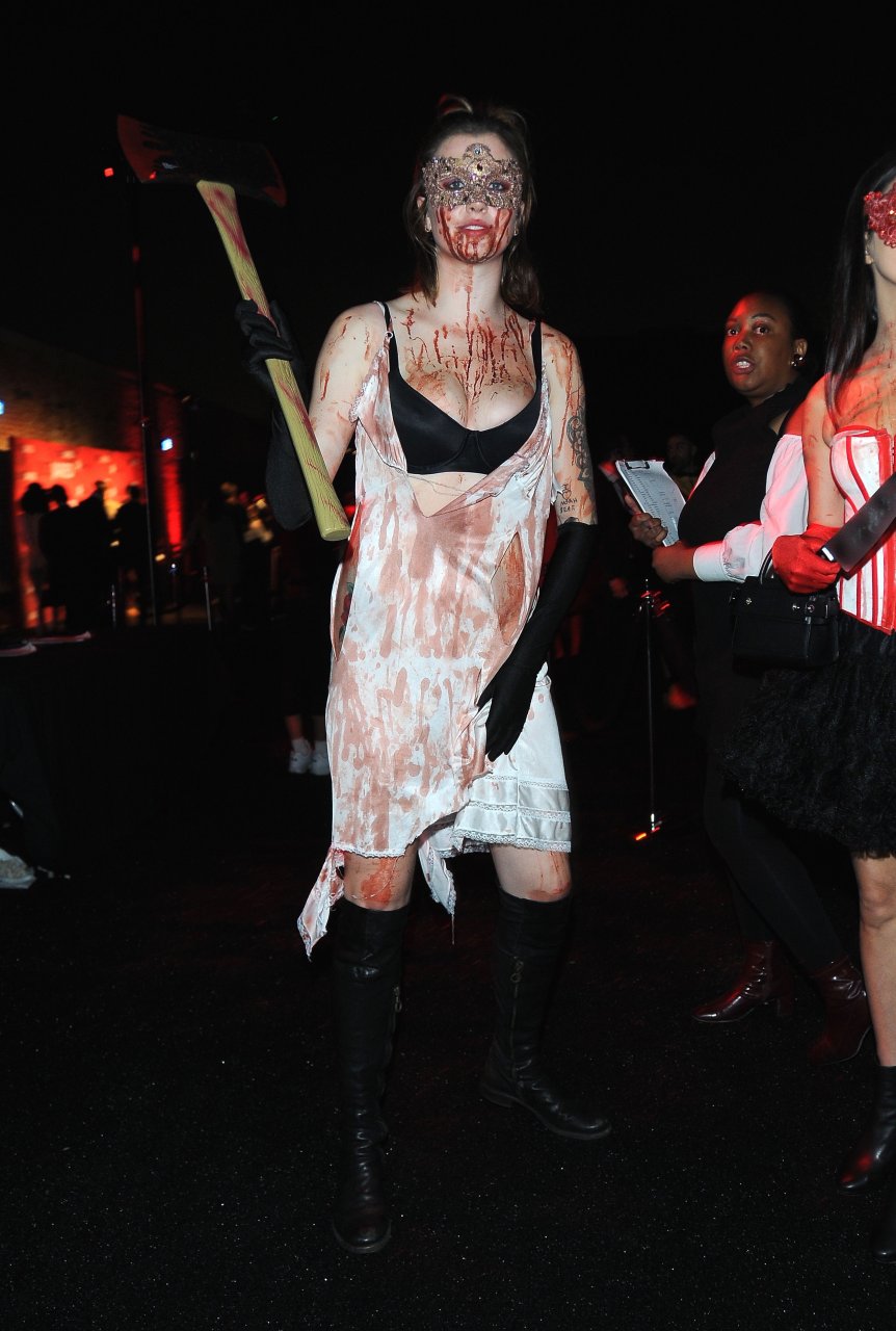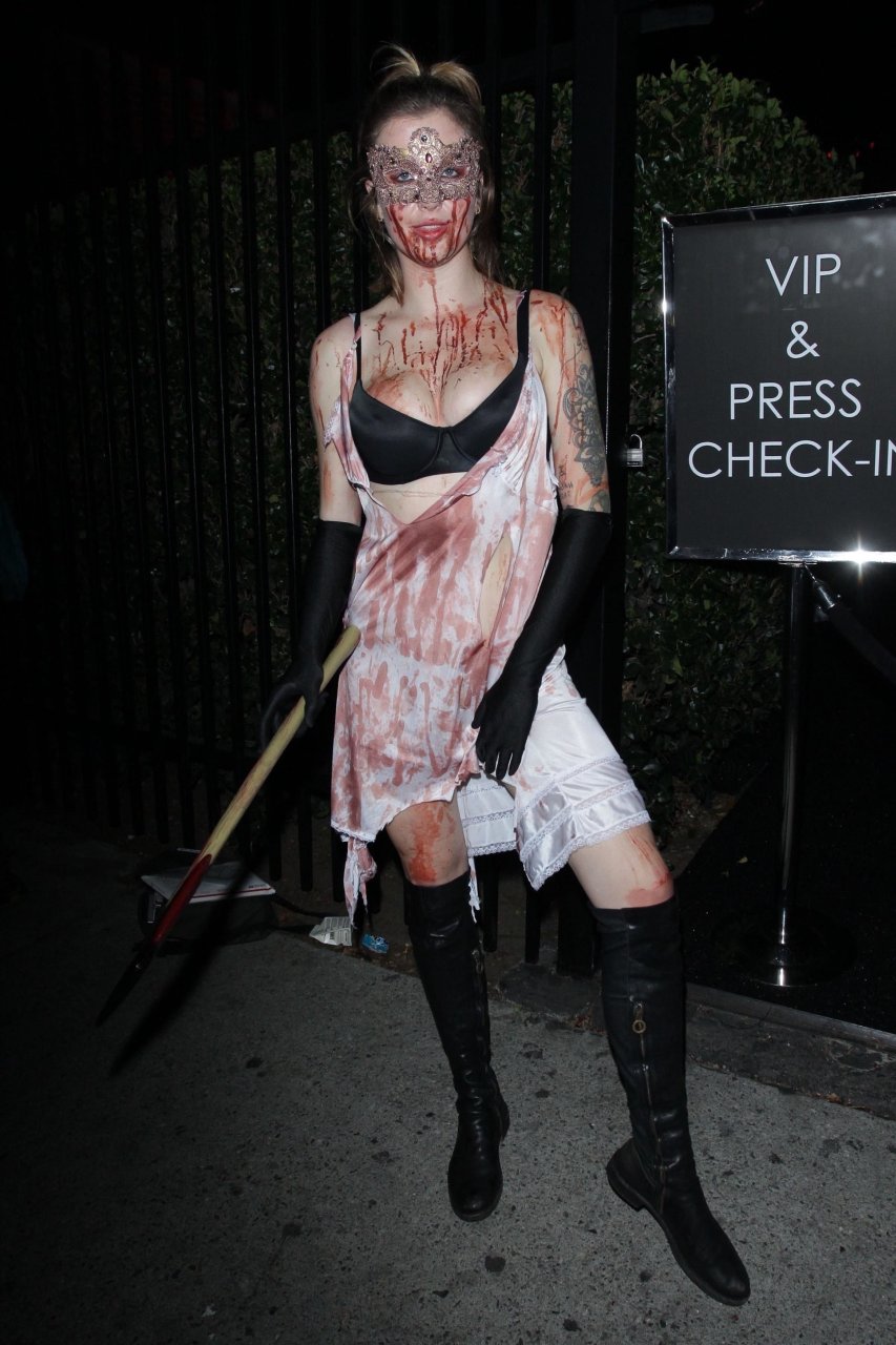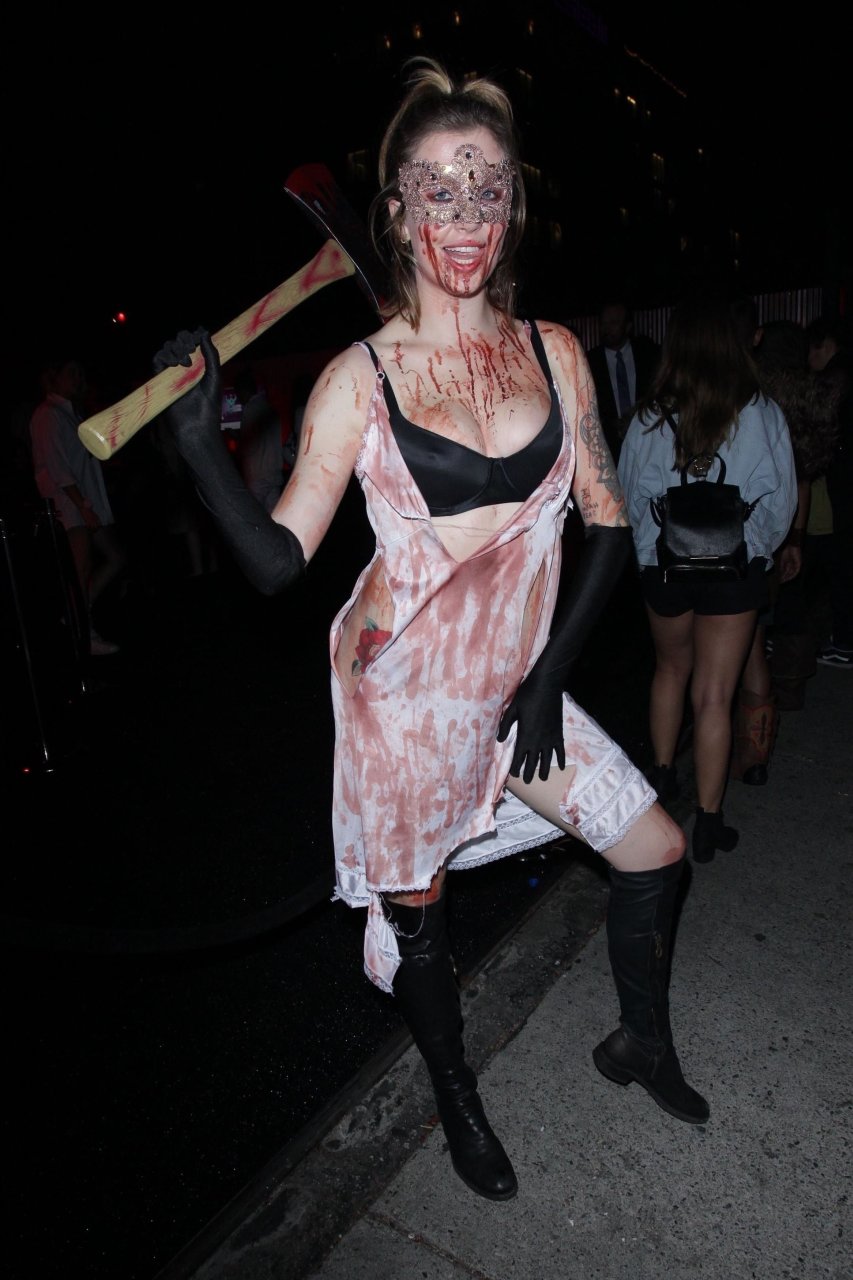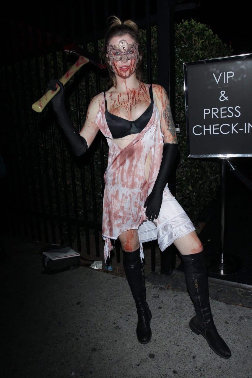 Le mannequin Ireland Baldwin a été vu arrivant à la fête d’Halloween Just Jared à West Hollywood, le 28/10/2018. Ireland était une meurtrière sanguinaire à la hache pour Halloween.