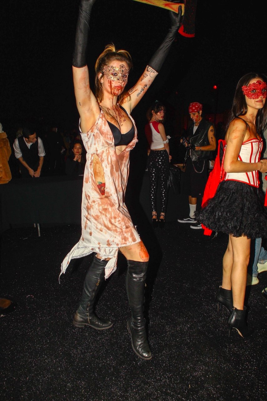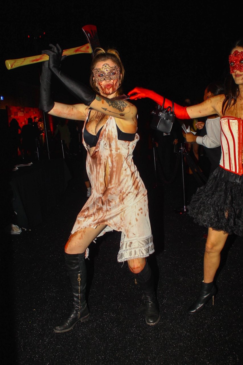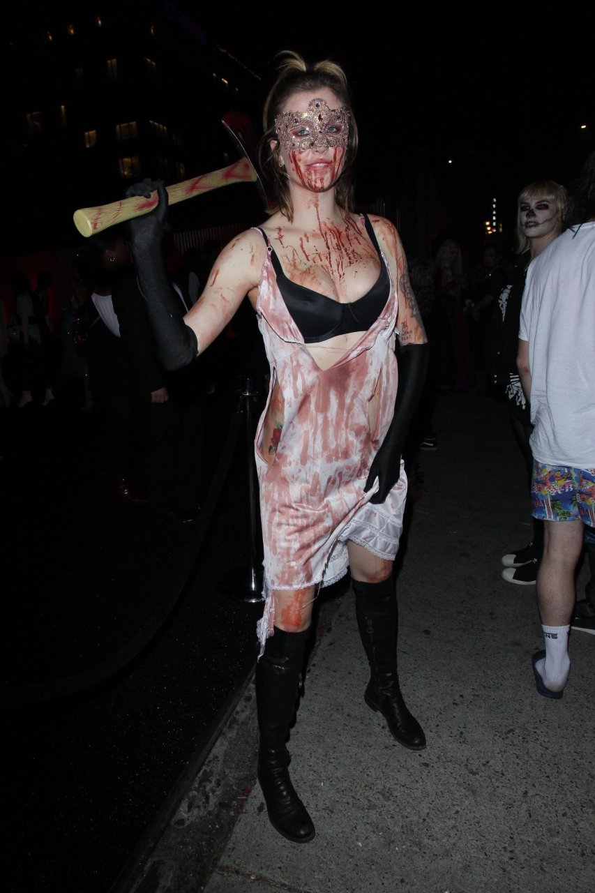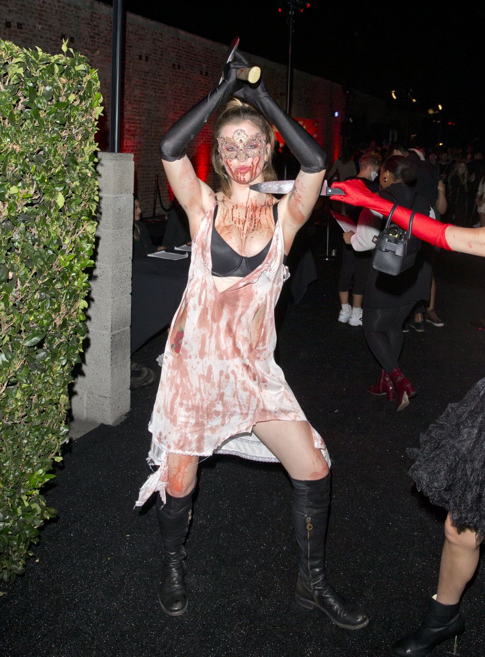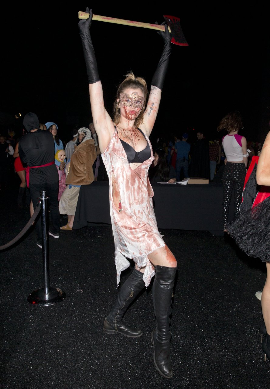 Le mannequin Ireland Baldwin a été vu arrivant à la fête d’Halloween Just Jared à West Hollywood, le 28/10/2018. Ireland était une meurtrière sanguinaire à la hache pour Halloween.