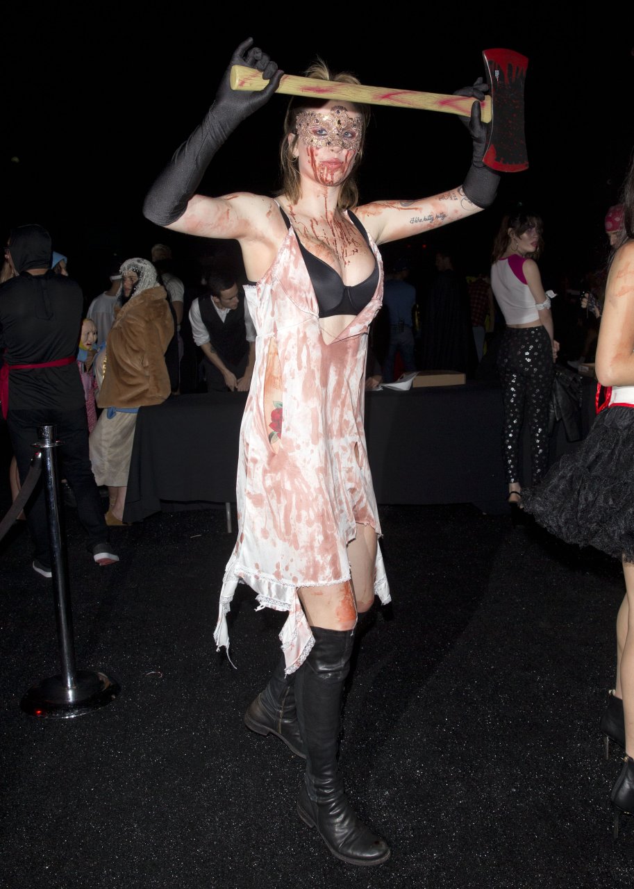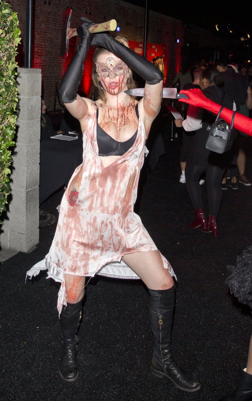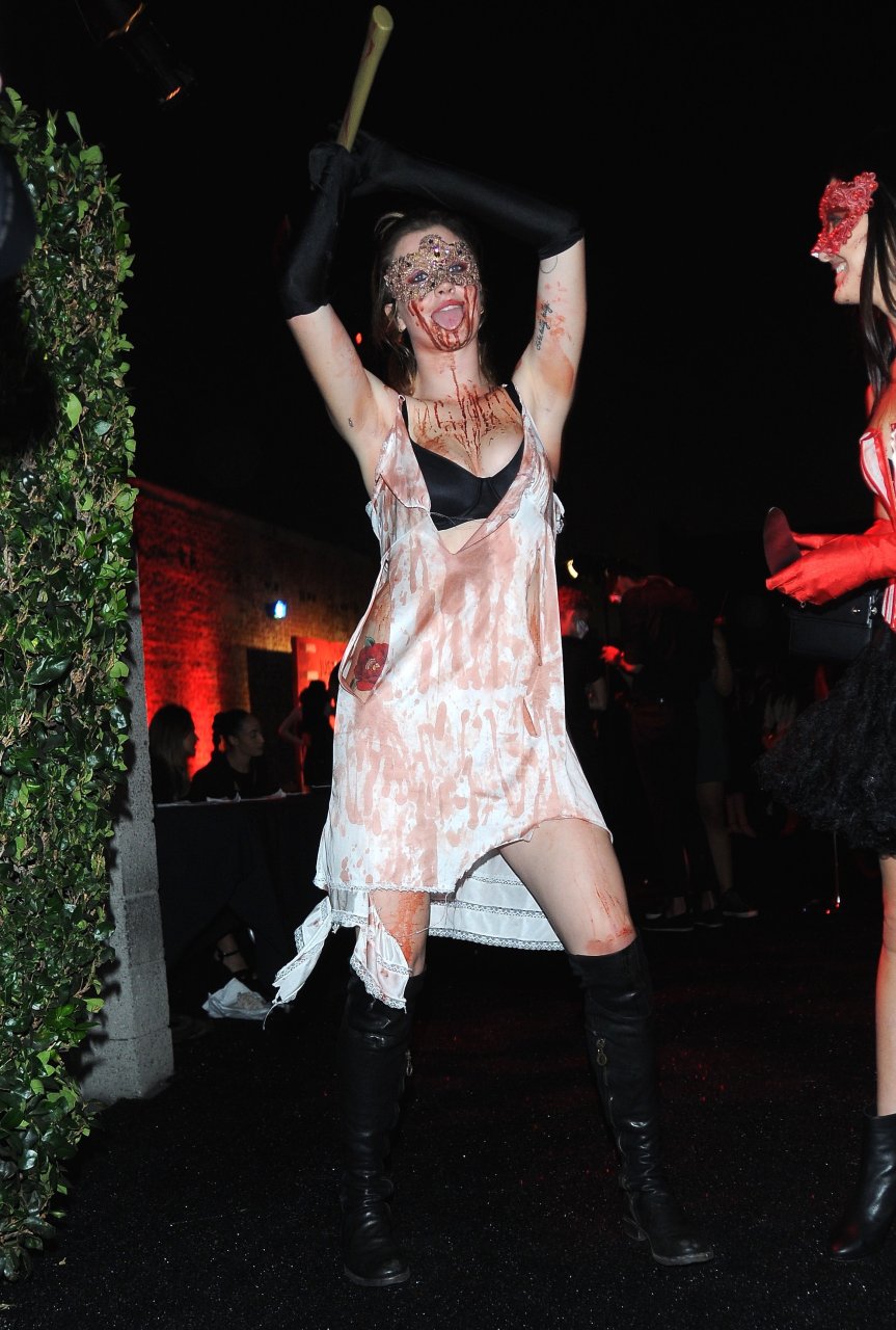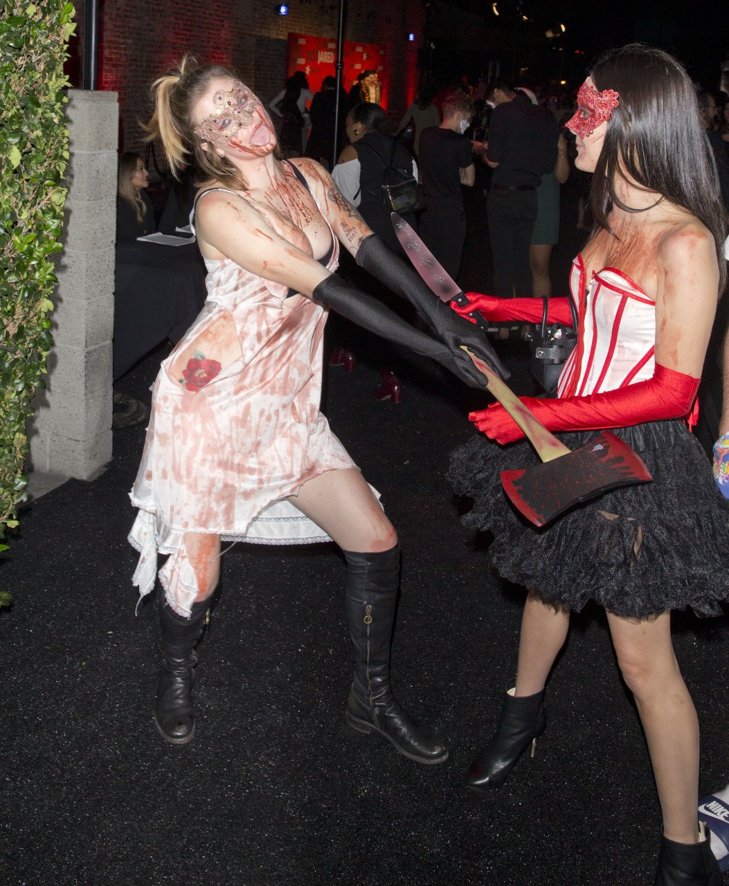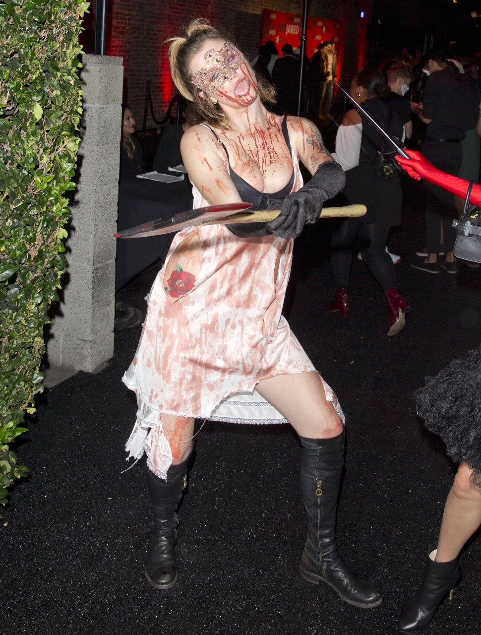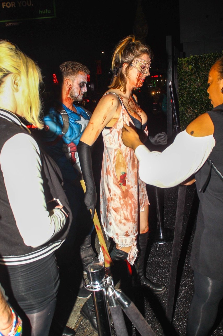 Le mannequin Ireland Baldwin a été vu arrivant à la fête d’Halloween Just Jared à West Hollywood, le 28/10/2018. Ireland était une meurtrière sanguinaire à la hache pour Halloween.