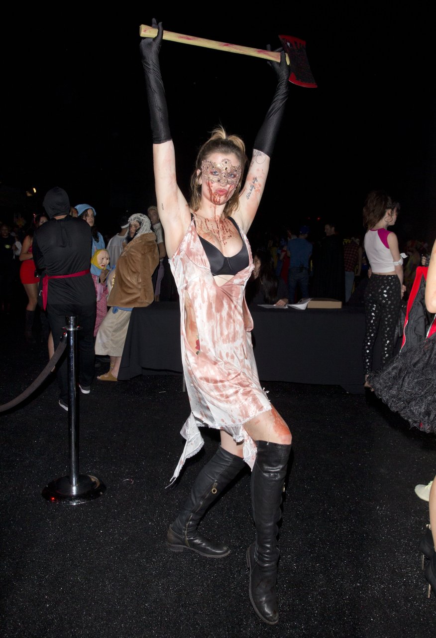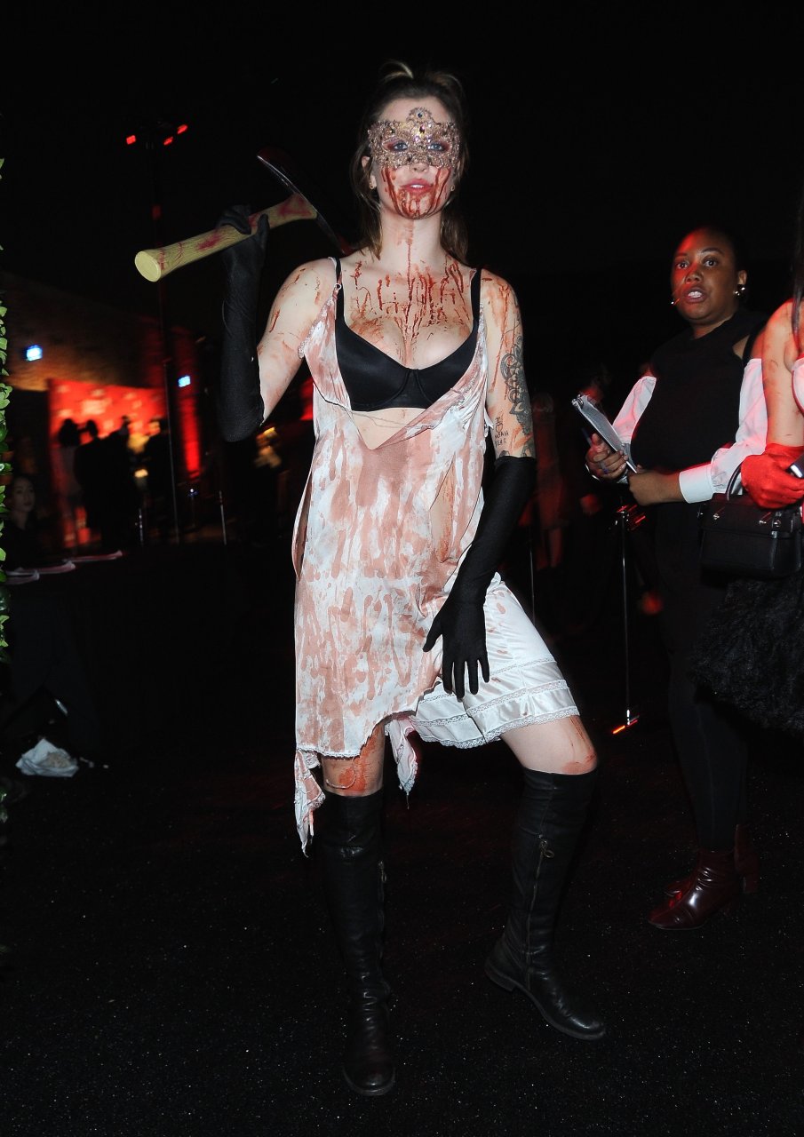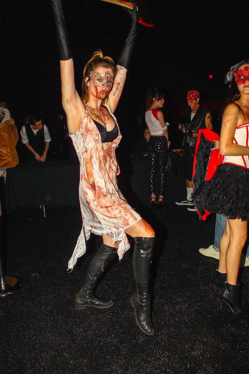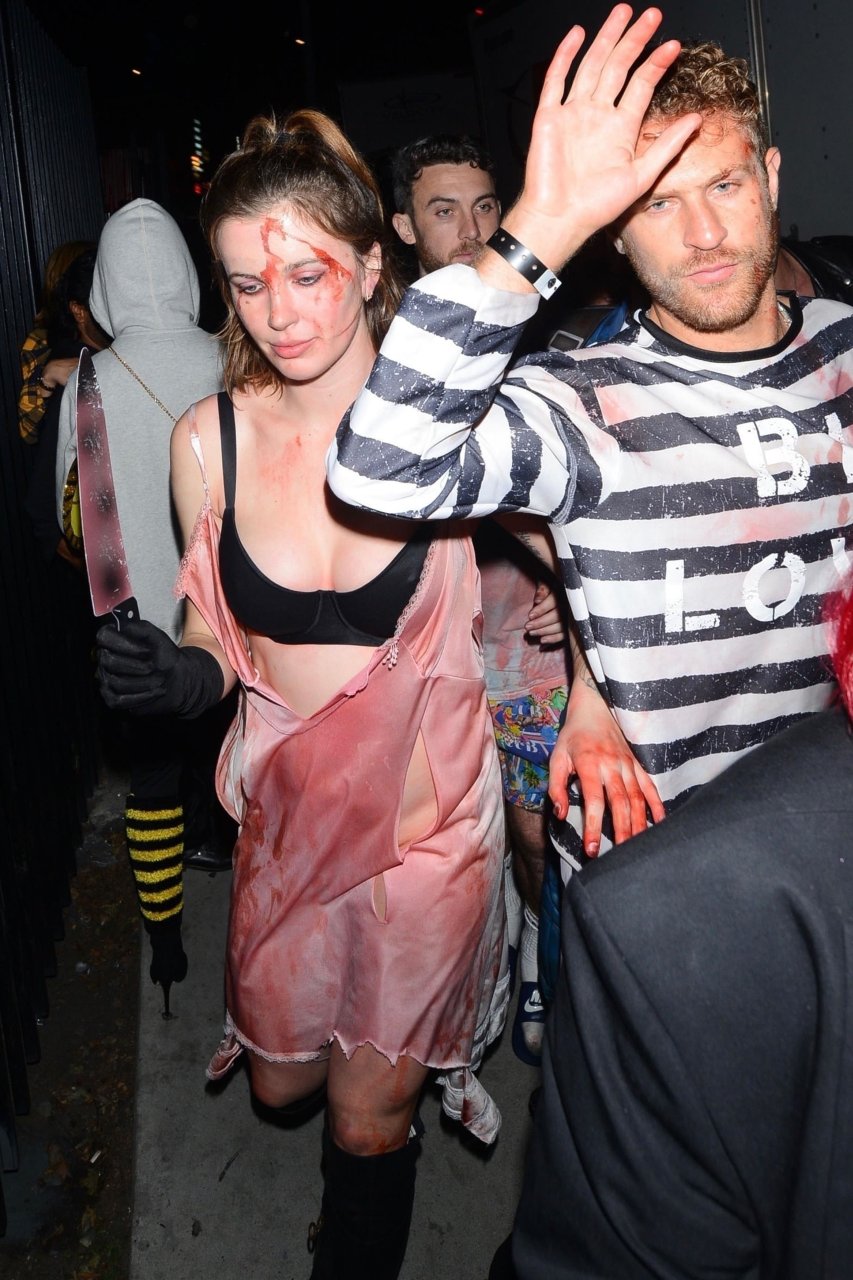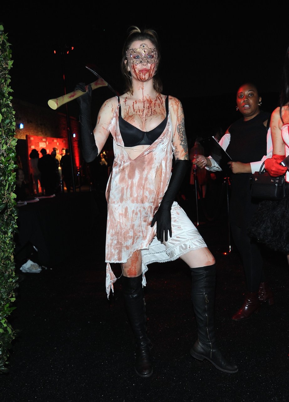 Le mannequin Ireland Baldwin a été vu arrivant à la fête d’Halloween Just Jared à West Hollywood, le 28/10/2018. Ireland était une meurtrière sanguinaire à la hache pour Halloween.