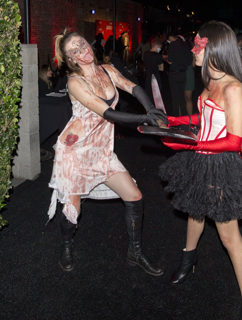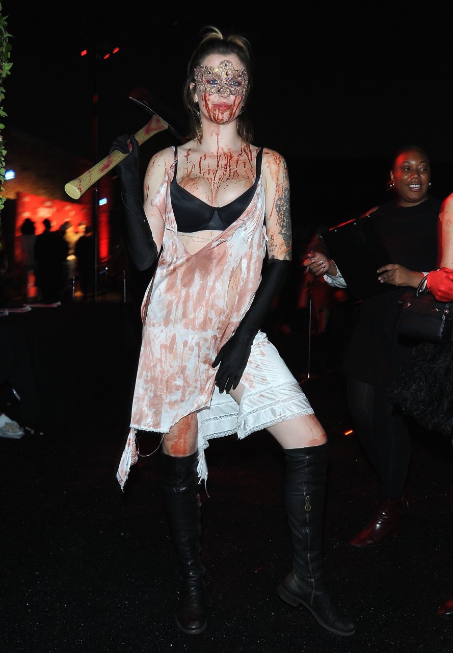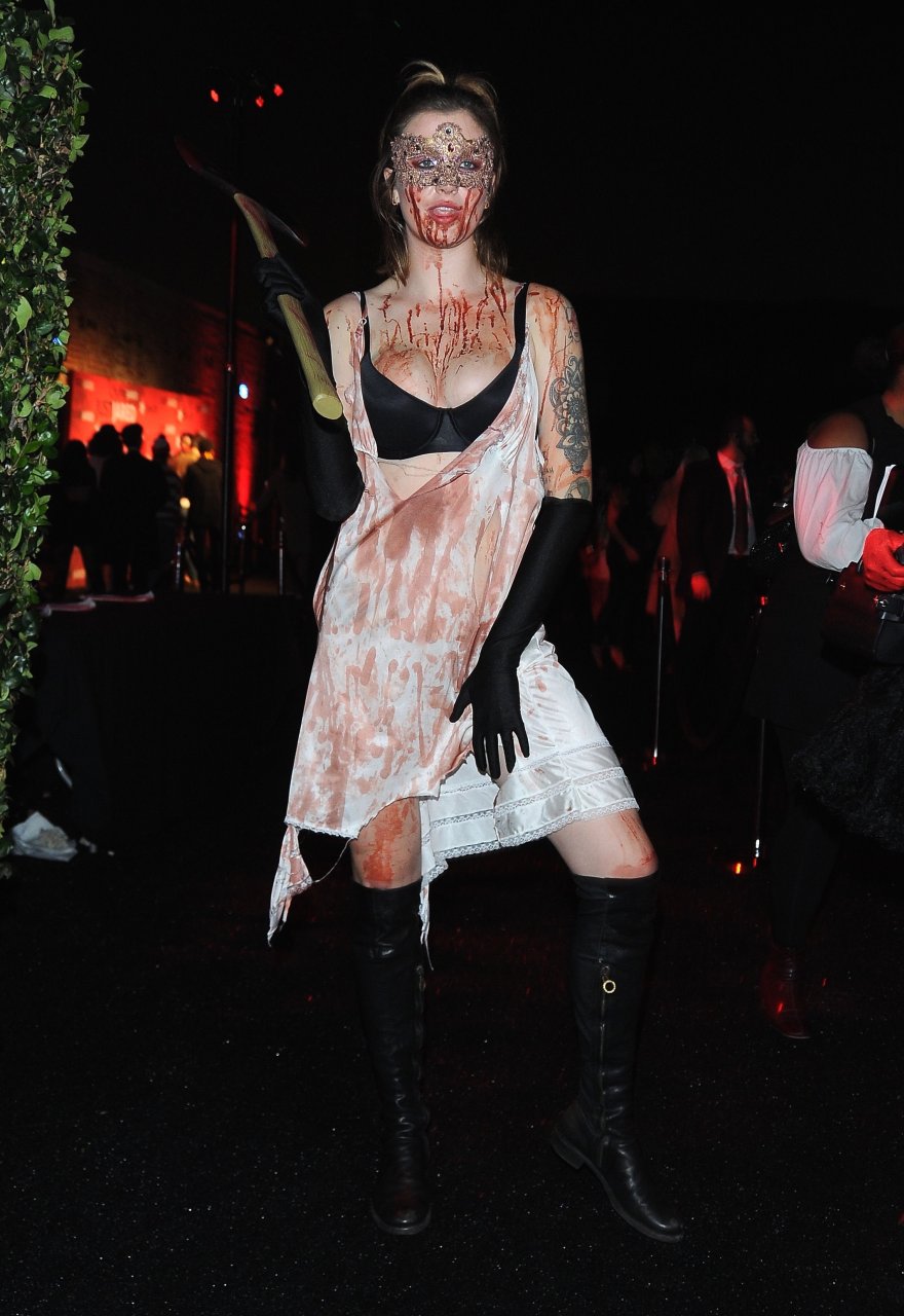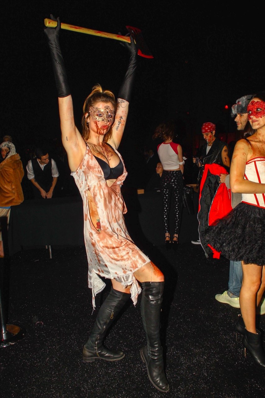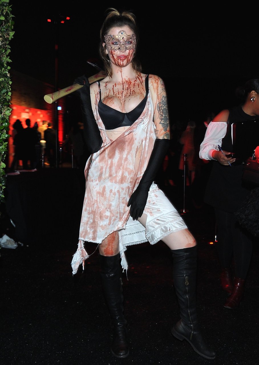 Le mannequin Ireland Baldwin a été vu arrivant à la fête d’Halloween Just Jared à West Hollywood, le 28/10/2018. Ireland était une meurtrière sanguinaire à la hache pour Halloween.