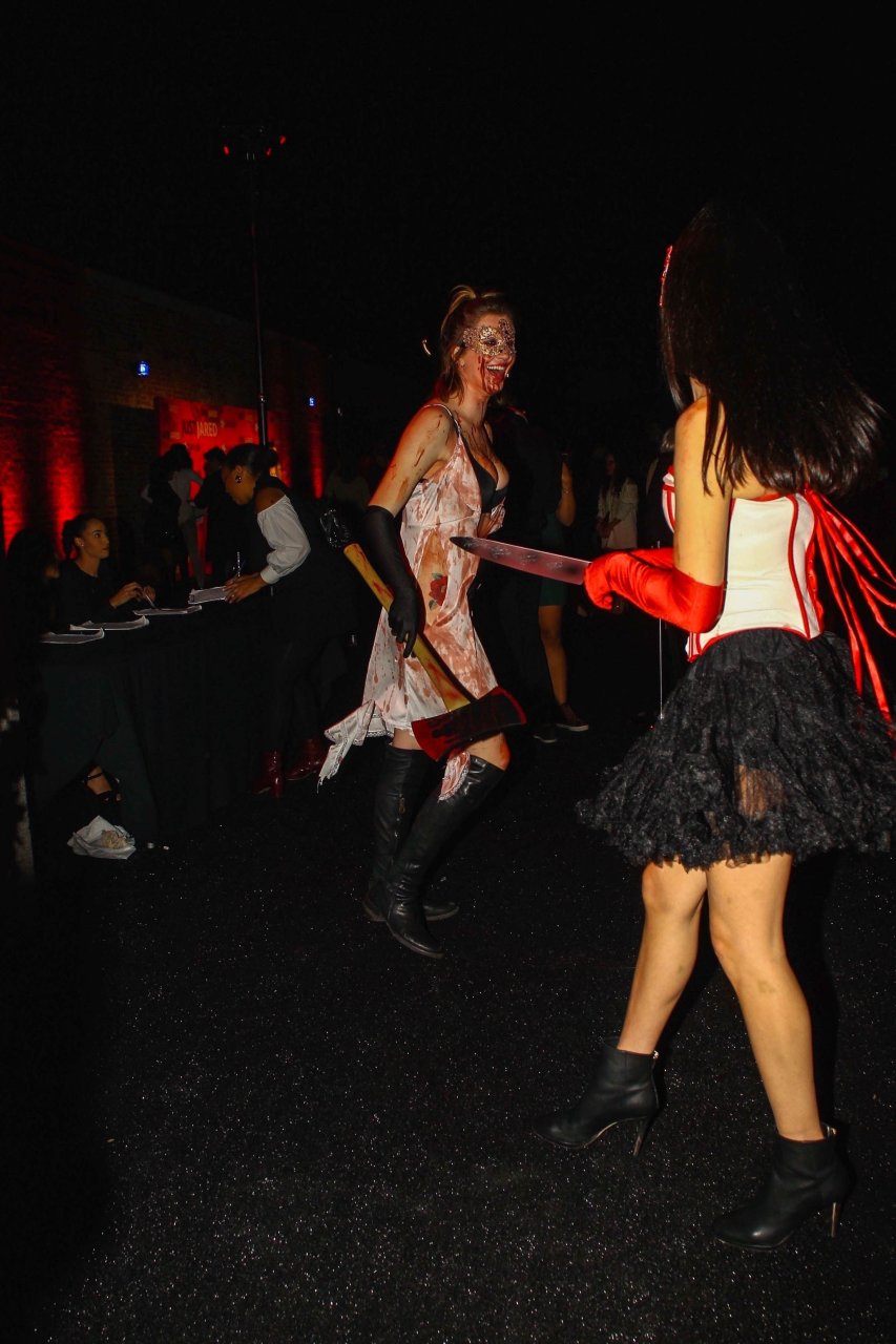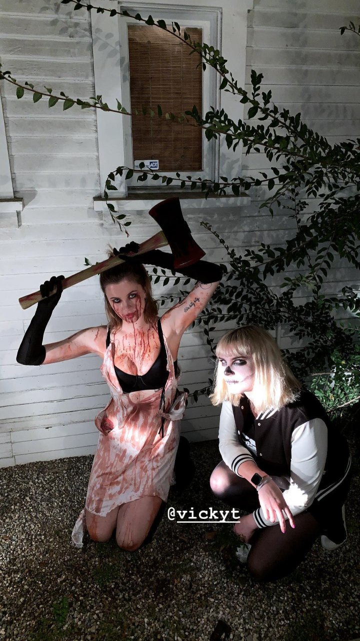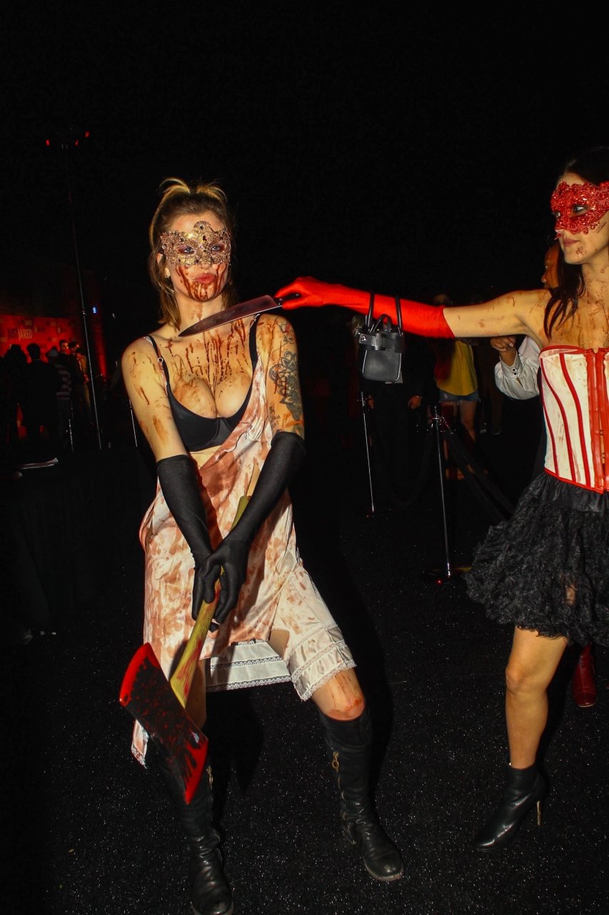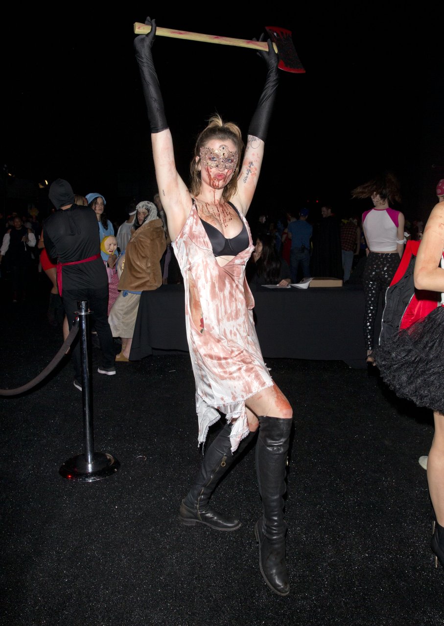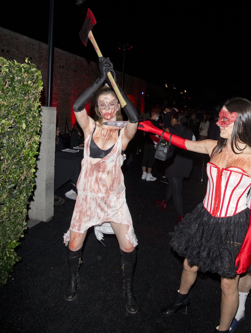Le mannequin Ireland Baldwin a été vu arrivant à la fête d’Halloween Just Jared à West Hollywood, le 28/10/2018. Ireland était une meurtrière sanguinaire à la hache pour Halloween.