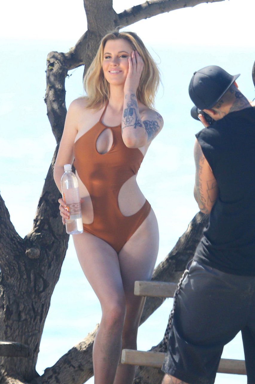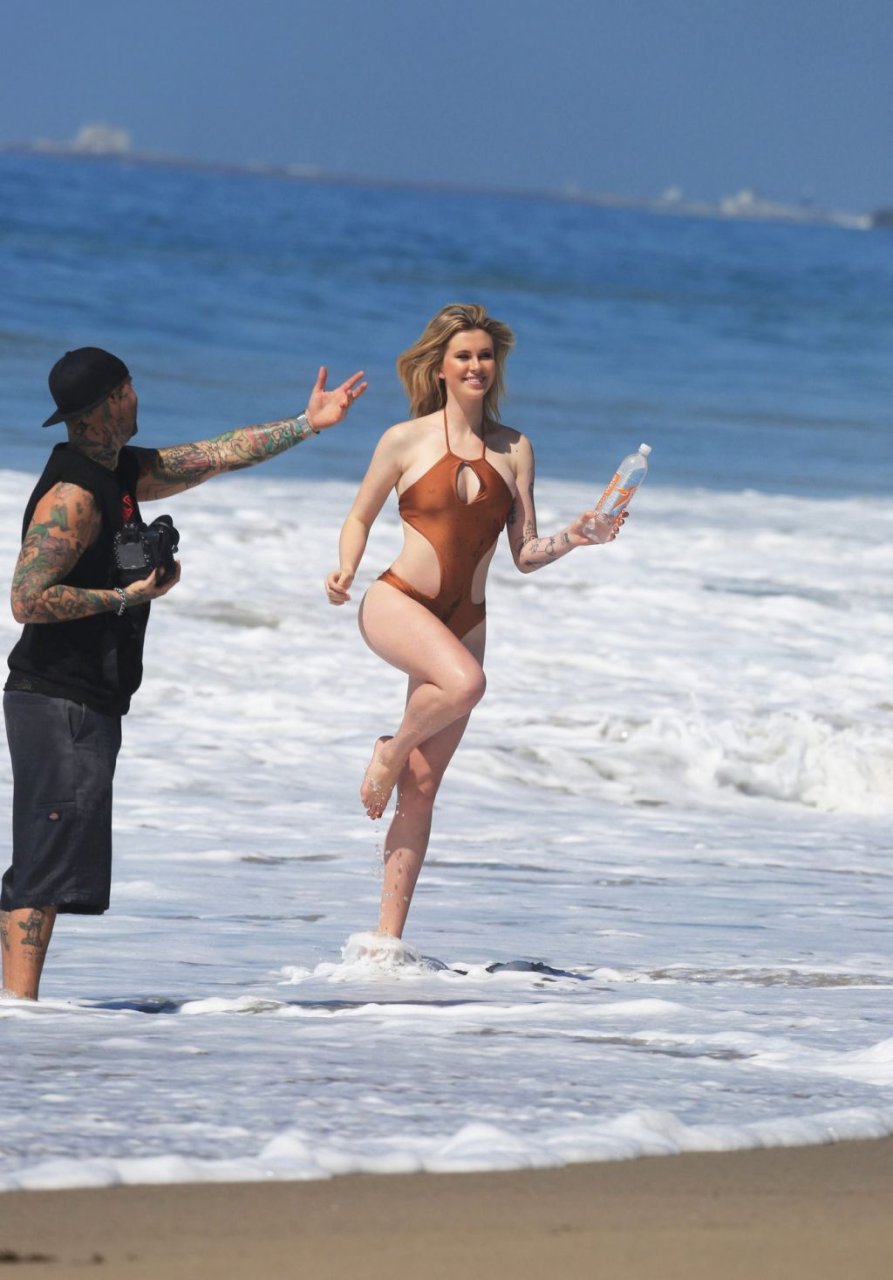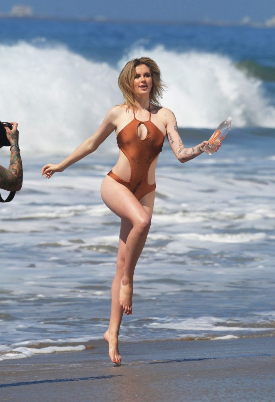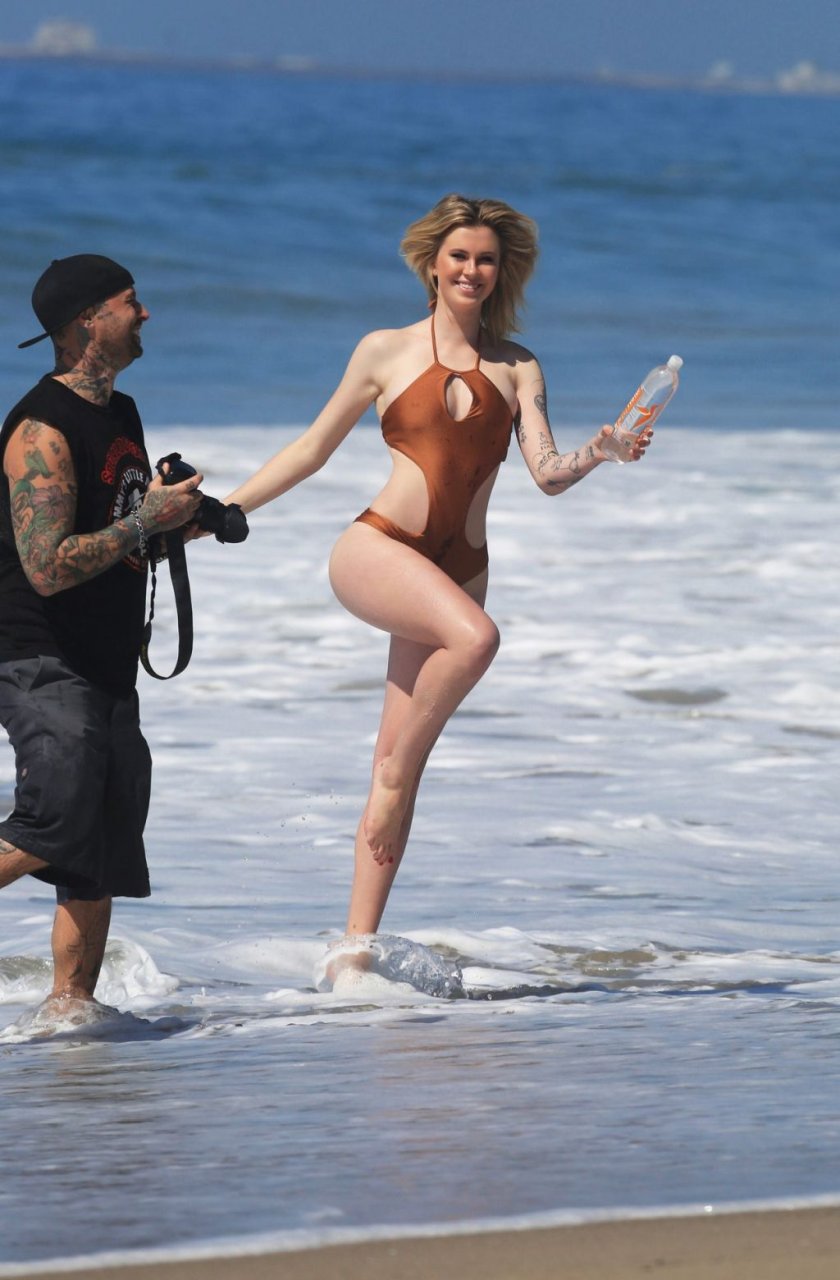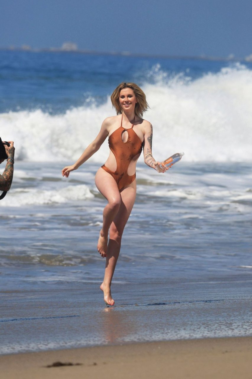 Ireland Baldwin exhibe sa silhouette dans un maillot de bain sexy pour la séance photo à la plage 138 Water afin de promouvoir le lancement de la marque sur Amazon Prime, avec le photographe de mode Malachi Banales à Malibu, le 20/03/2019.