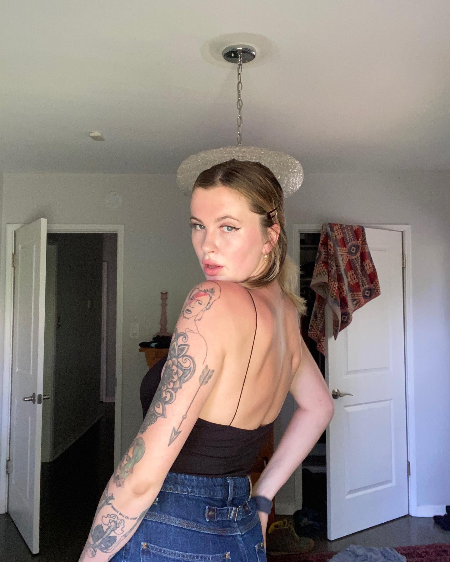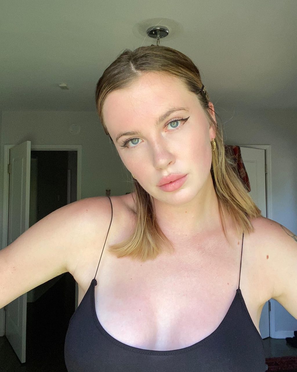 Mannequin plantureuse Ireland Baldwin pose en débardeur noir, offrant aux admirateurs une vue époustouflante de son décolleté – Instagram (mai 2020).