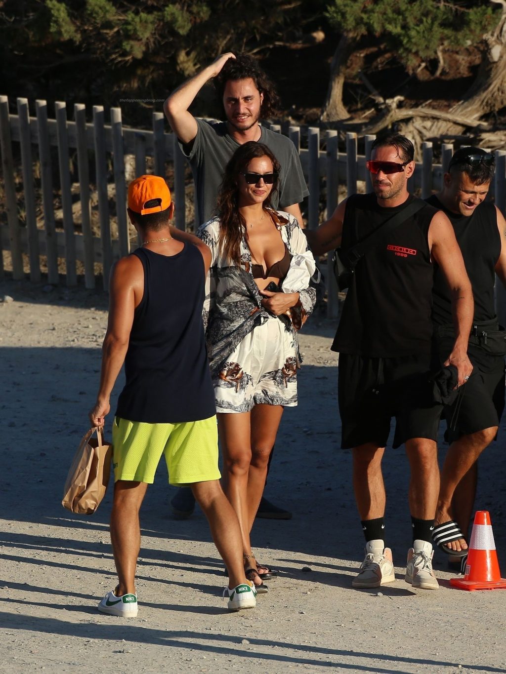 La supermodèle russe Irina Shayk est photographiée avec Riccardo Tisci et des amis quittant El Chinringuito Es Cavallet après avoir déjeuné à Ibiza, le 08/06/2021. D’autres amis étaient les propriétaires de Circo Loco.