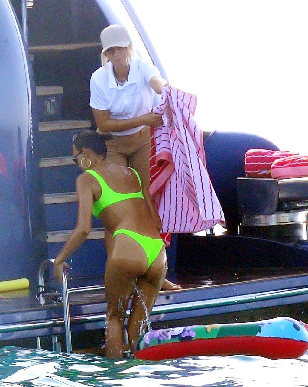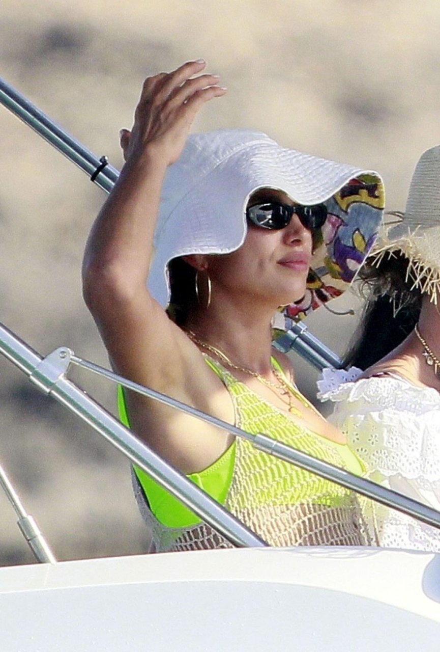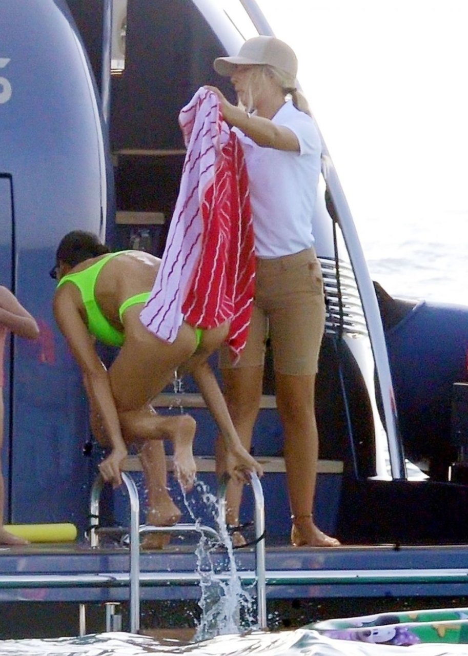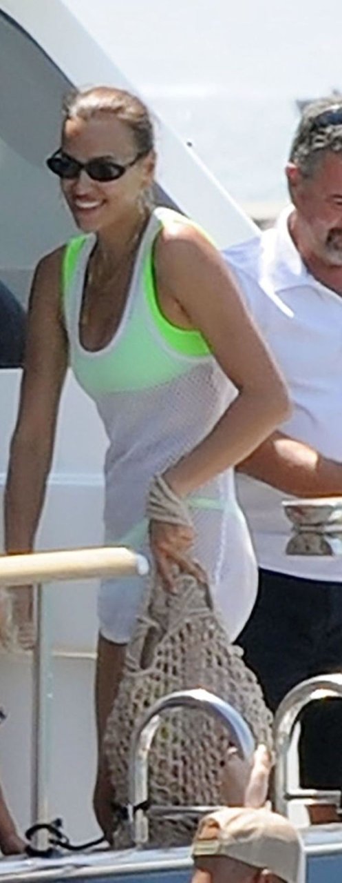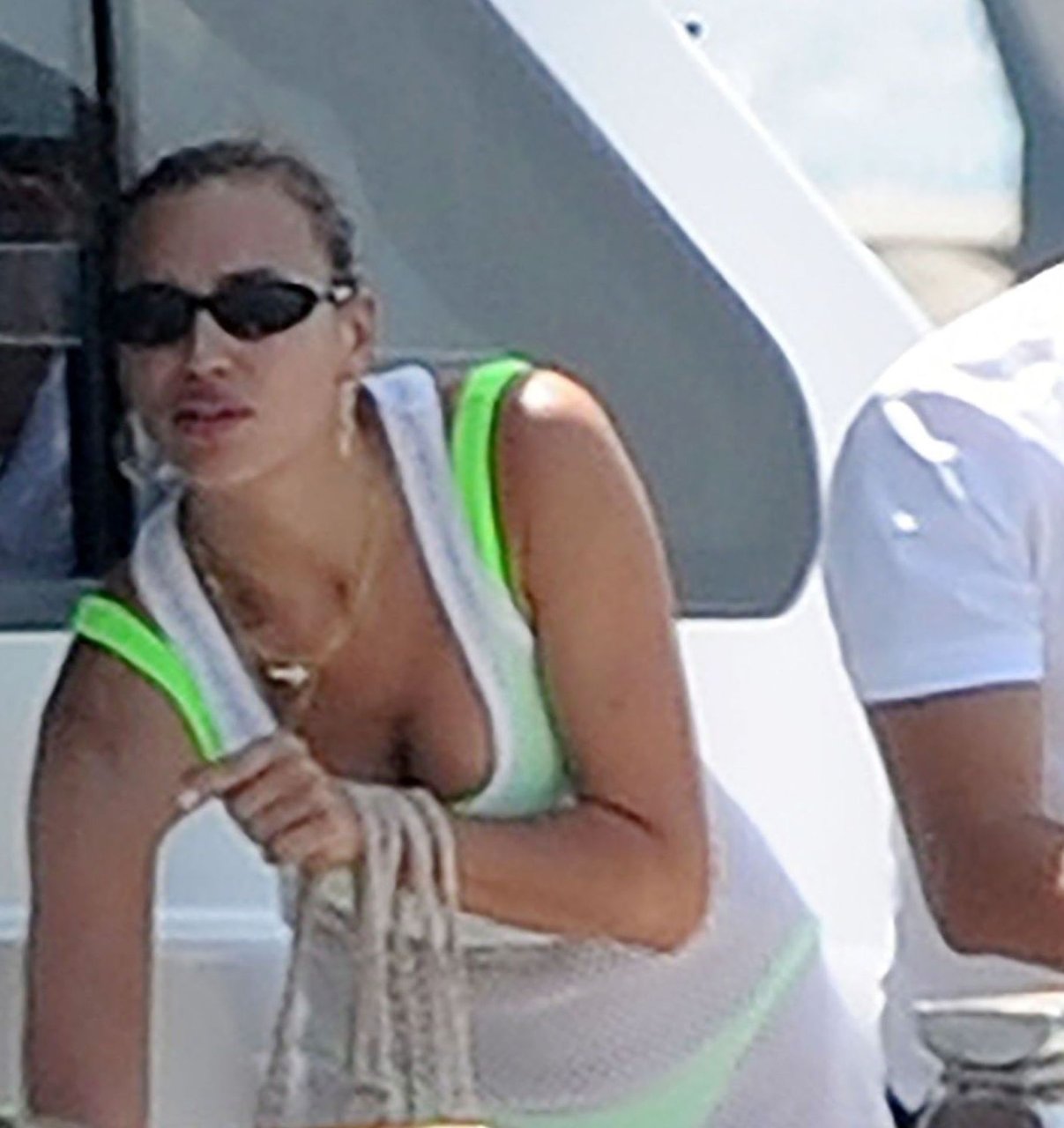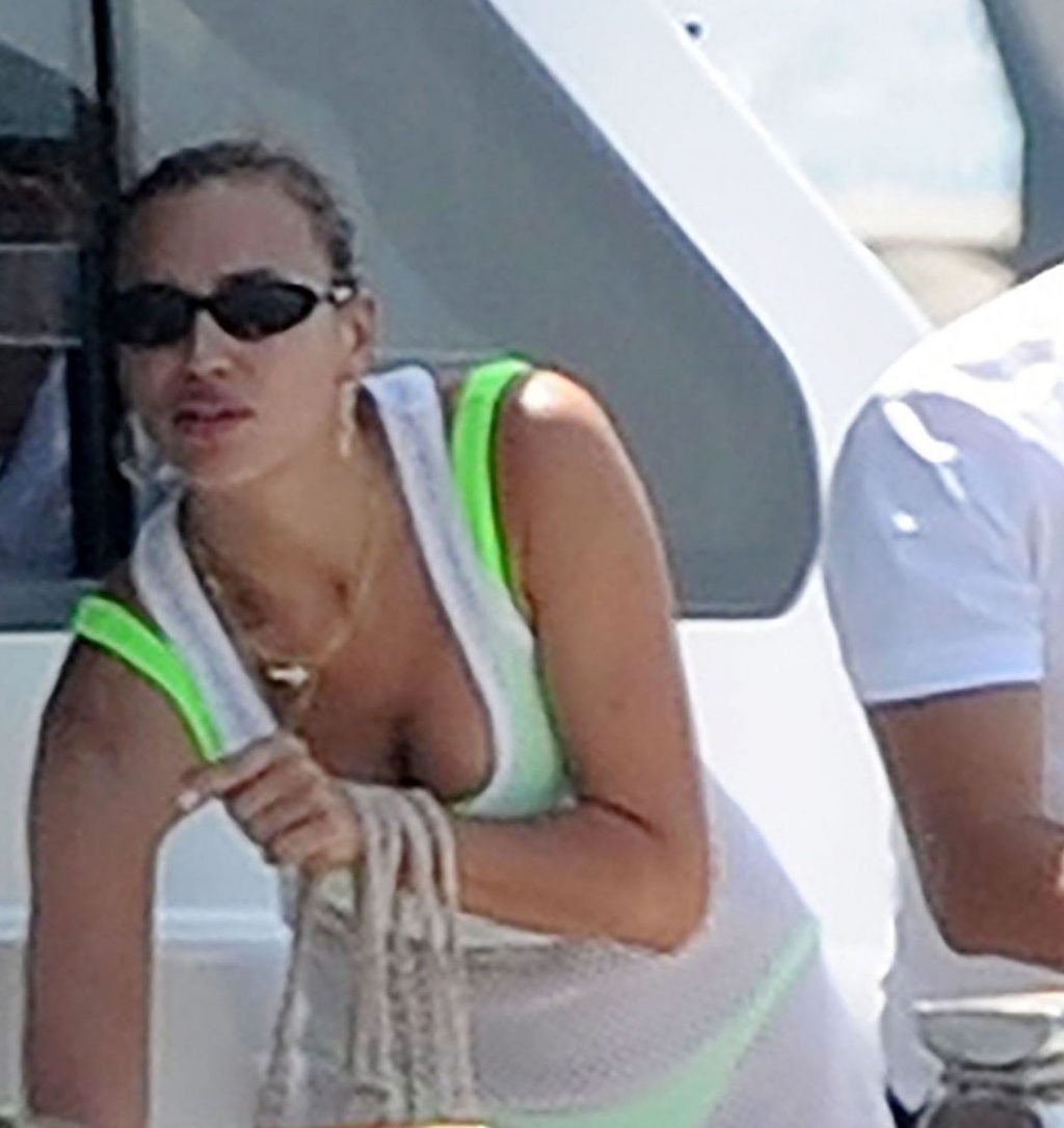 Irina portait un bikini néon saisissant et est allée nager depuis leur yacht. La maman heureuse et sa fille ont été vues profitant d’une journée au soleil avec la petite Lea dans un adorable ensemble deux pièces Burberry.