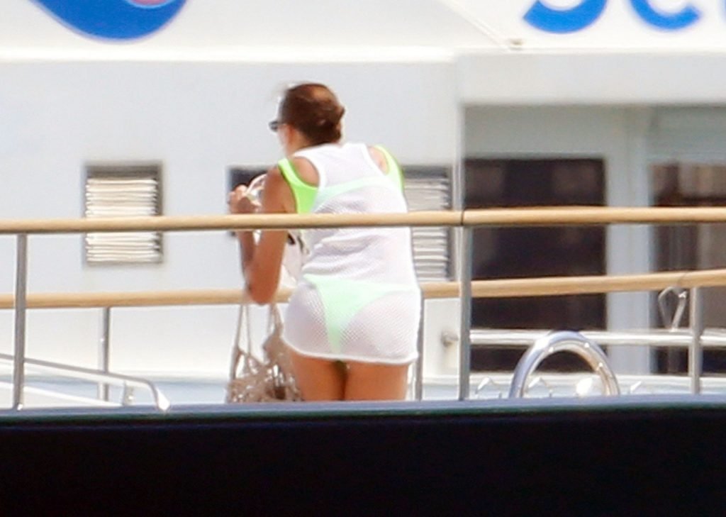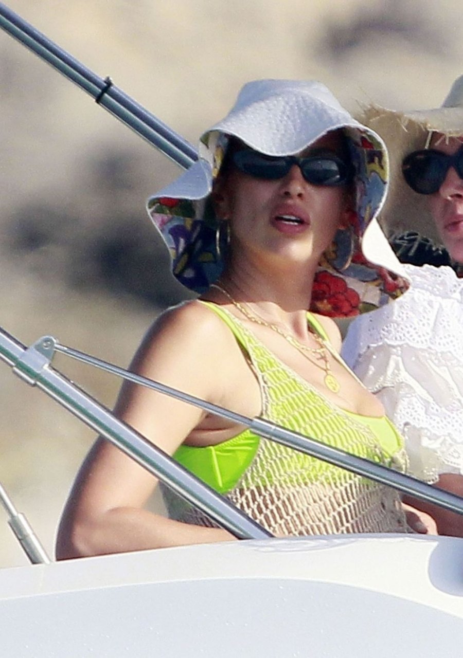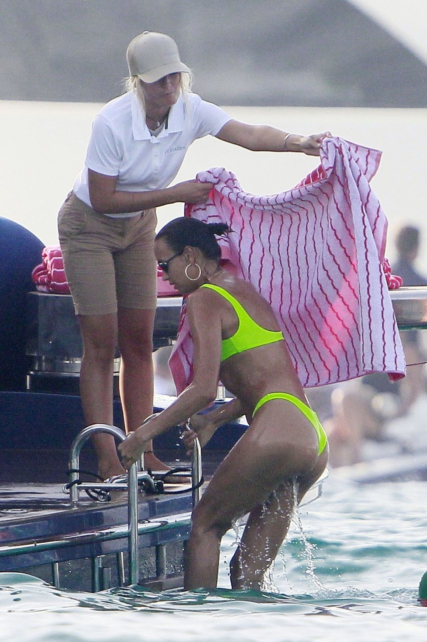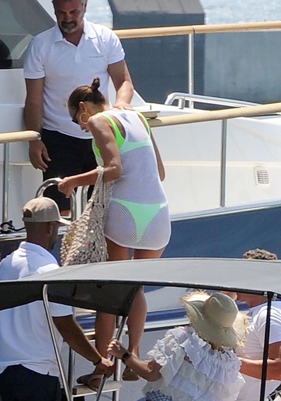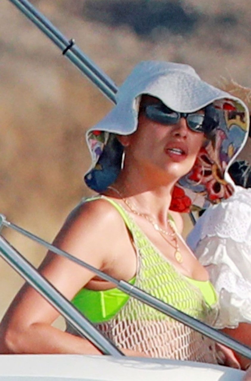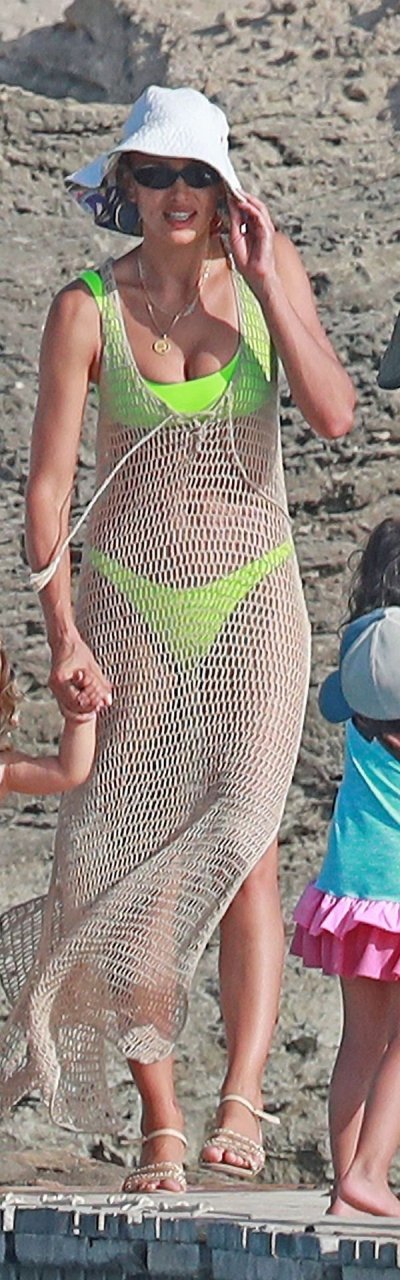 Irina portait un bikini néon saisissant et est allée nager depuis leur yacht. La maman heureuse et sa fille ont été vues profitant d’une journée au soleil avec la petite Lea dans un adorable ensemble deux pièces Burberry.