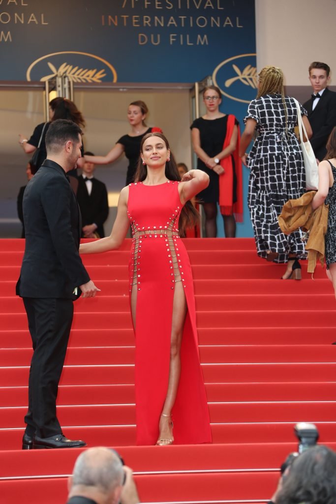 Irina Shayk sans culotte assiste à la première du film ‘Sorry Angel’ dans une robe Versace rouge décontractée au 71e Festival de Cannes en France, le 10/05/2018. Irina Shayk est un mannequin et actrice née en Russie, Âge : 32 ans.
