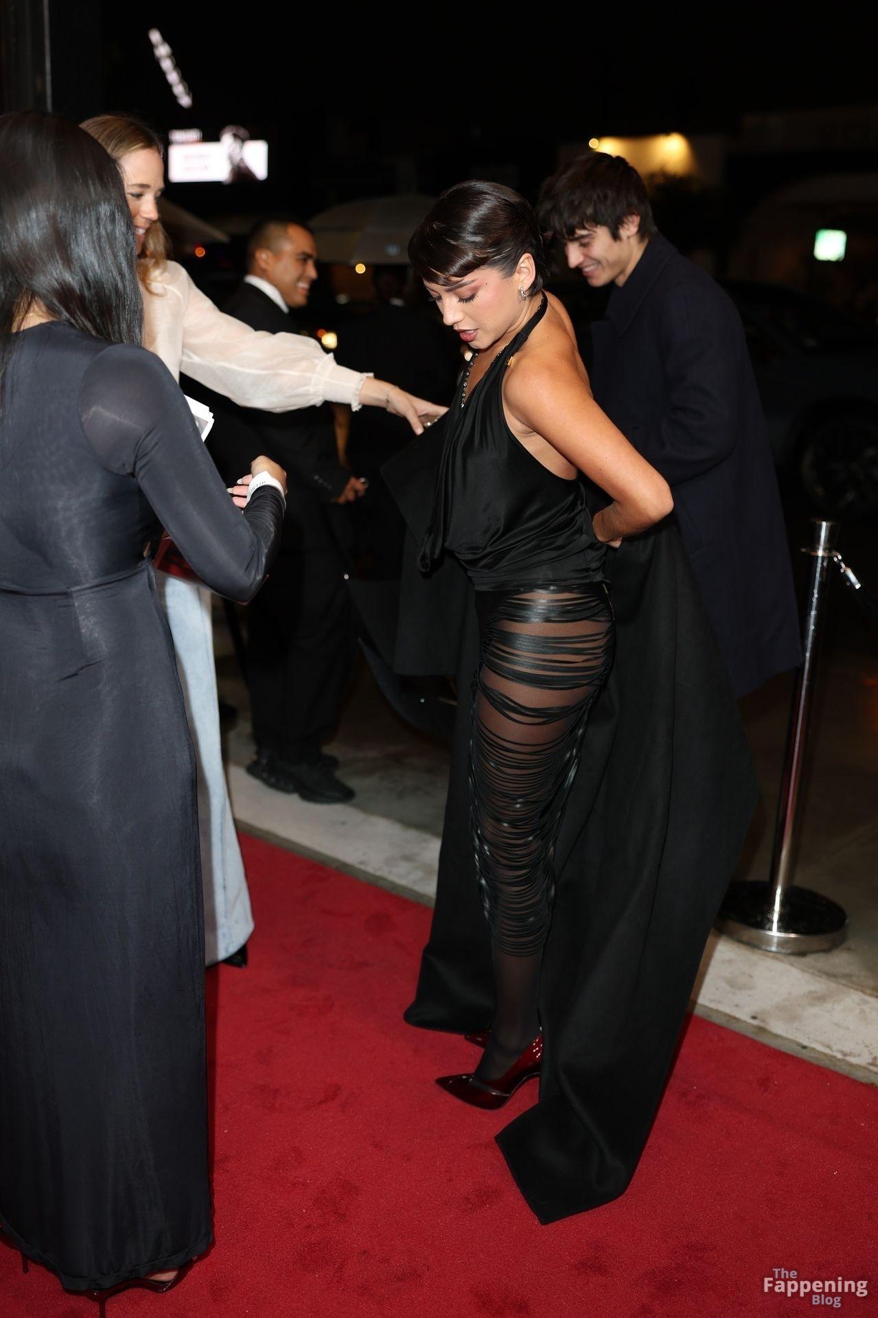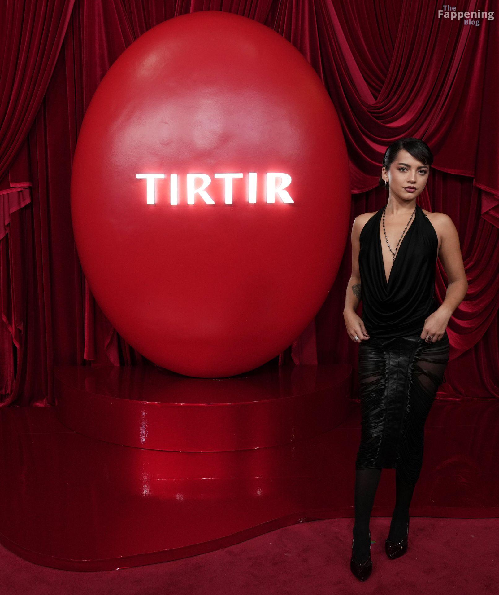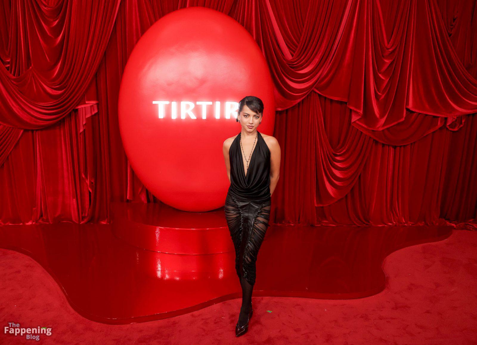 L’actrice et chanteuse Isabela Merced est photographiée dans une robe transparente lors de l’événement Radiate in Red Pop-Up de TirTir au 8175 Melrose Ave à Los Angeles, montrant ses fesses dans cette jupe transparente.