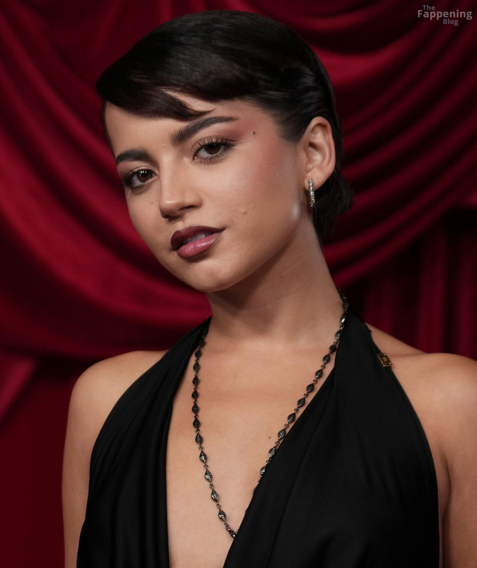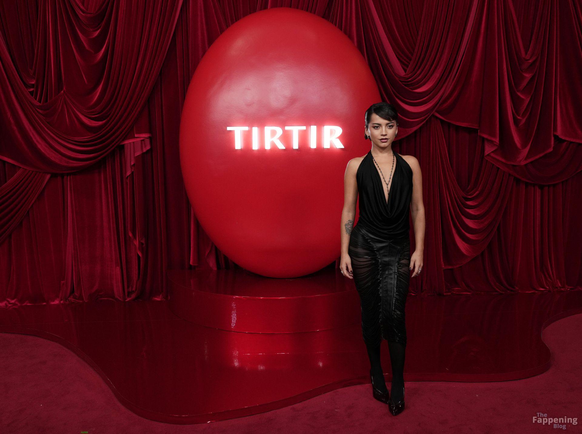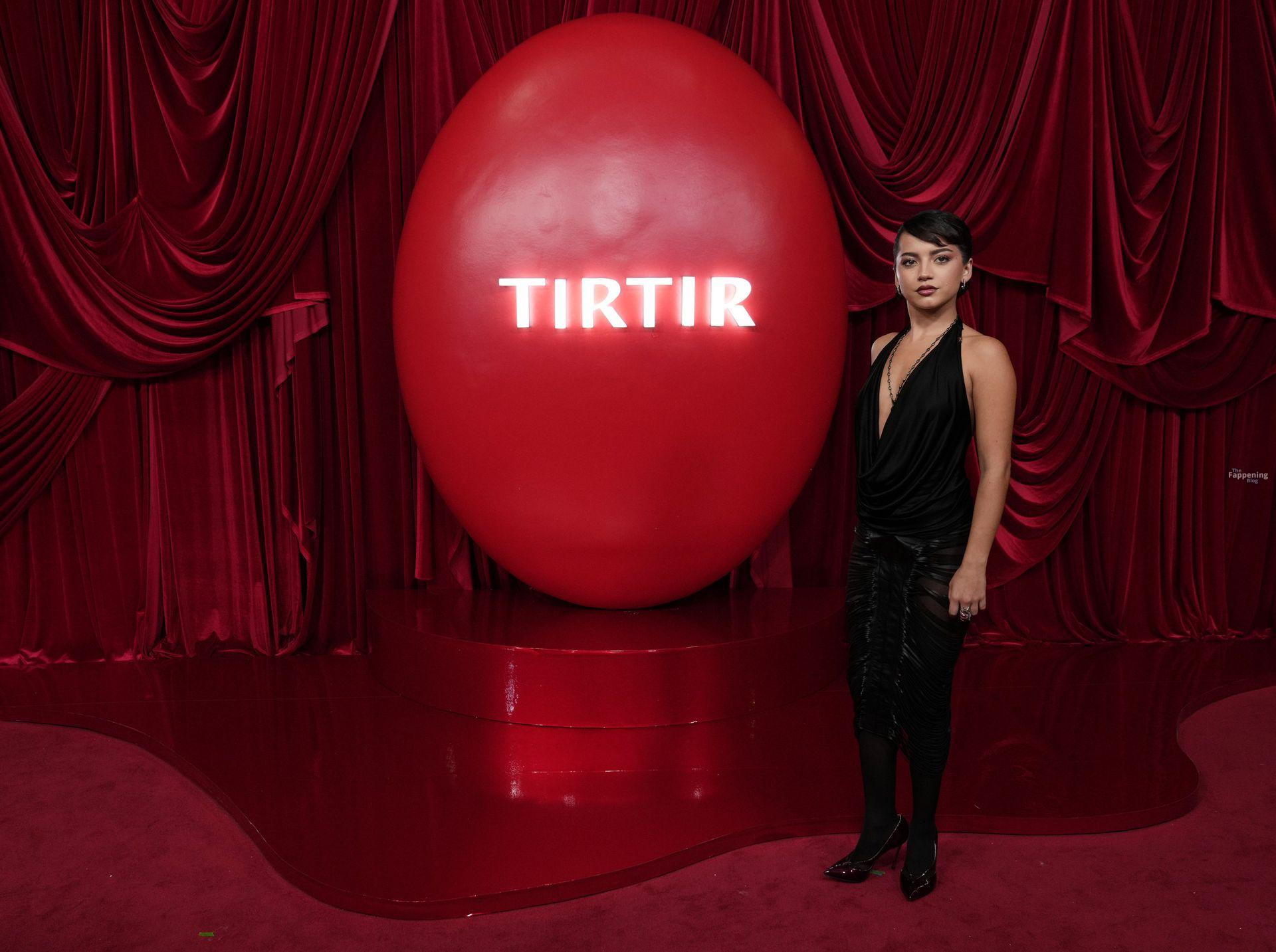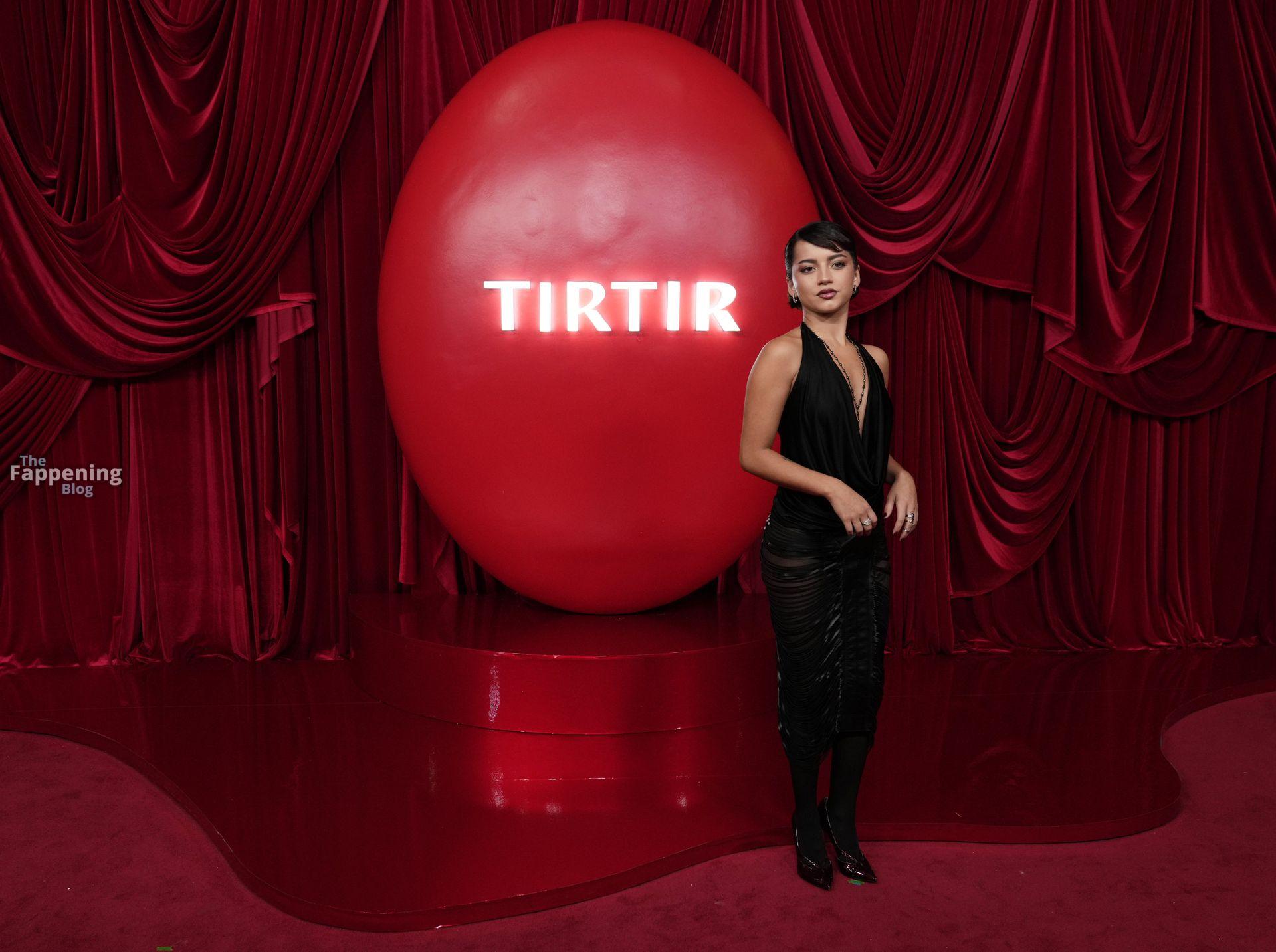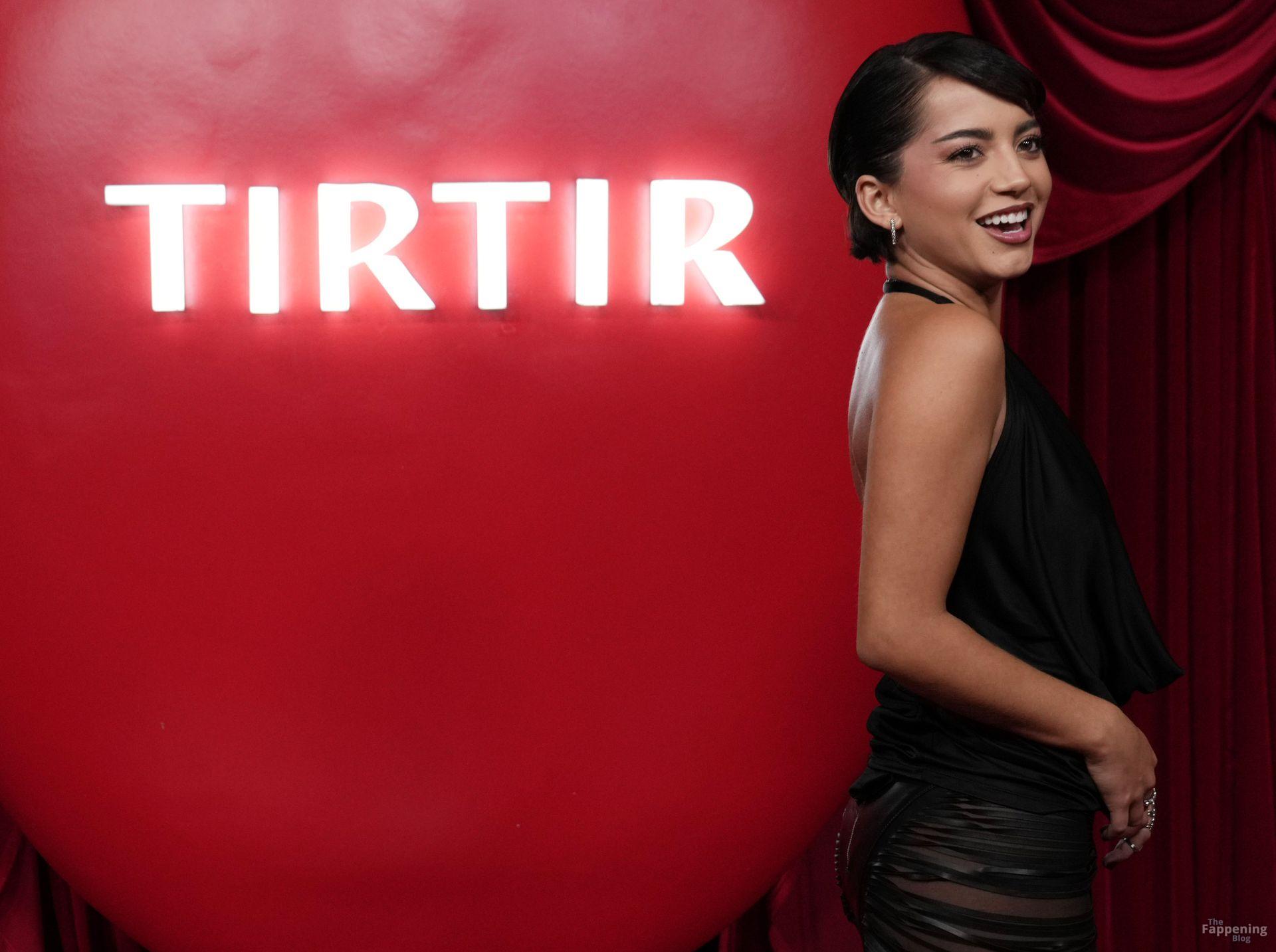 L’actrice et chanteuse Isabela Merced est photographiée dans une robe transparente lors de l’événement Radiate in Red Pop-Up de TirTir au 8175 Melrose Ave à Los Angeles, montrant ses fesses dans cette jupe transparente.