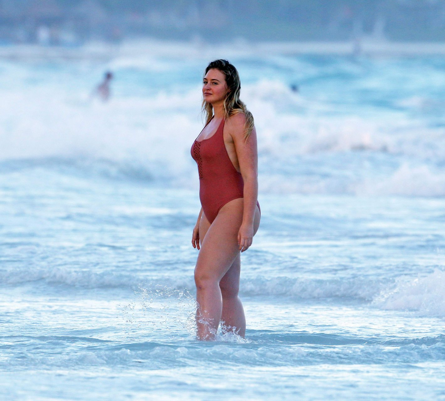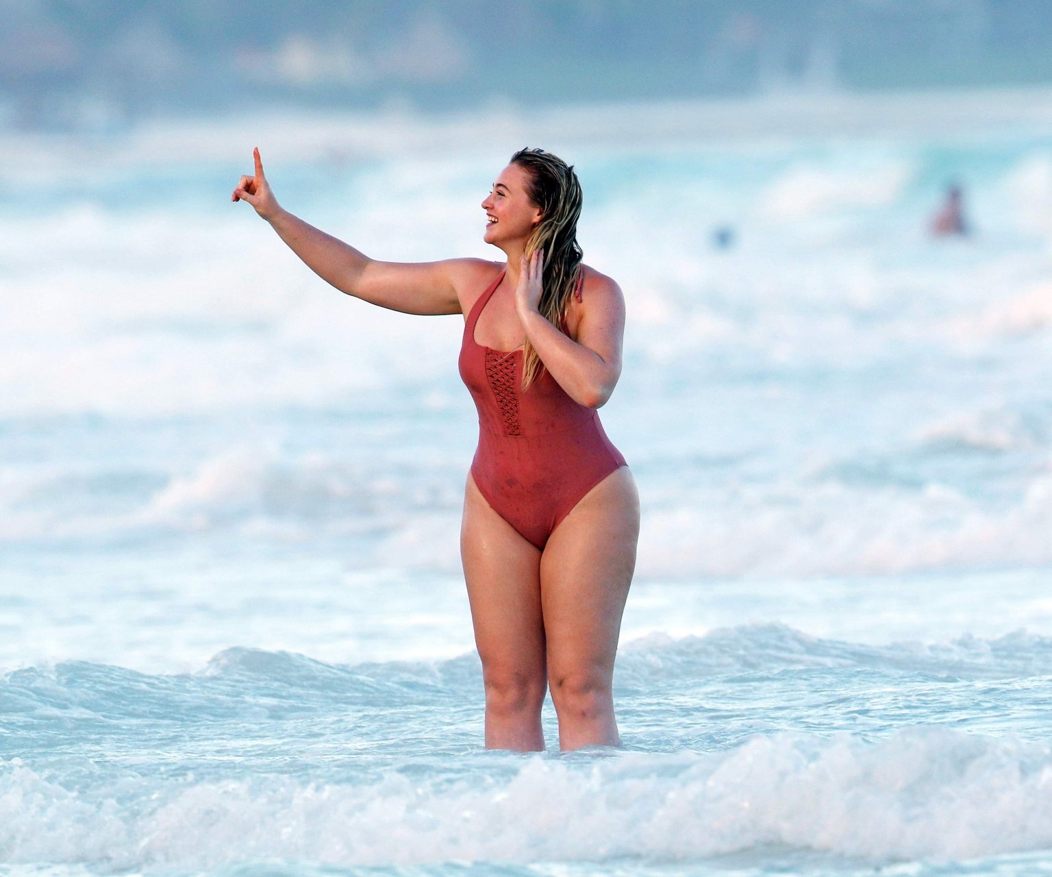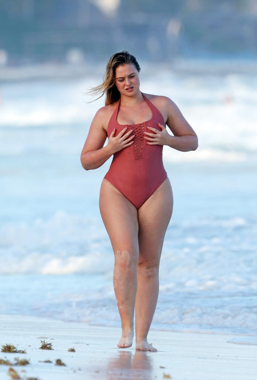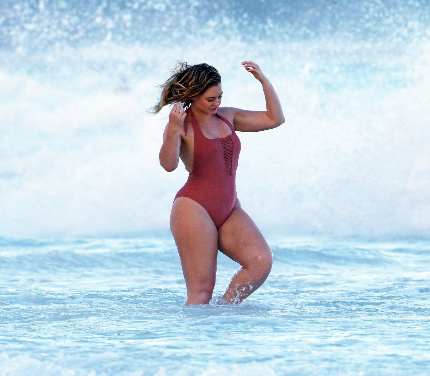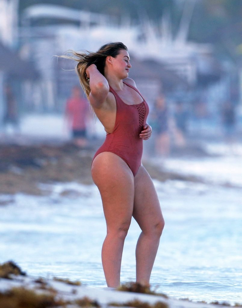 Le mannequin Iskra Lawrence porte un maillot de bain pendant qu’elle profite de ses vacances sur la plage à Tulum, 21/02/2018.
