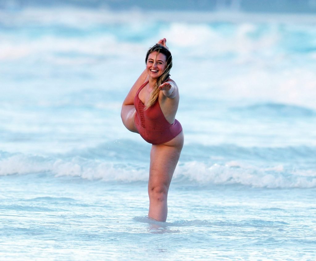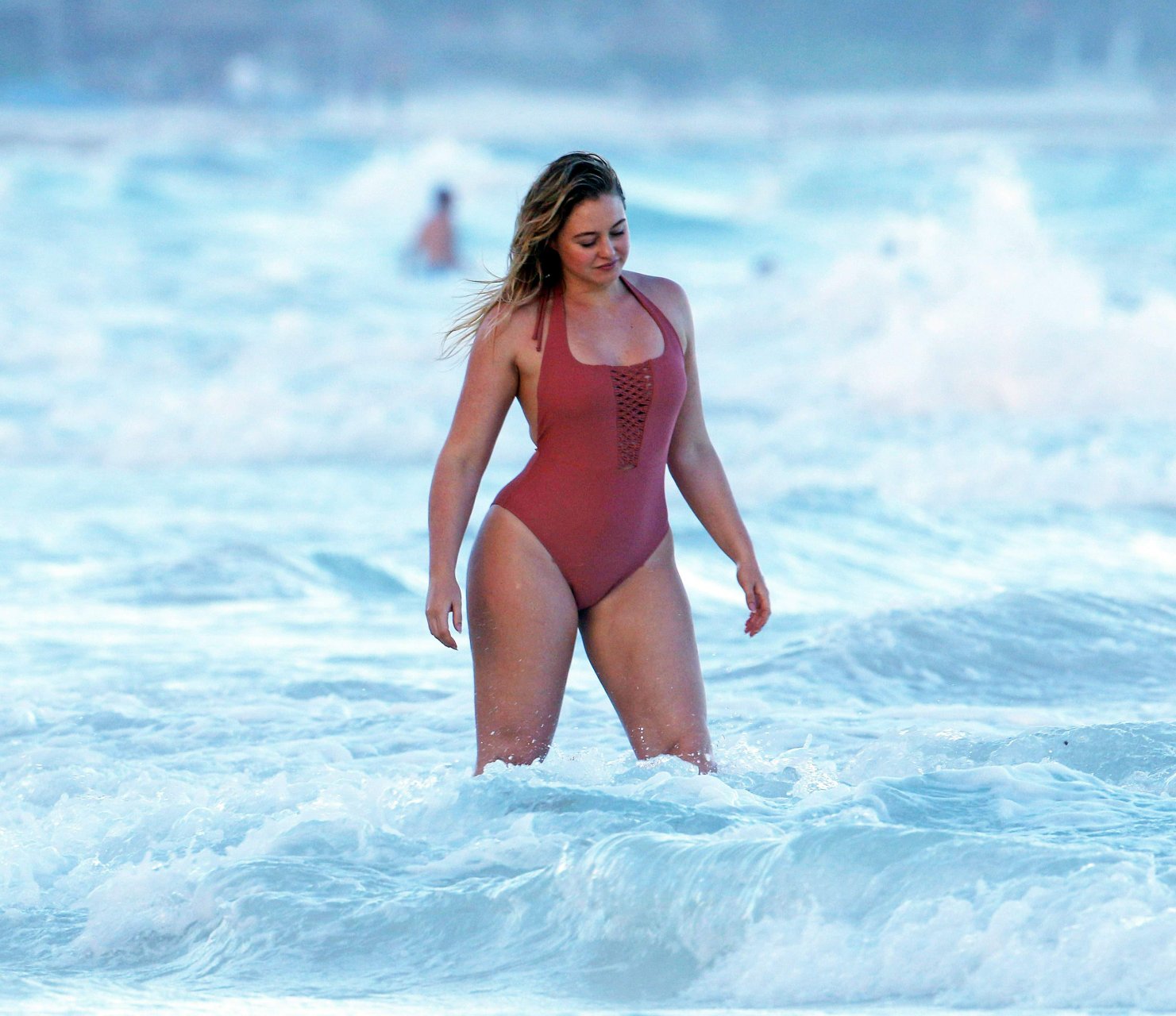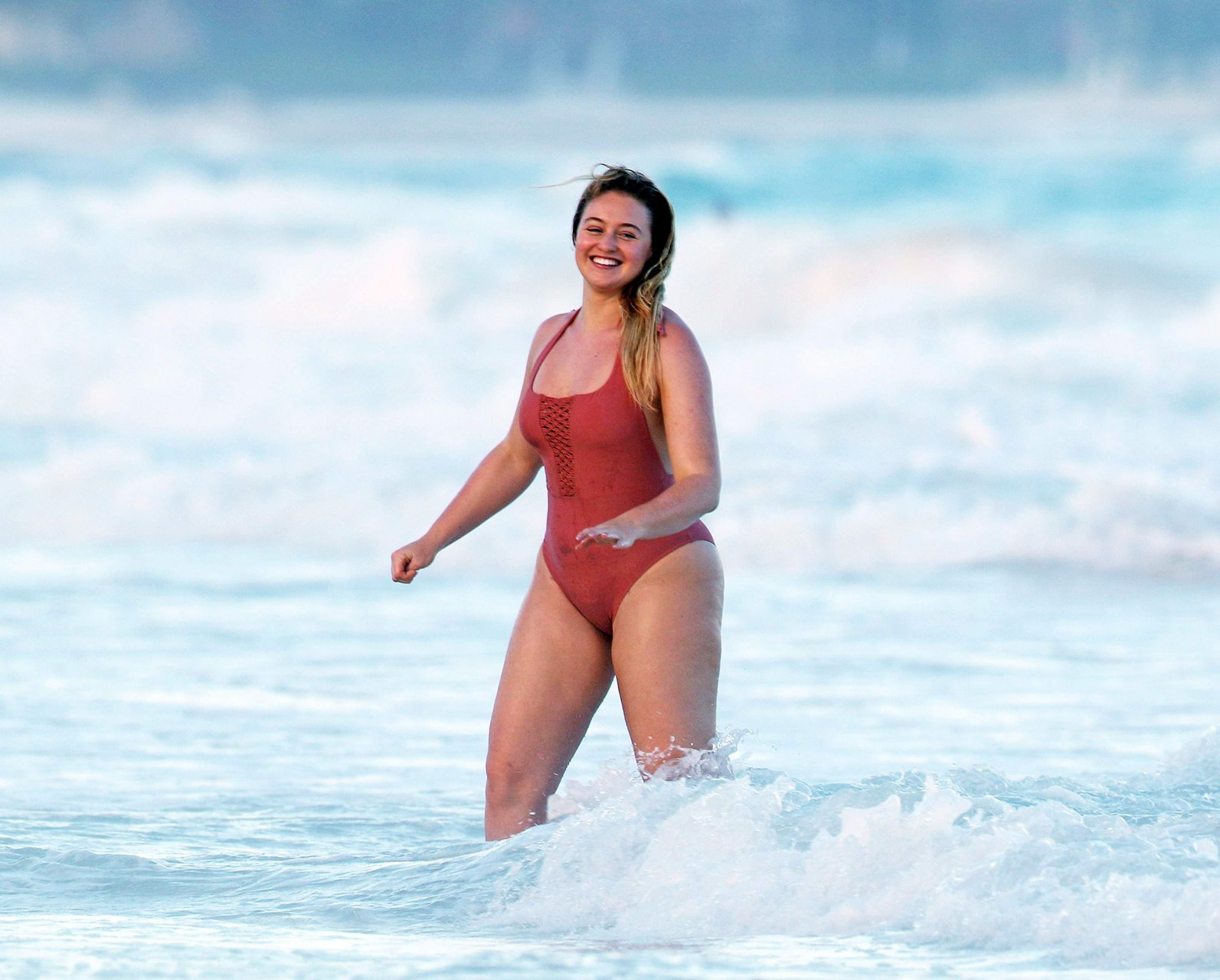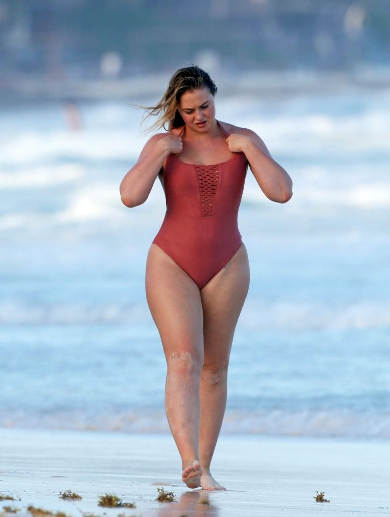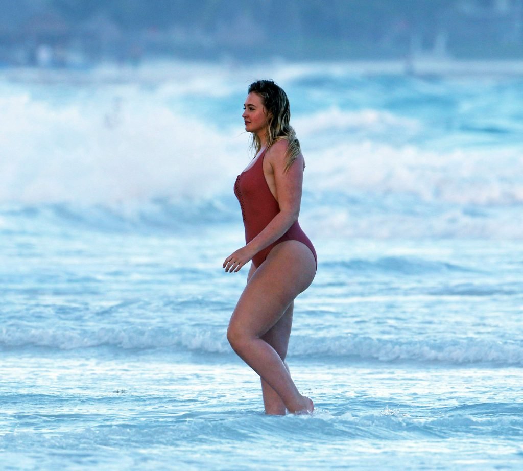 Le mannequin Iskra Lawrence porte un maillot de bain pendant qu’elle profite de ses vacances sur la plage à Tulum, 21/02/2018.