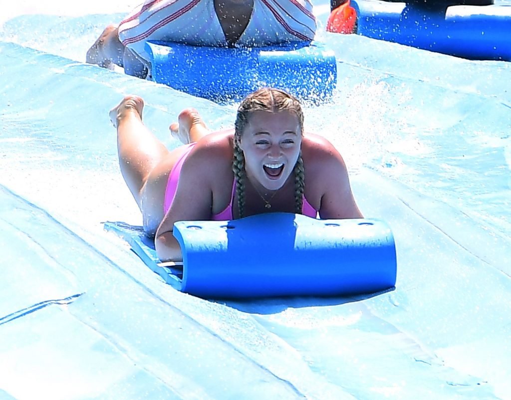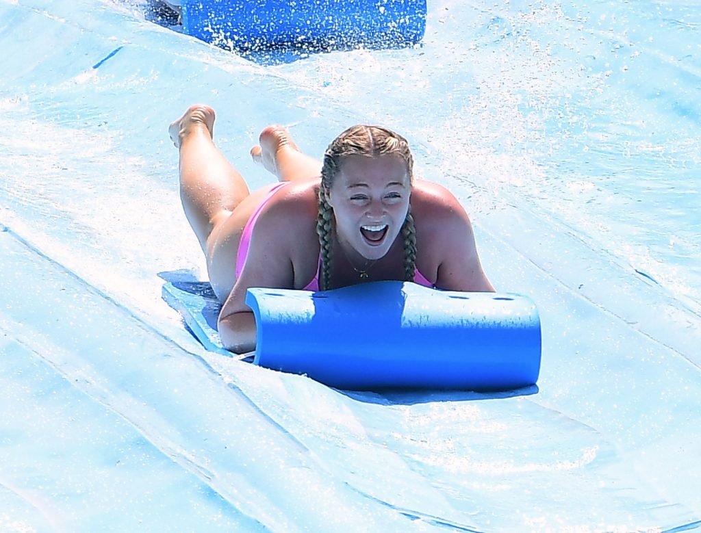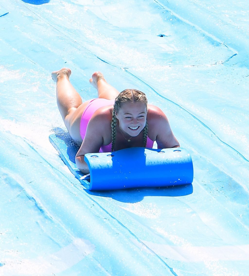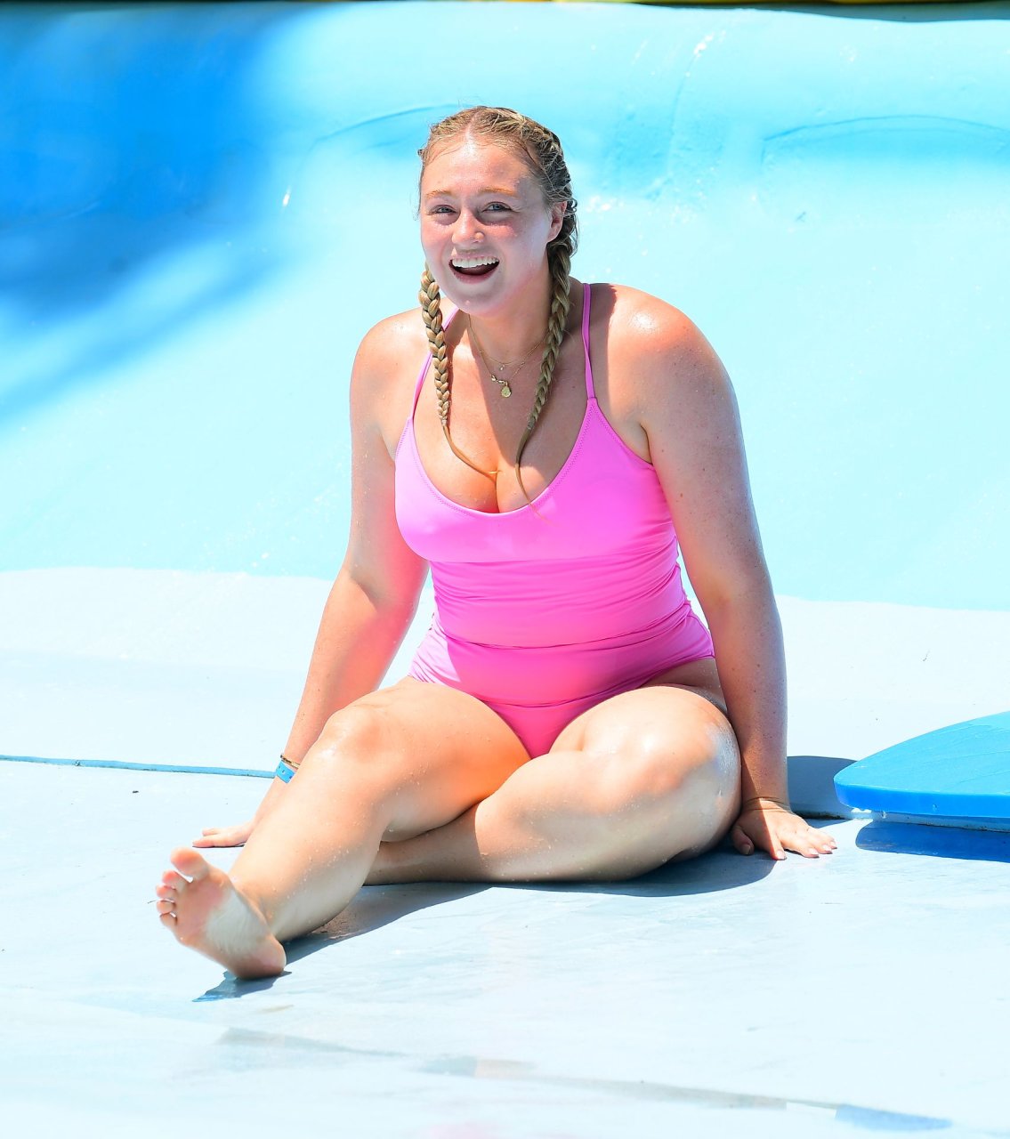 Elle a montré ses célèbres courbes tout en poursuivant son défi d’une semaine sans maquillage. Il semblait qu’elle s’amusait beaucoup à dévaler les toboggans avec ses amis, avant de plonger dans l’eau glacée.