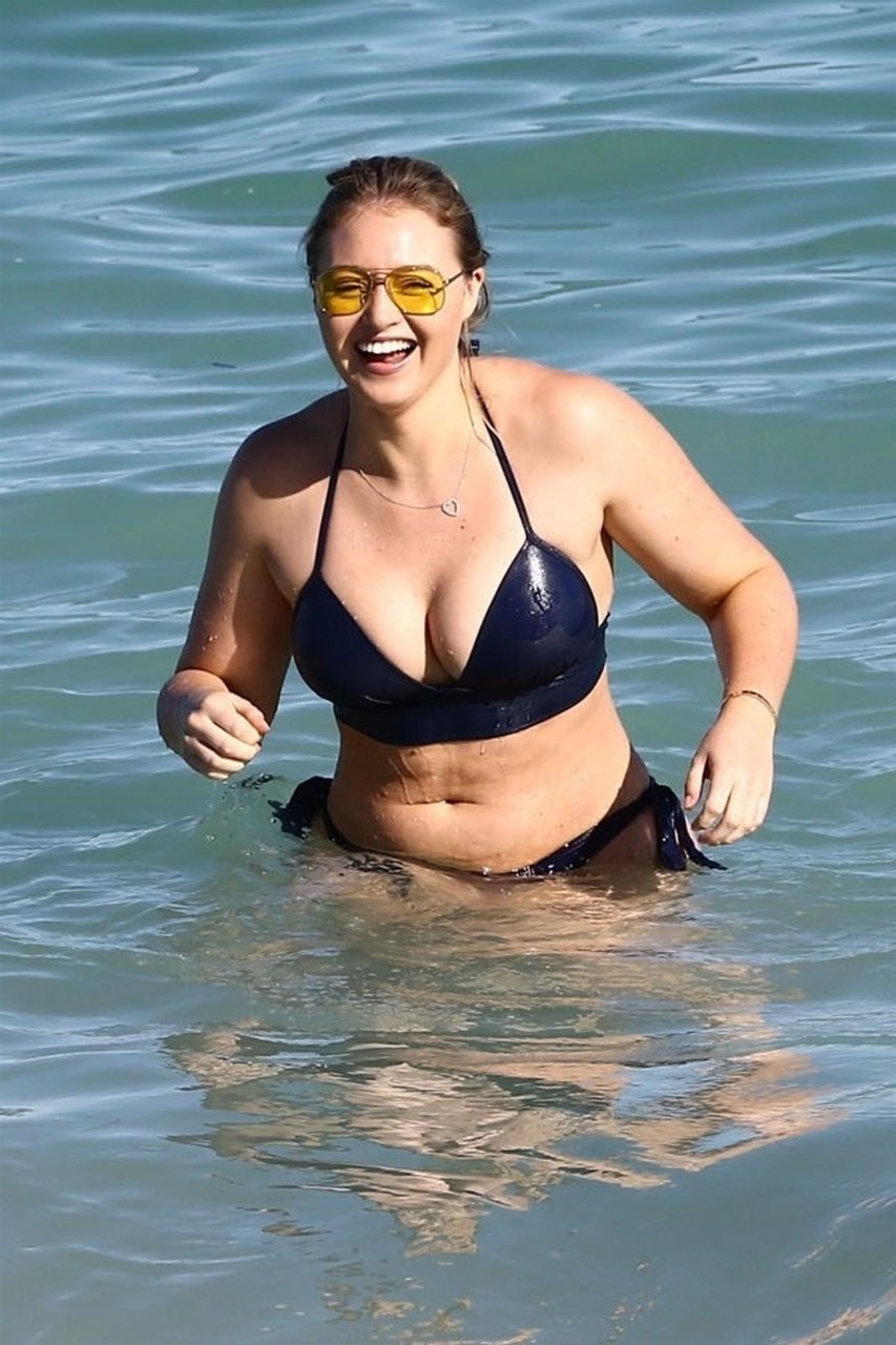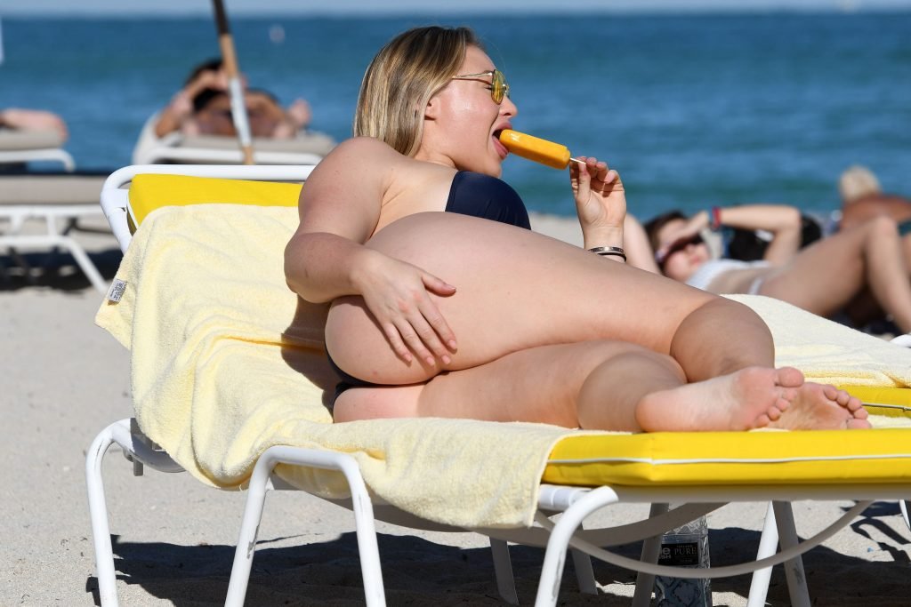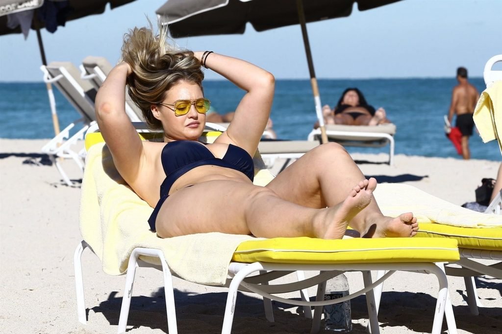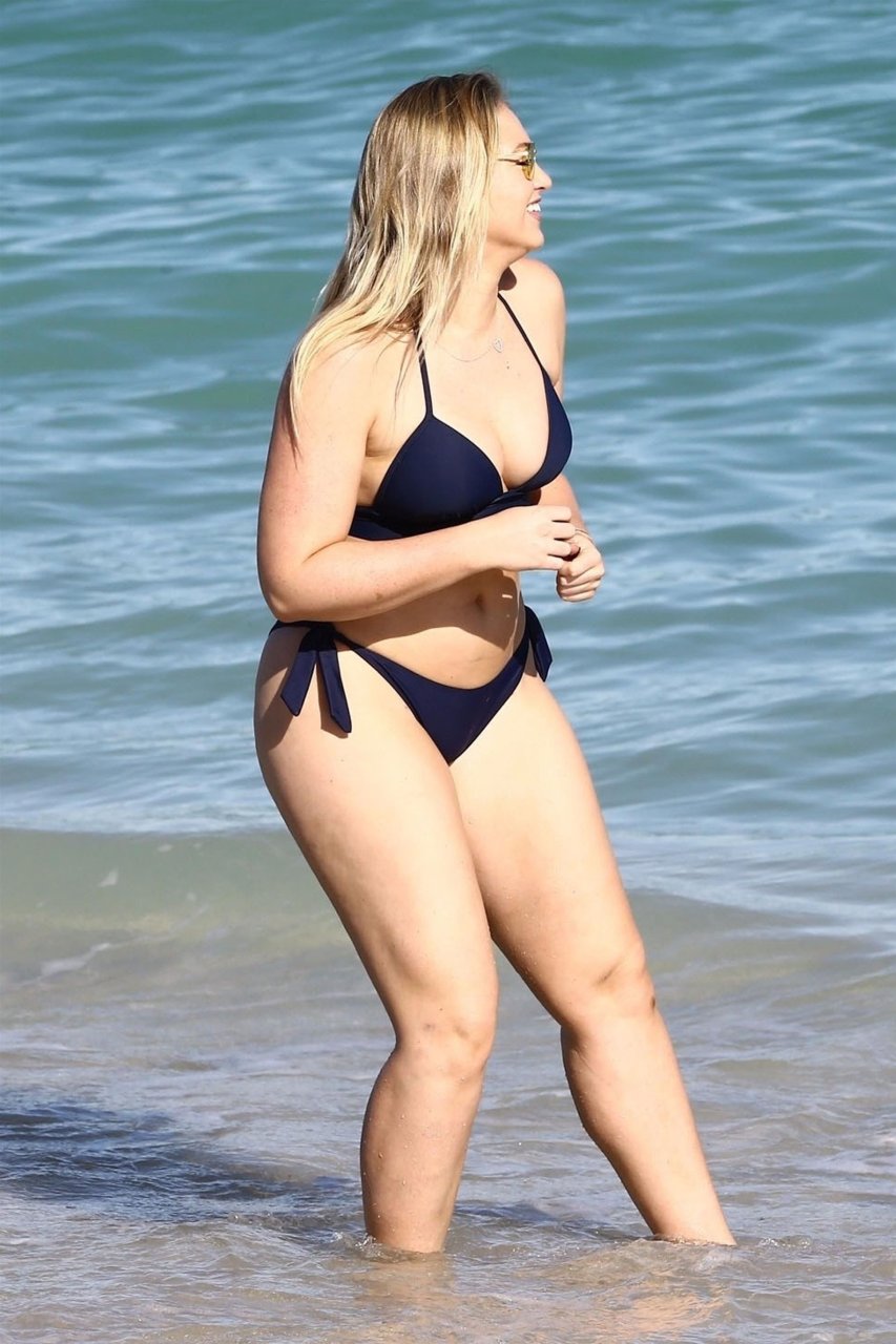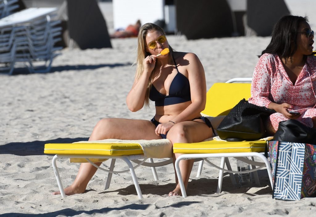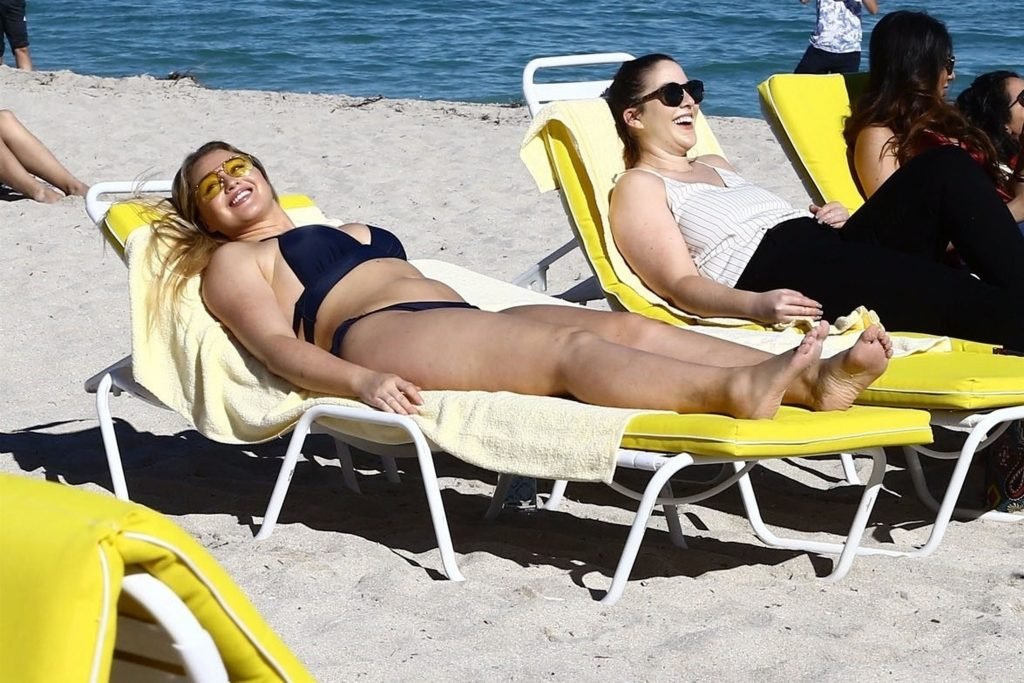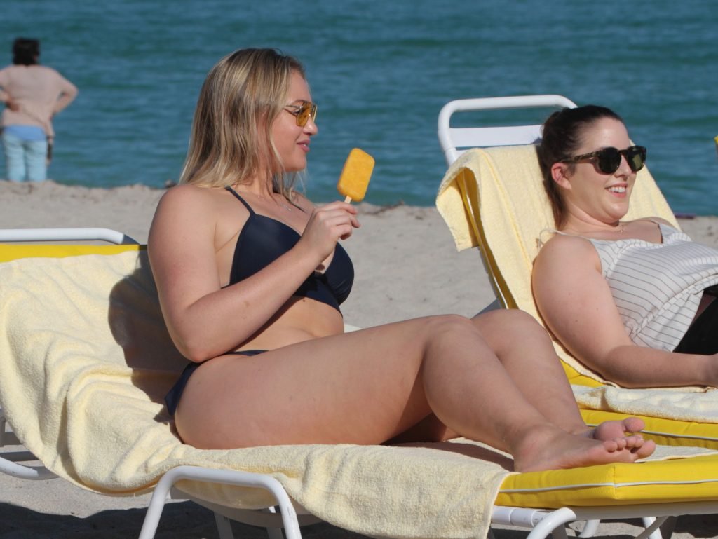 Iskra Lawrence et quelques amis sont vus en train de profiter d’une journée à la plage à Miami, le 11/12/2017. Le mannequin pulpeux de 27 ans a montré ses courbes dans un bikini bleu marine et a dégusté une glace en profitant du soleil.