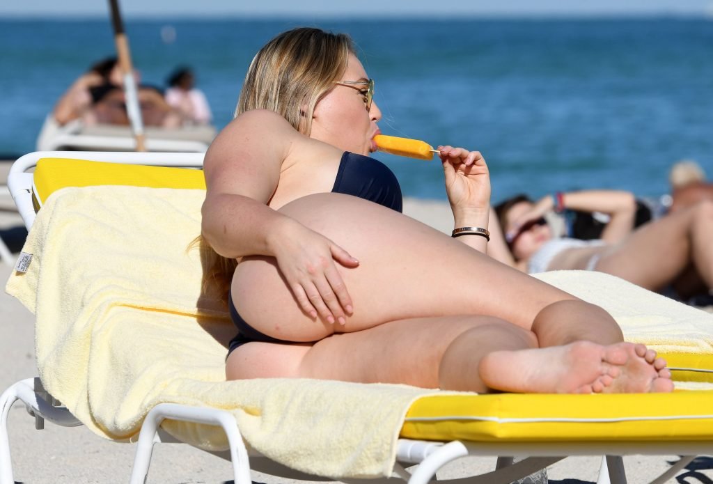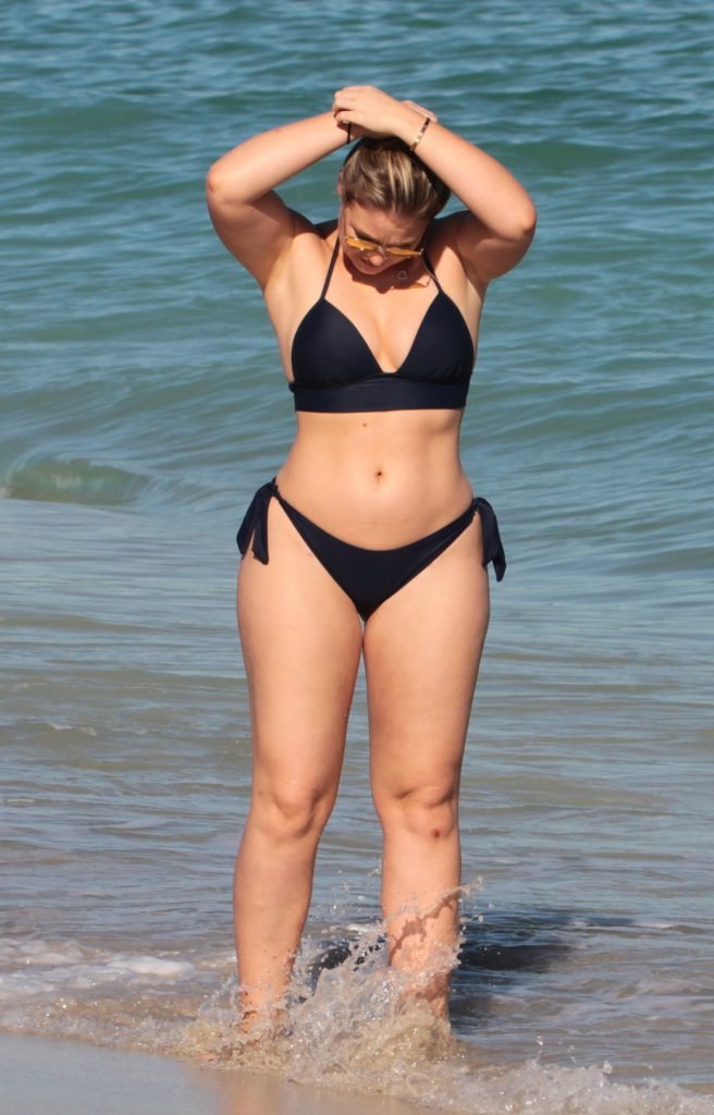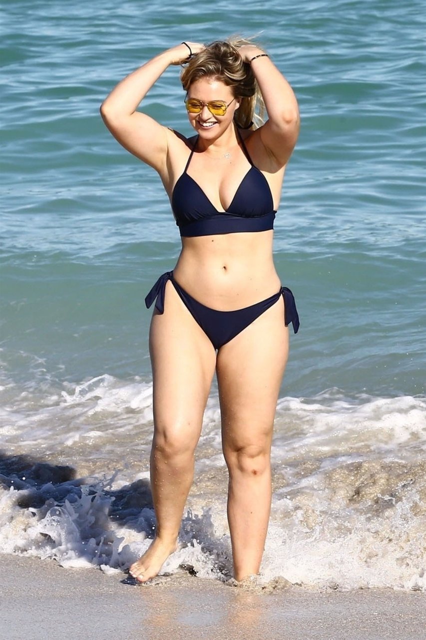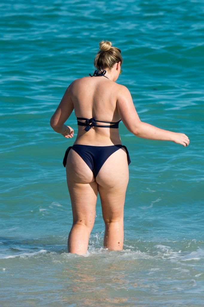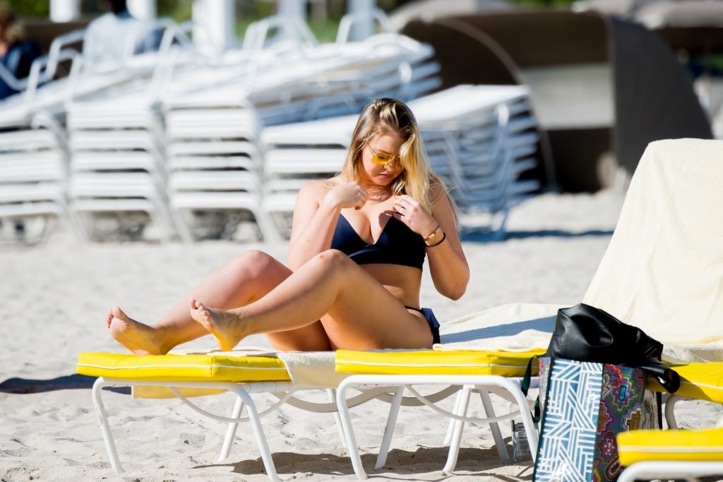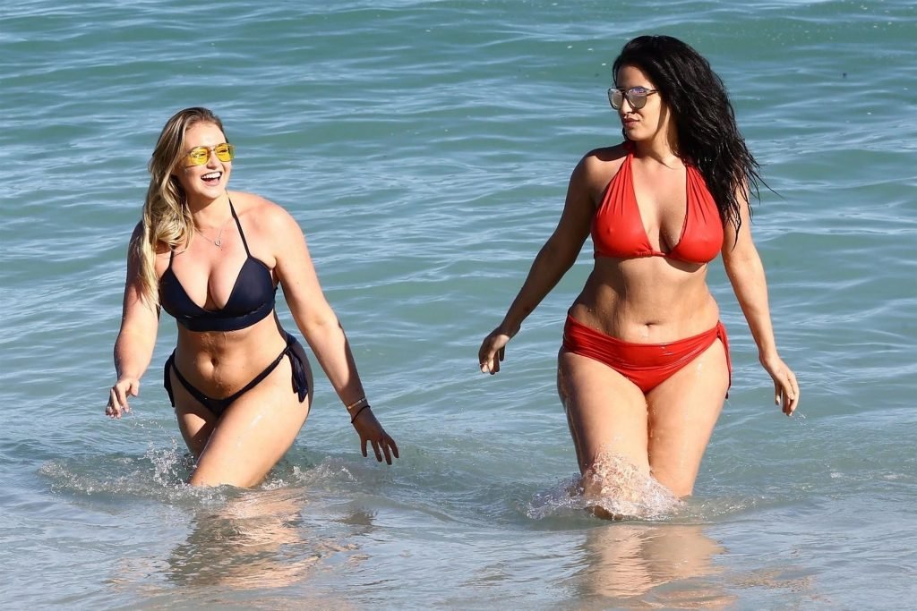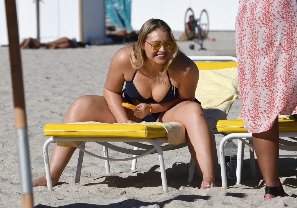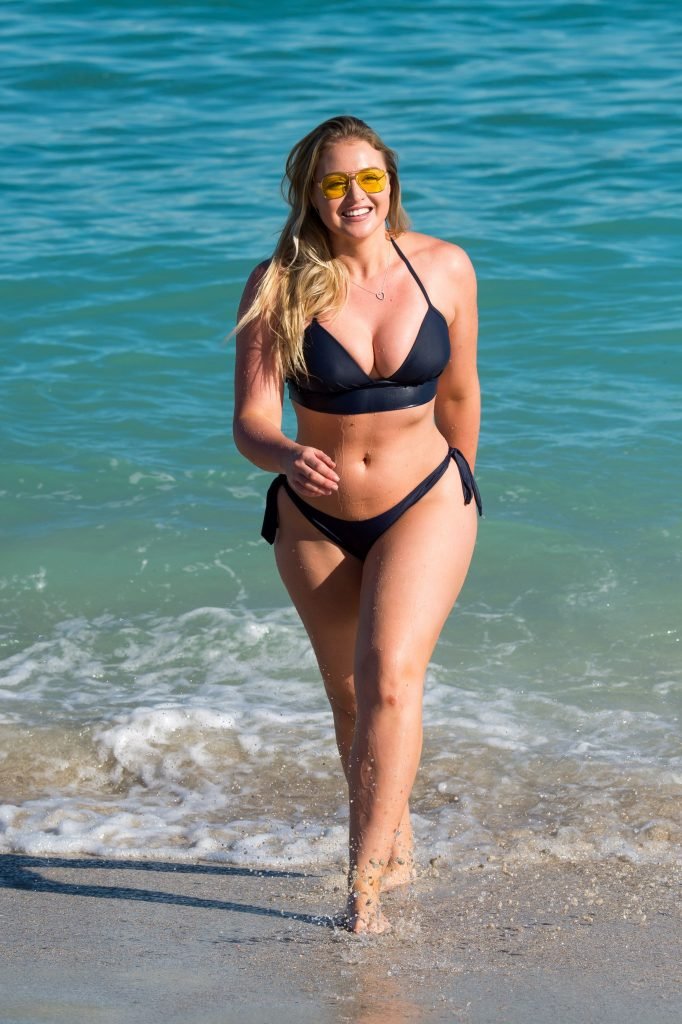 Iskra Lawrence et quelques amis sont vus en train de profiter d’une journée à la plage à Miami, le 11/12/2017. Le mannequin pulpeux de 27 ans a montré ses courbes dans un bikini bleu marine et a dégusté une glace en profitant du soleil.