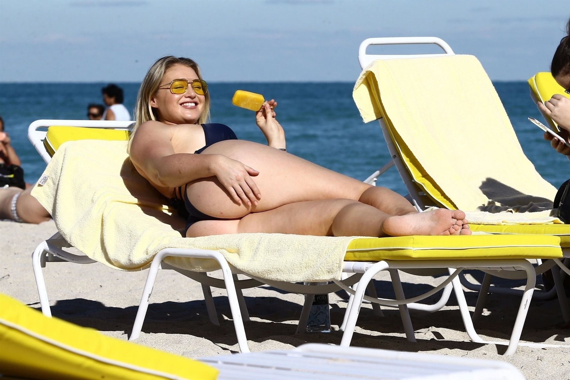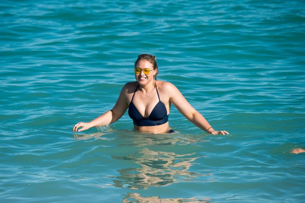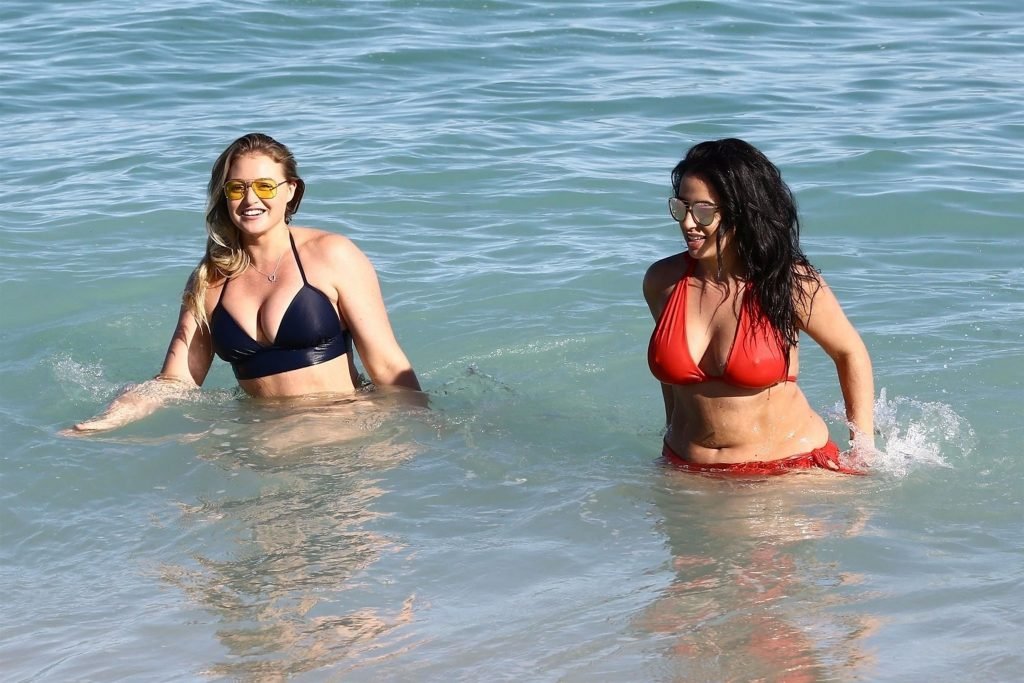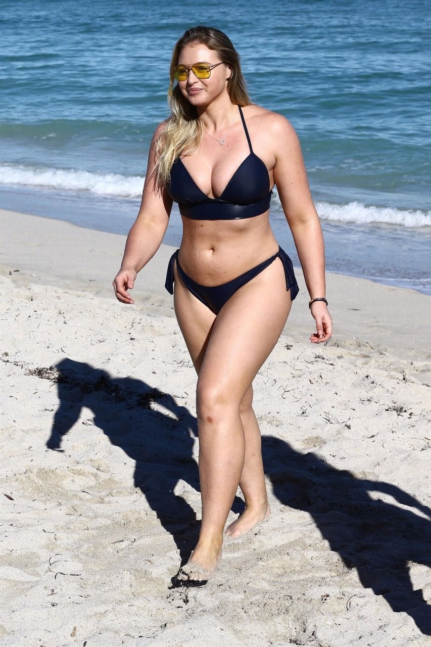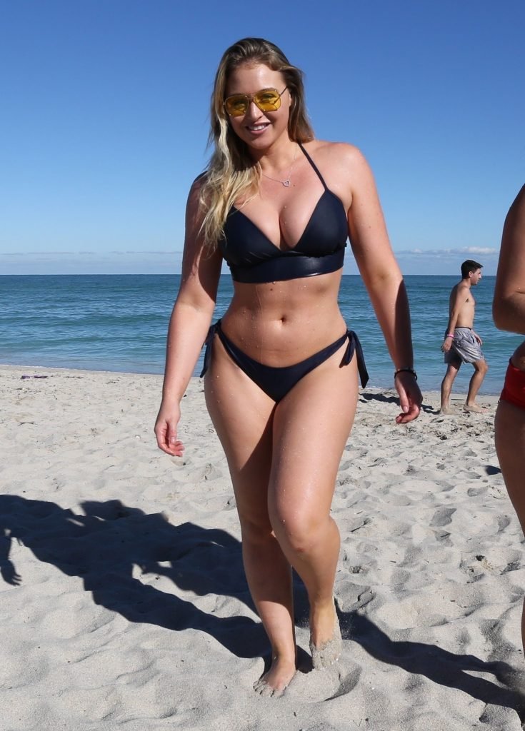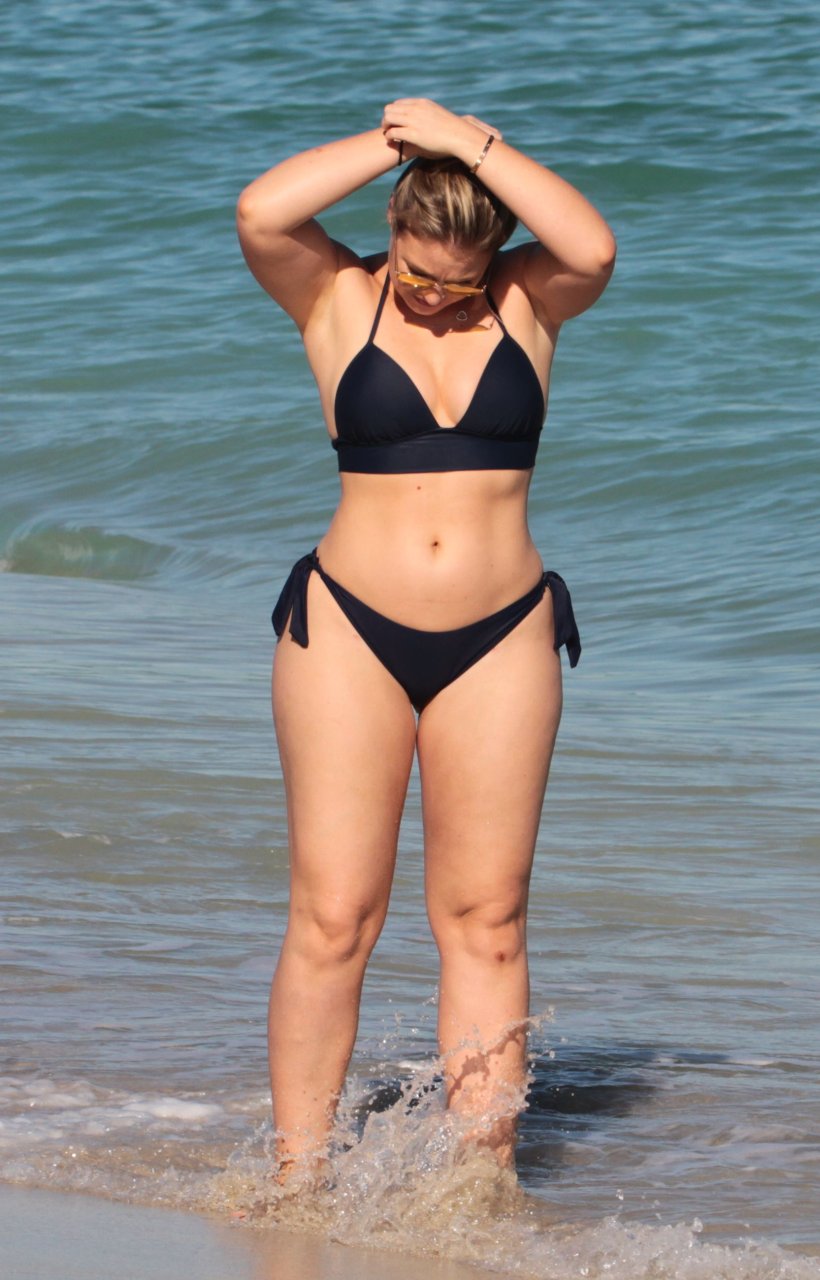 Iskra Lawrence et quelques amis sont vus en train de profiter d’une journée à la plage à Miami, le 11/12/2017. Le mannequin pulpeux de 27 ans a montré ses courbes dans un bikini bleu marine et a dégusté une glace en profitant du soleil.