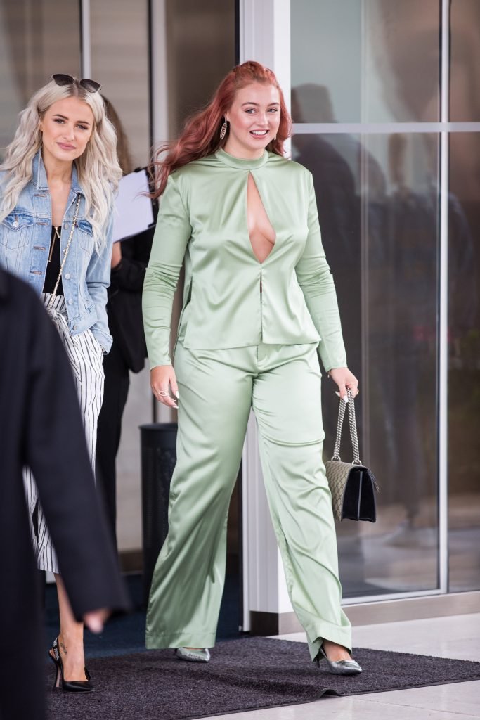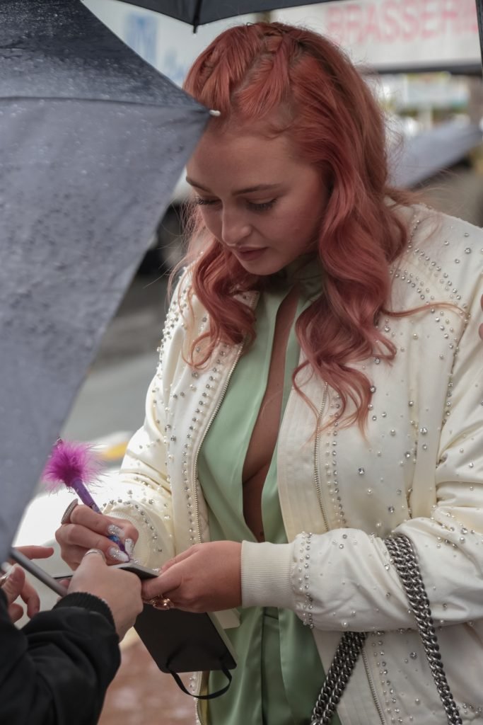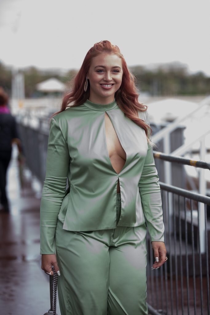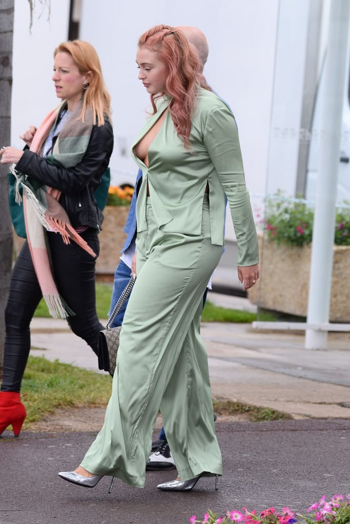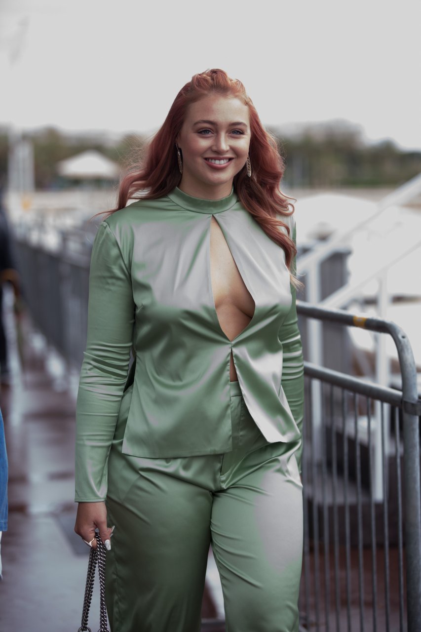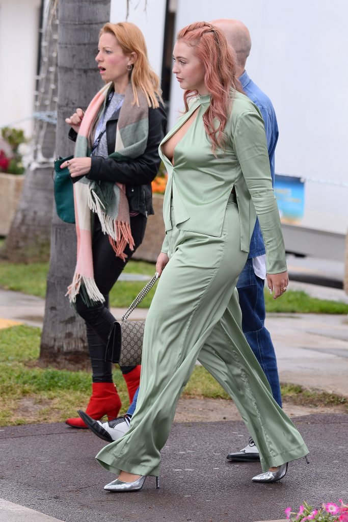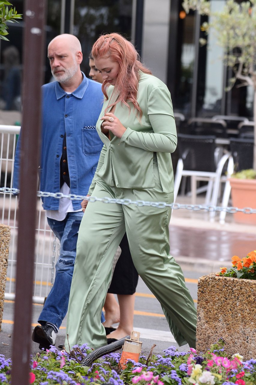 Iskra Lawrence est vue dans un costume vert lors d’une journée pluvieuse à la Croisette à Cannes, France, le 14/05/2018. L’actrice de 27 ans a légèrement exposé ses seins grâce à la découpe sur la veste verte.