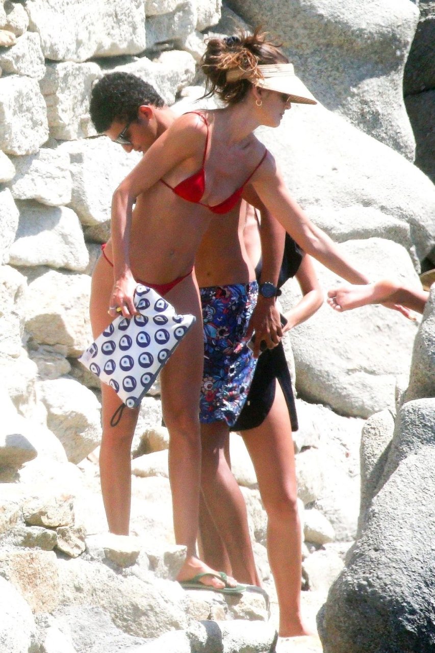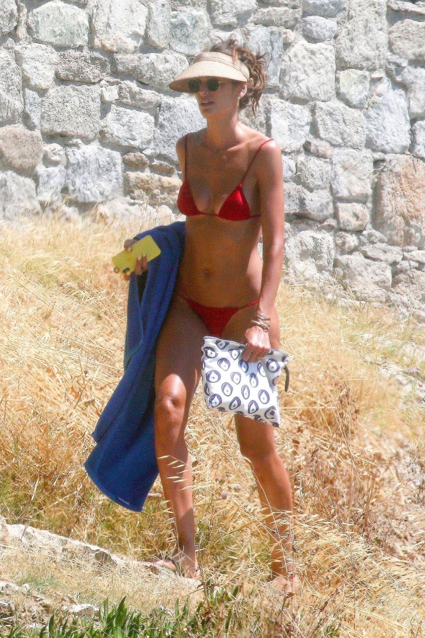 La supermodèle brésilienne Izabel Goulart exhibe sa silhouette sexy dans un petit bikini rouge minimaliste lors de ses vacances sous le soleil de Mykonos, 07/04/2019.