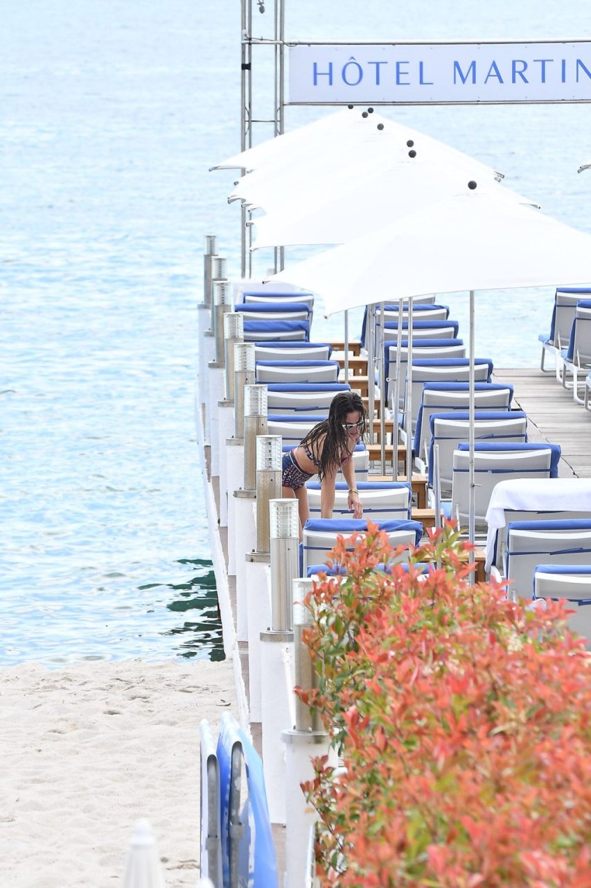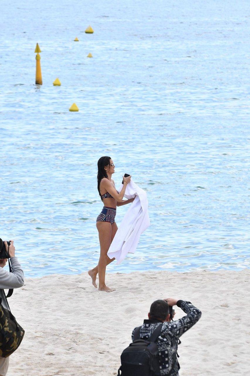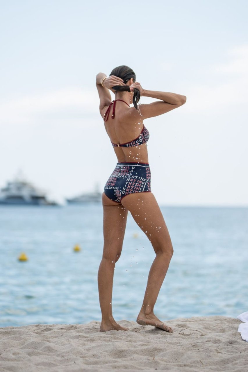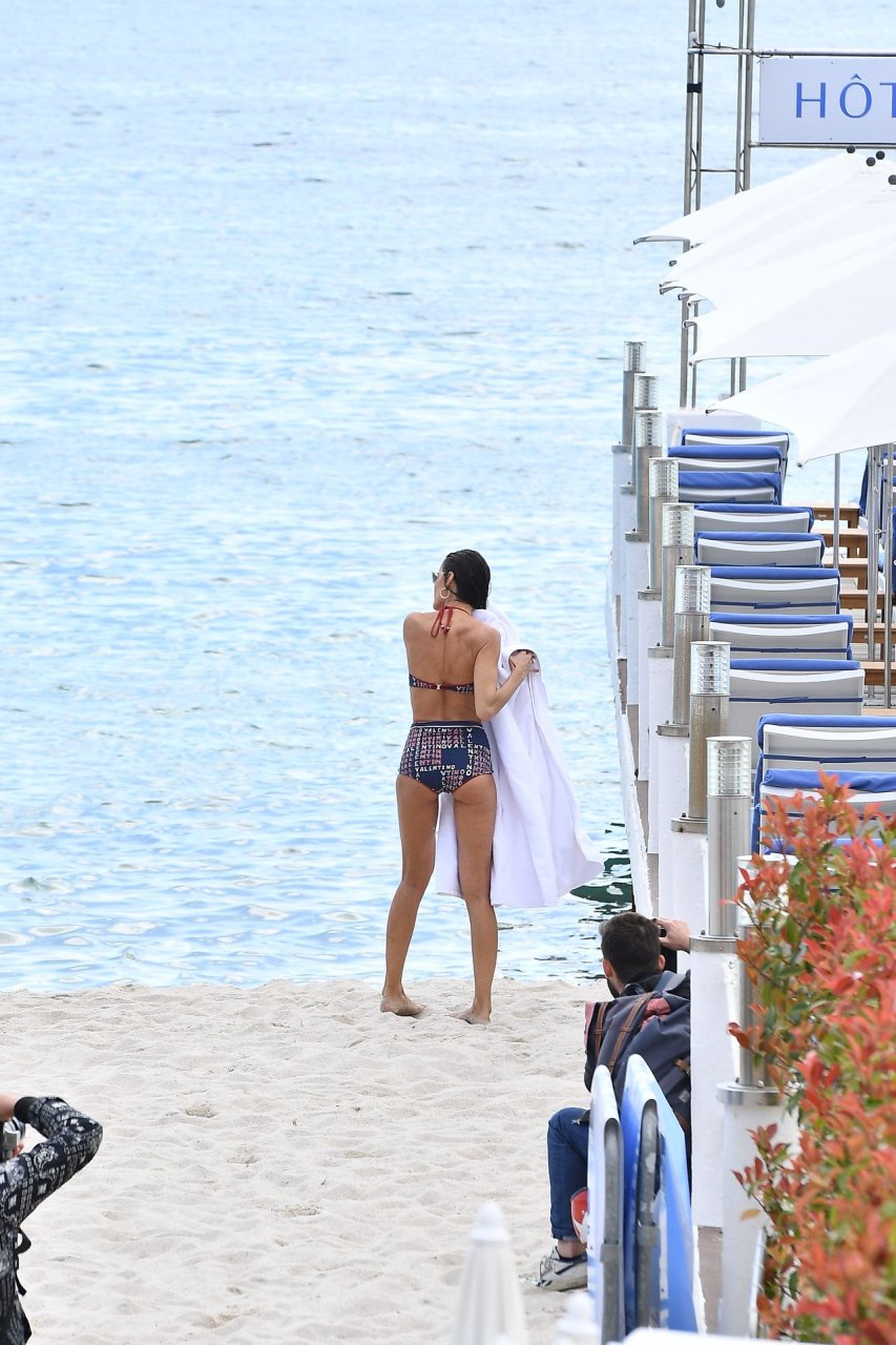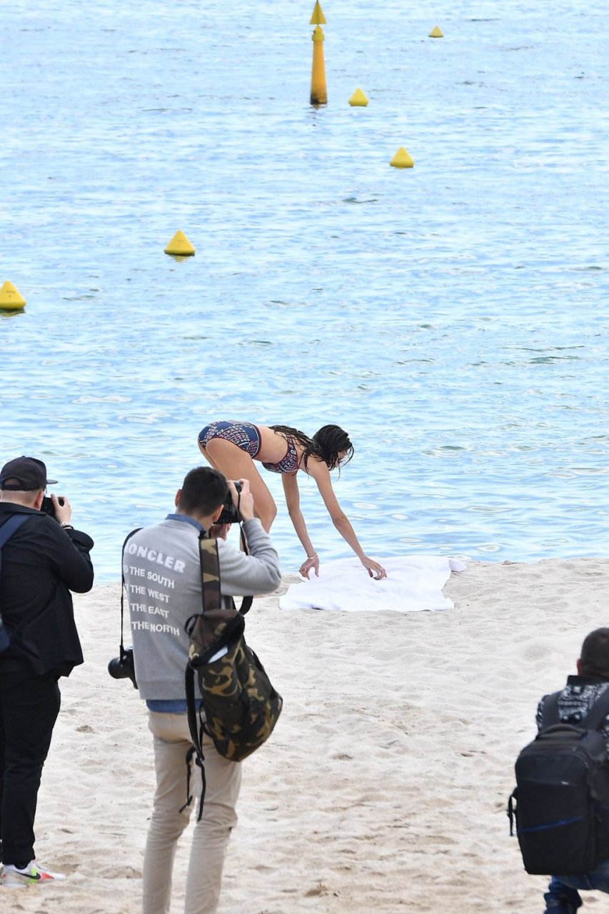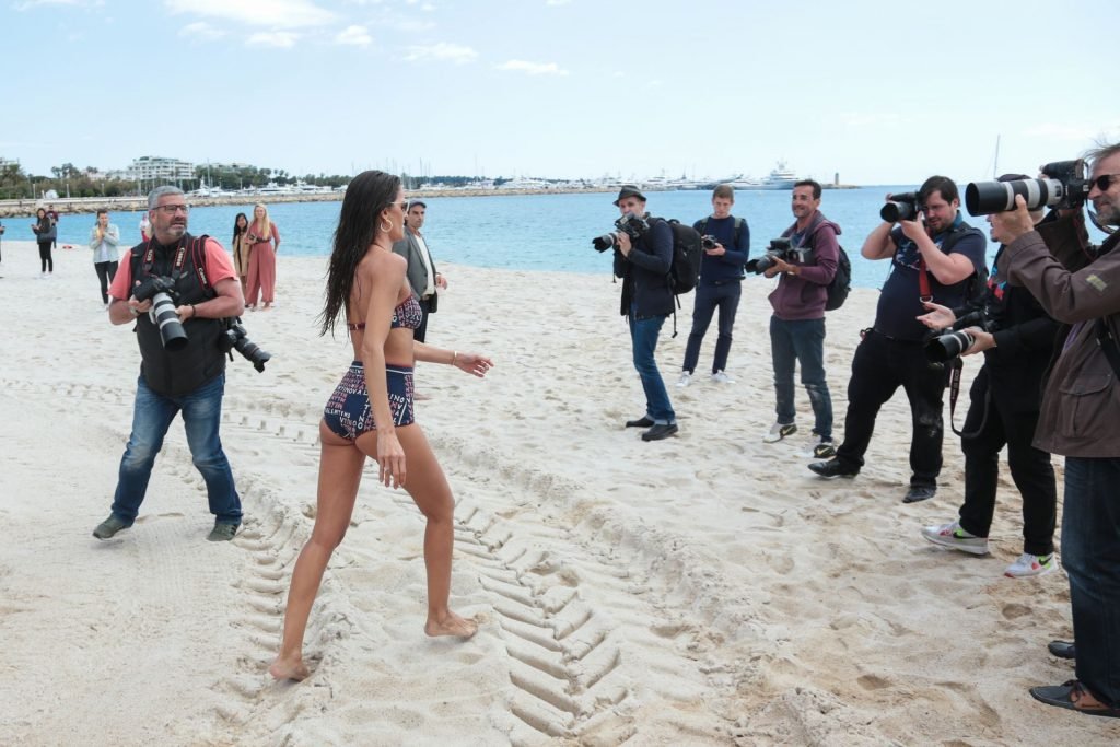 Le mannequin brésilien Izabel Goulart (34 ans) est vu sur la plage dans l’océan à la plage Martinez en bikini bleu Valentino à Cannes, France, le 15/05/2019. La femme magnifique a montré sa silhouette élancée à une douzaine de photographes.